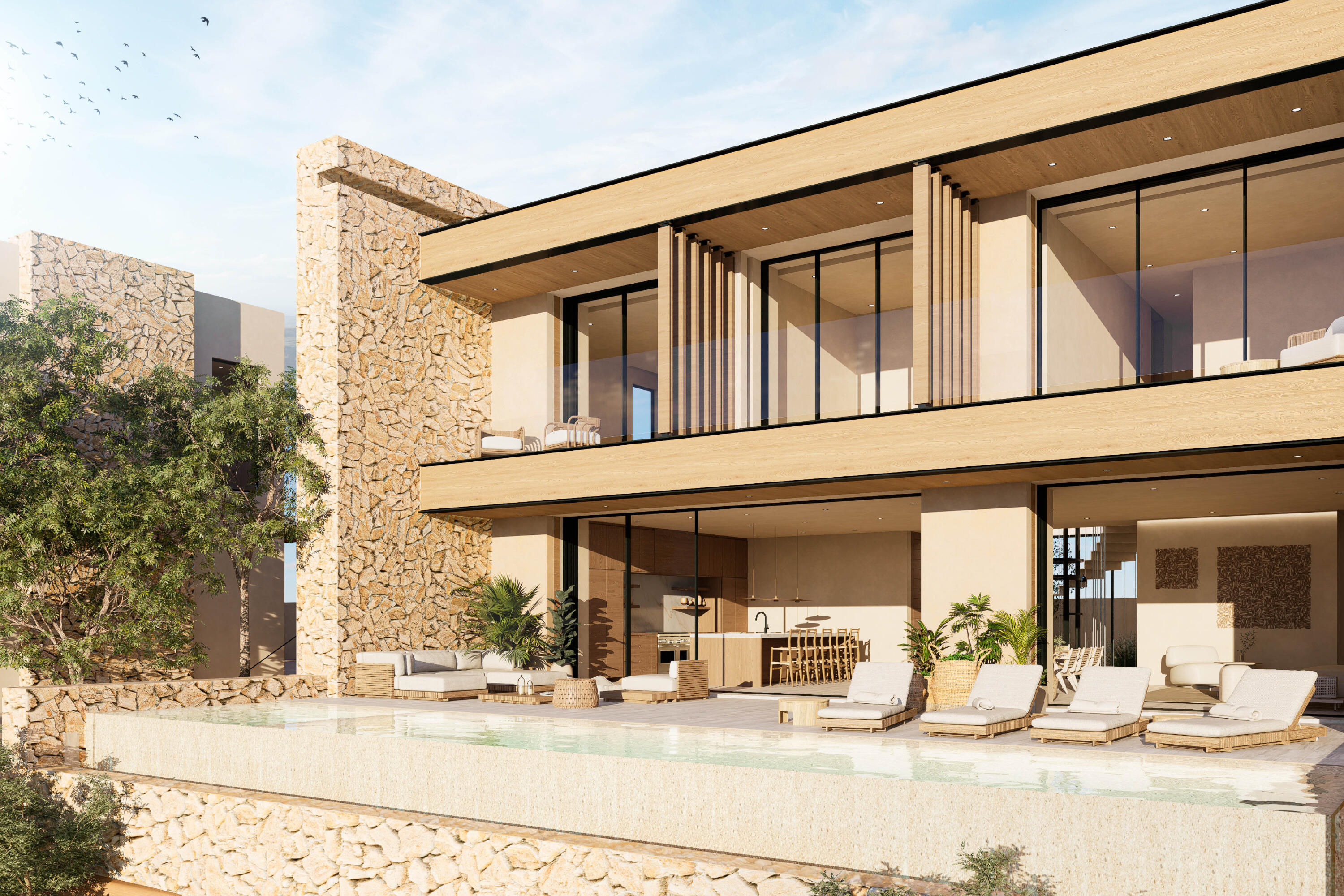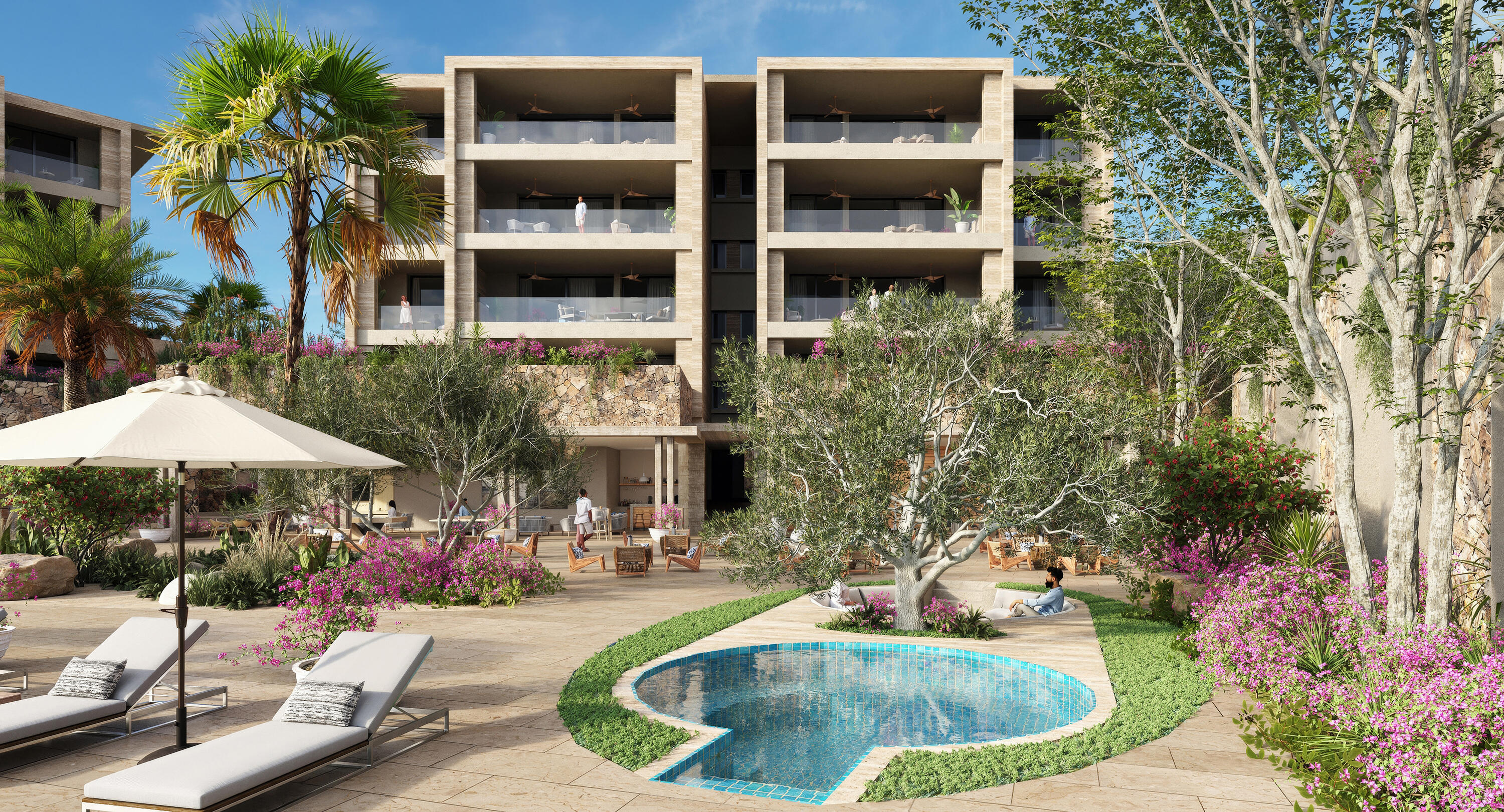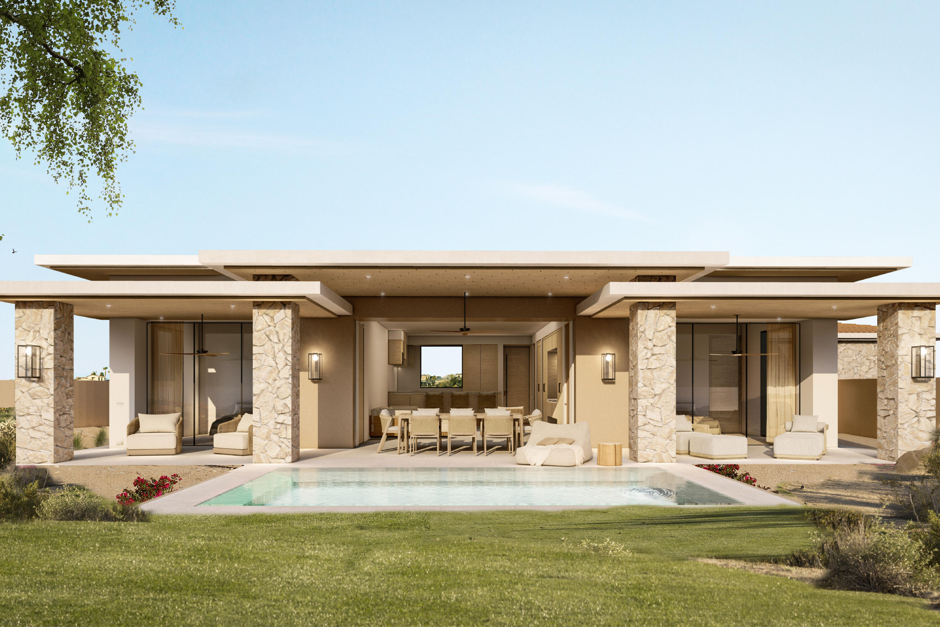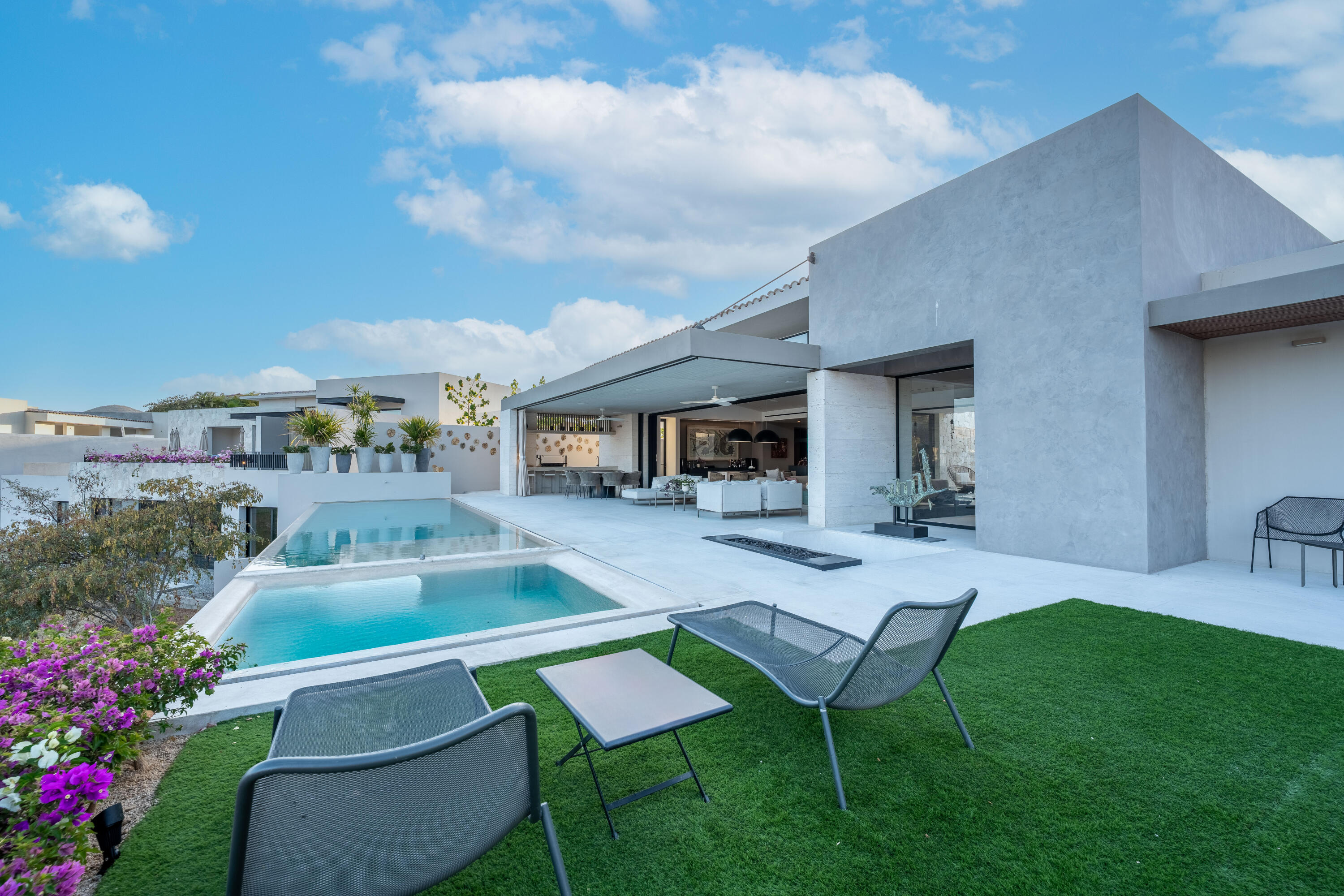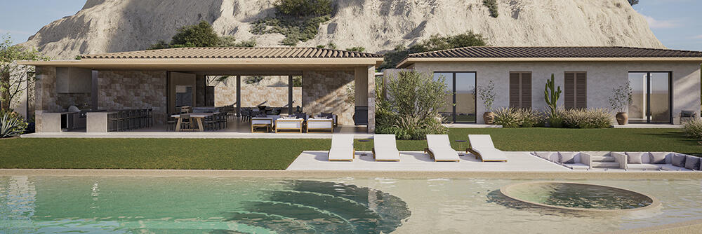 El Parque is an exclusive enclave of 43 homesites in the heart of the Querencia community, ideal if you are in search of a community-minded home where you can spend time with children, grandchildren, extended family and friends. With 20 acres of an open luxuriant green park designed to inspire outdoor living. You will love spontaneous picnics with friends, improvised soccer games, sunset FootGolf, or frisbee on the lawn. Live in a park. With views at the forefront and supported by open interiors, expansive terraces and private pools