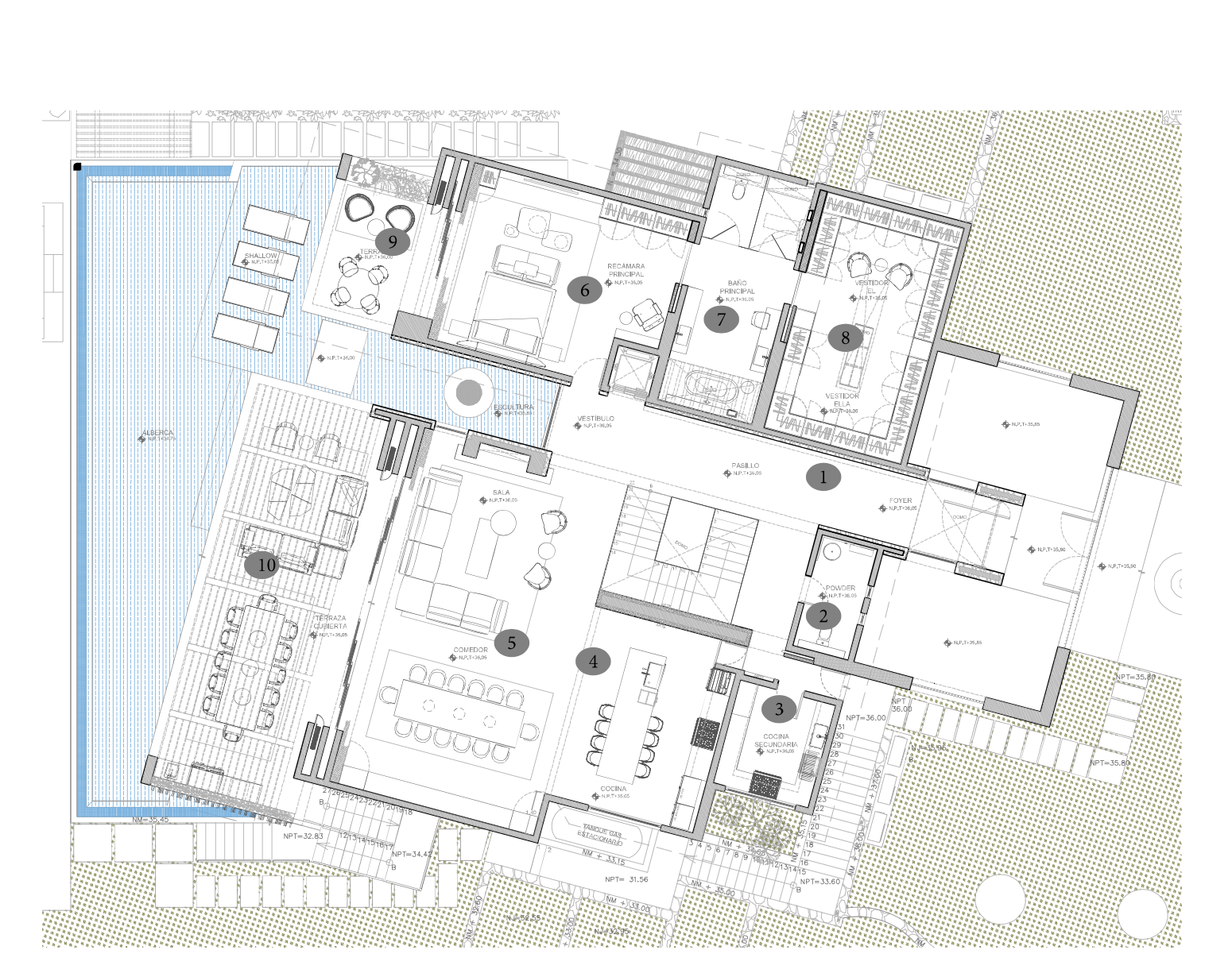 Querencia has one of the finest Club House facilities offering its members a well-stocked pro shop, men’s and ladies’ locker rooms with full spa services, sports bar, formal dining room, various dining options, game room, kid’s clubs, fitness center, yoga pavilion, tennis courts, and several swimming pools.