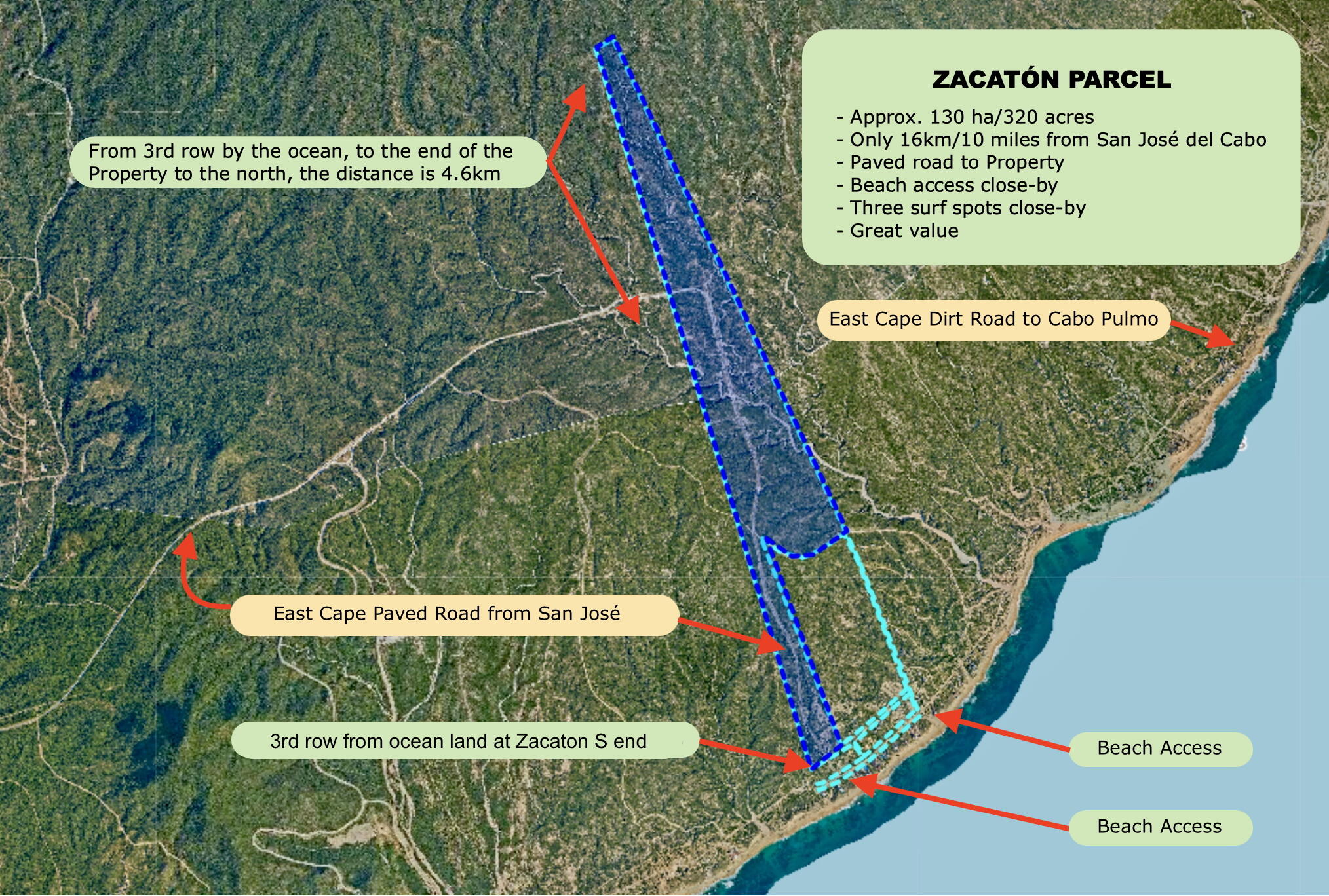 EAST CAPE DEVELOPMENT LAND (approx 130 ha/320 acres) – 20% PRICE REDUCTION!REDUCED FROM $5.75M to $4.6M! MOTIVATED SELLER! Developer friendly land value at $3.55usd/m2 located at ”The Gateway to the East Cape”, an East Cape area still untamed & wild with virgin desert land, sand, sea, surf & fishing at your fingertips, only 12 miles/19km from San Jos�!Beach Access, Surf and beautiful Tide Pools close by. Parcel includes land at 3rd row from ocean. Land is versatile & varied making it a candidate for business opportunities, hotel, homes, condos & ecological recreation!The East Cape is sizzling hot & your opportunity ito develop this large parcel with old growth, scenic shaded arroyos and views to ocean from most parts of hillside property.