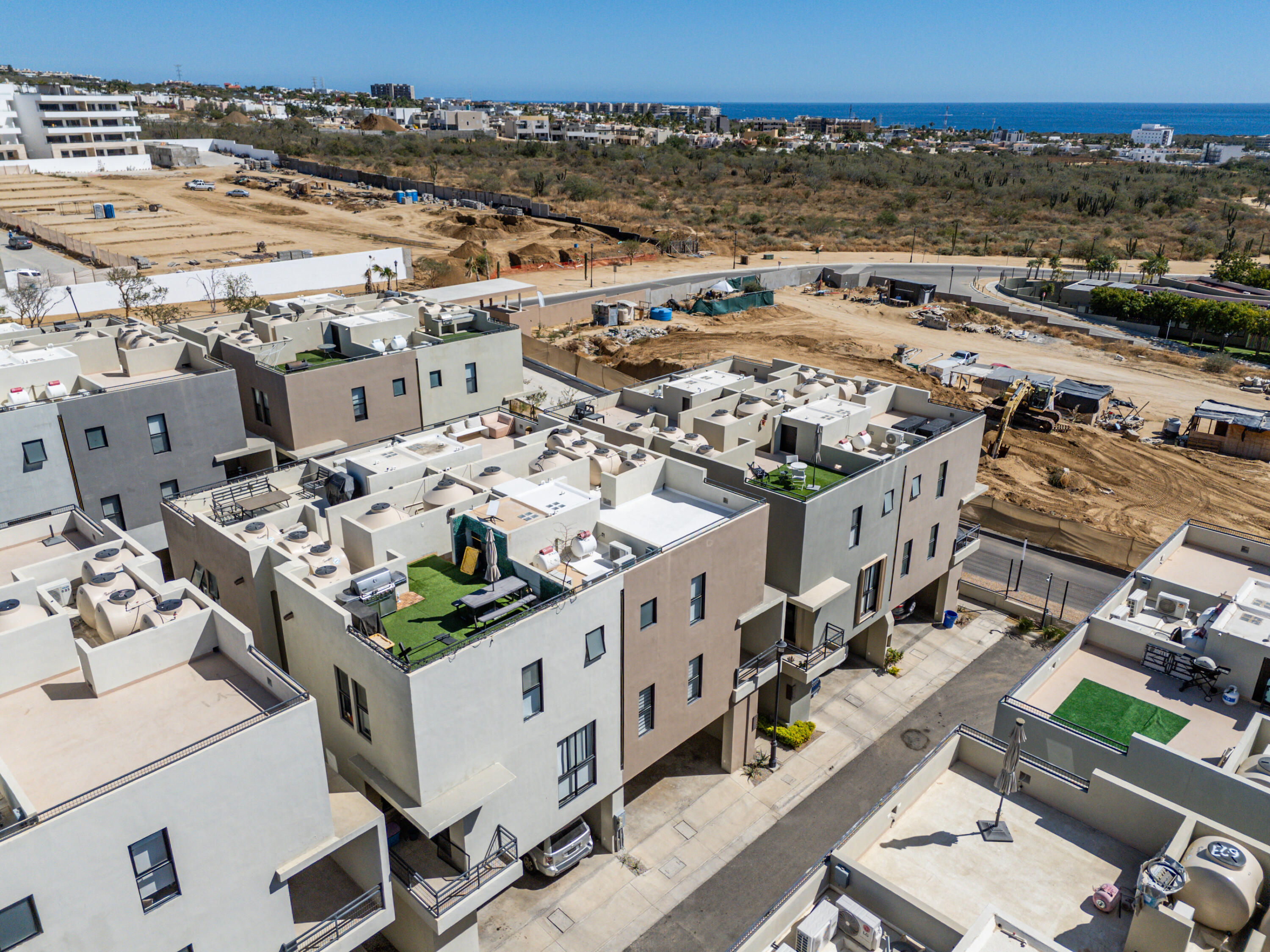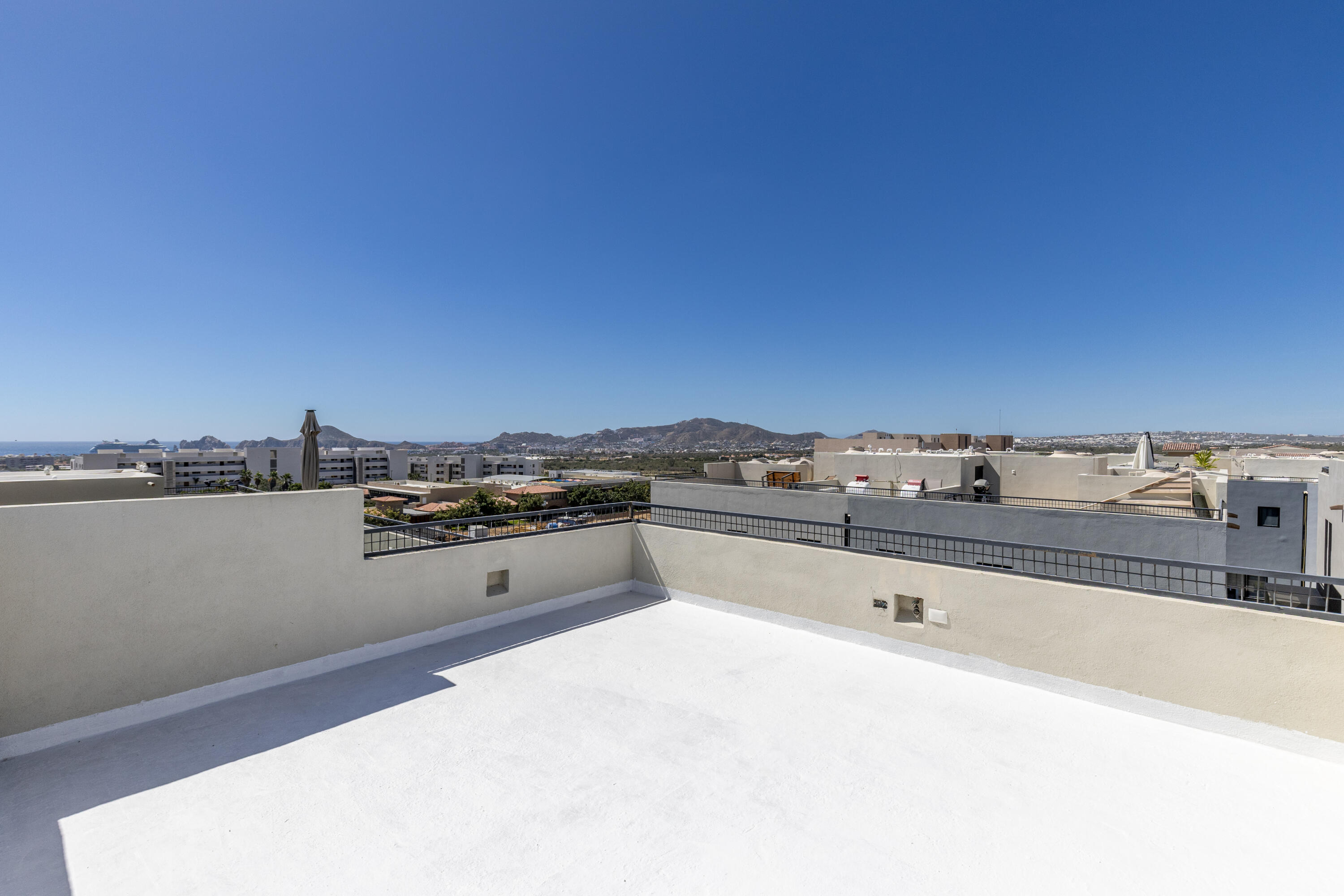 Experience the relaxed Cabo lifestyle in this modern townhome featuring a private rooftop terrace, located along the highly desirable Cabo San Lucas Tourist Corridor.Filled with natural light, this move-in-ready condo offers 2 bedrooms, 2.5 bathrooms, a sleek kitchen with granite finishes, and a cozy private terrace — perfect for morning coffee or quiet evenings.The private rooftop becomes your personal retreat to enjoy sunset views or dinners under the stars.Set within Camino del Mar in the El Tezal community, this gated development offers a pool, gym, 24/7 security, and easy access to Cabo’s best beaches, farm to table restaurant, School, and local amenities — combining comfort, privacy, and unbeatable location.