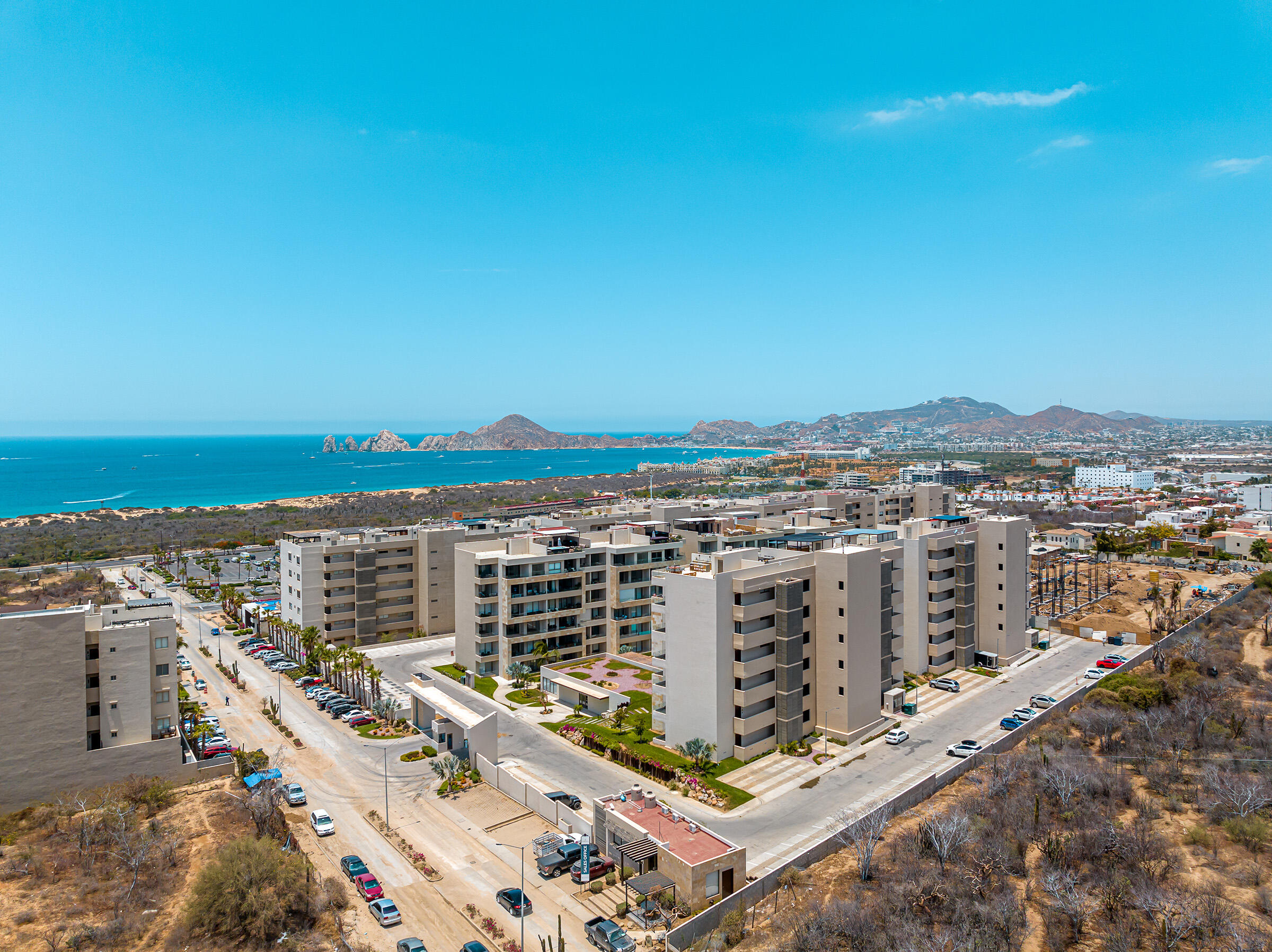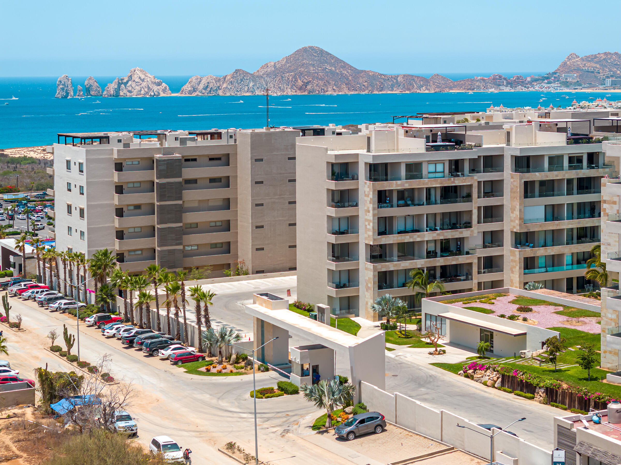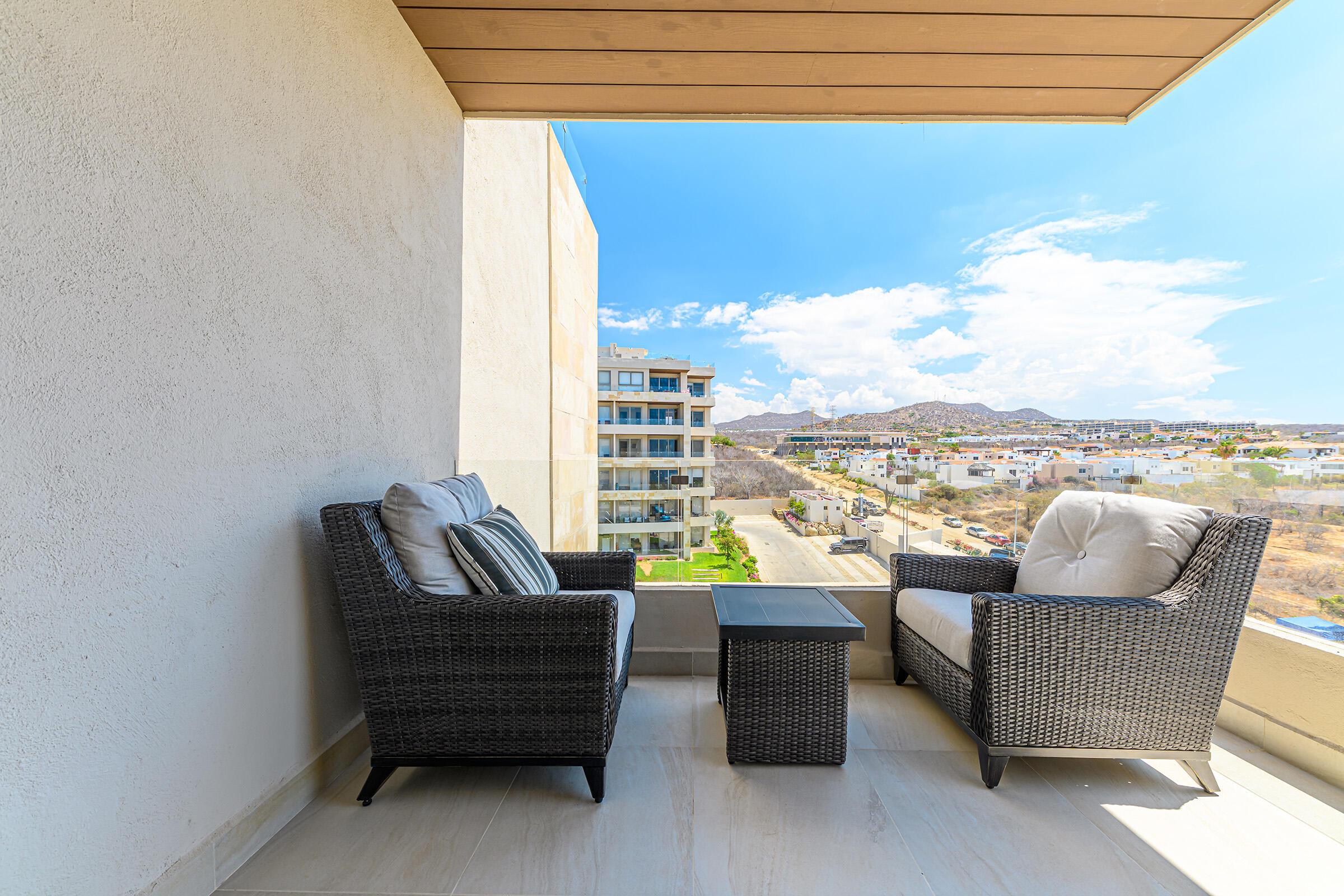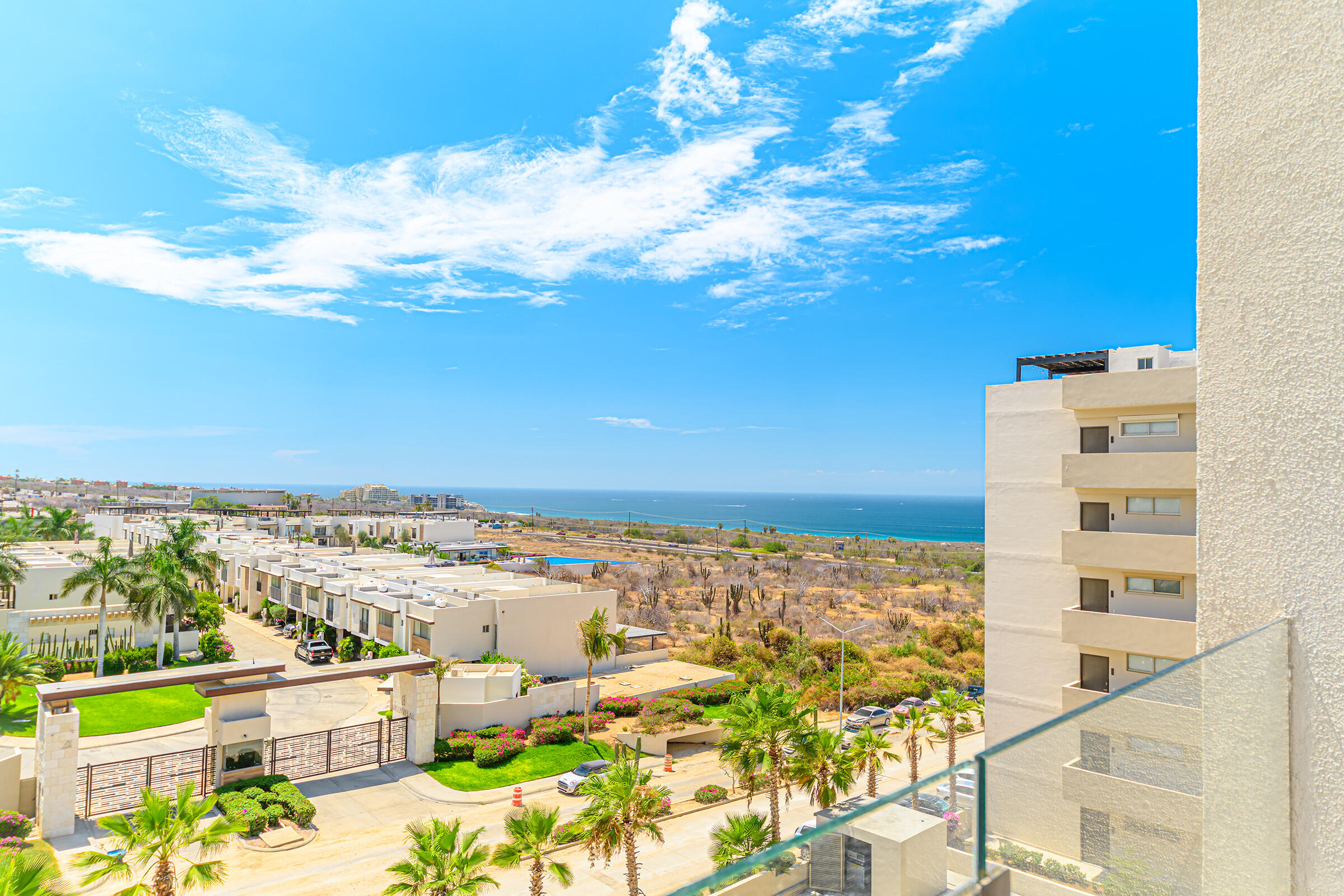 Experience the ultimate coastal lifestyle in Cabo San Lucas at Vista Velas III in this turnkey 1660 square foot 3-bedroom, 3-bathroom condominium located in the sought-after El Tezal area and just minutes to downtown. Be the first to occupy this newly constructed residence that combines modern architecture, in a prime location.Indulge in the vibrant culinary scene, explore the world-class marina, relax on beautiful beaches, and enjoy shopping and nightlife, all within easy reach of this immaculate condo. Costco and Plaza Nova are just a short walk away, providing added convenience.The fifth-floor corner unit boasts an abundance of natural light upon entry, creating a bright and inviting atmosphere. The open concept kitchen and living areas with large patio doors to the balcony provide