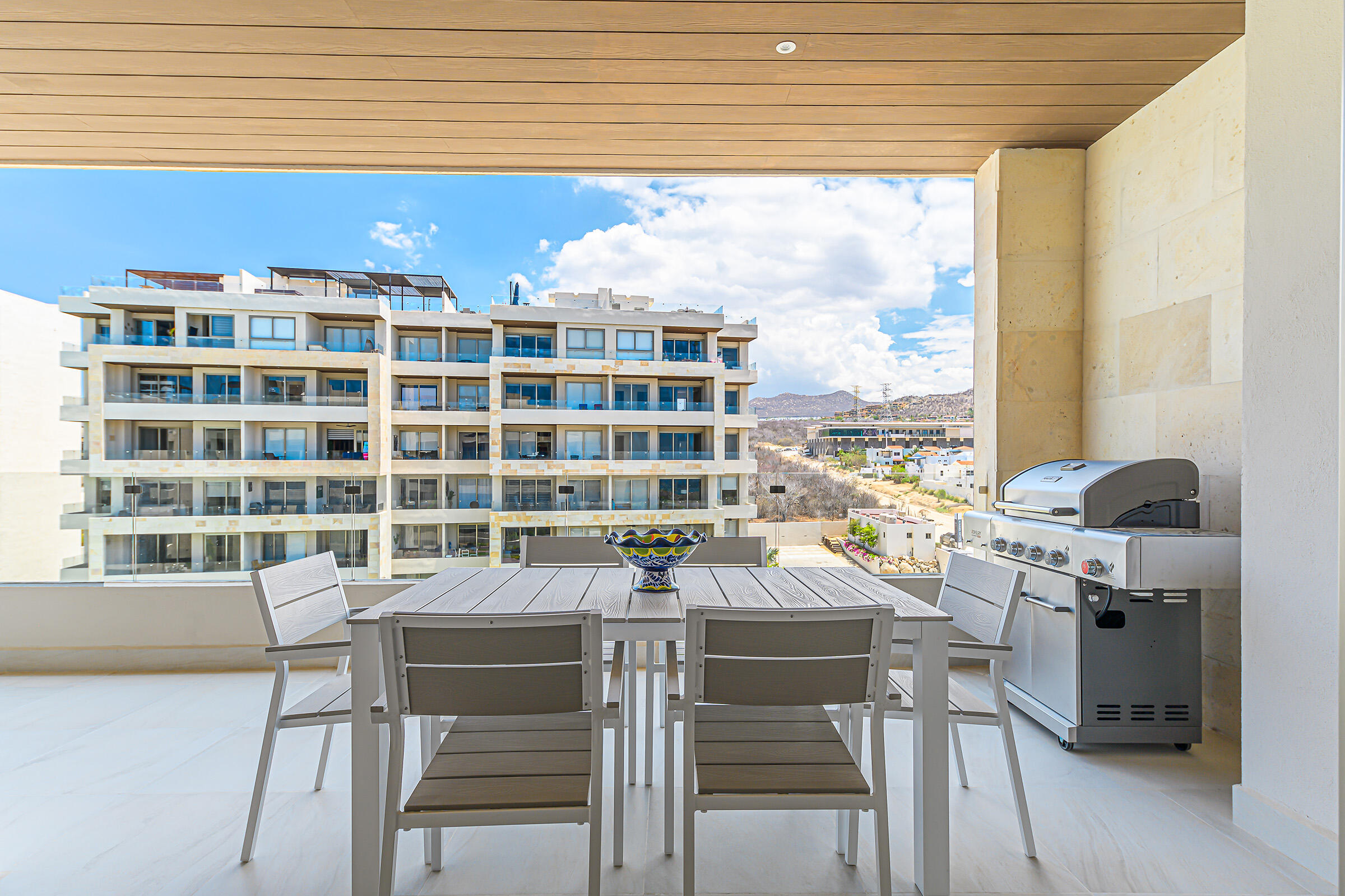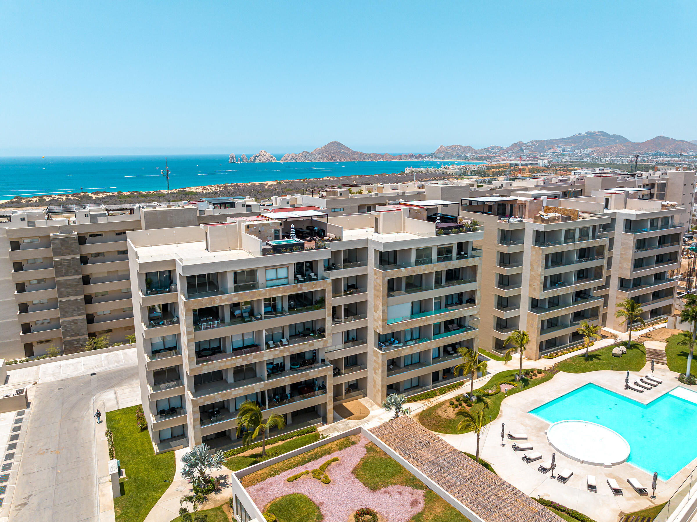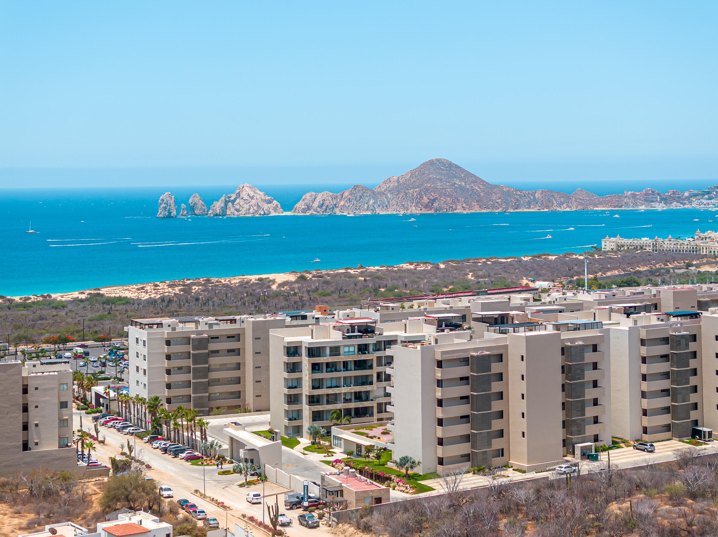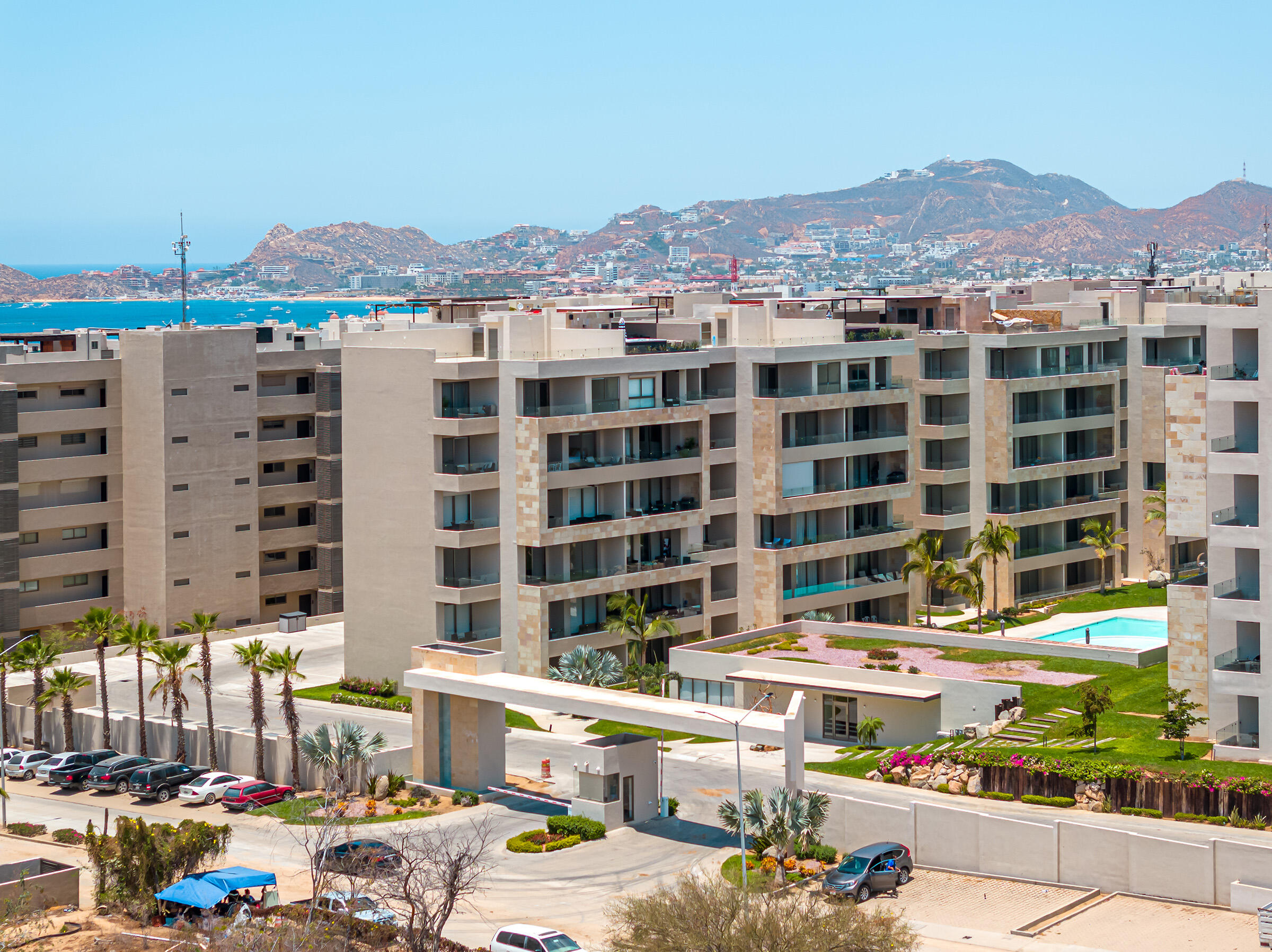 Experience the ultimate coastal lifestyle in Cabo San Lucas at Vista Velas III in this turnkey 1660 square foot 3-bedroom, 3-bathroom condominium located in the sought-after El Tezal area and just minutes to downtown. Be the first to occupy this newly constructed residence that combines modern architecture, in a prime location.Indulge in the vibrant culinary scene, explore the world-class marina, relax on beautiful beaches, and enjoy shopping and nightlife, all within easy reach of this immaculate condo. Costco and Plaza Nova are just a short walk away, providing added convenience.The fifth-floor corner unit boasts an abundance of natural light upon entry, creating a bright and inviting atmosphere. The open concept kitchen and living areas with large patio doors to the balcony provide