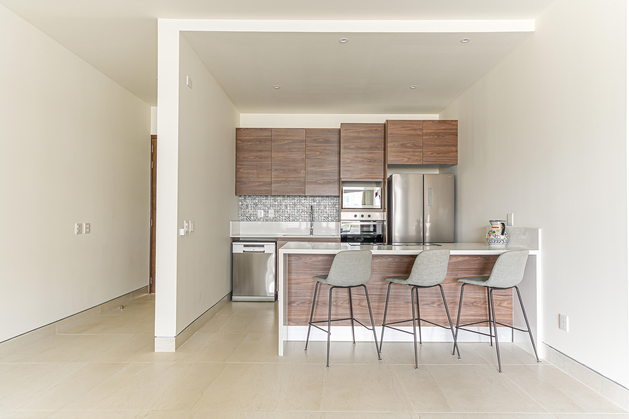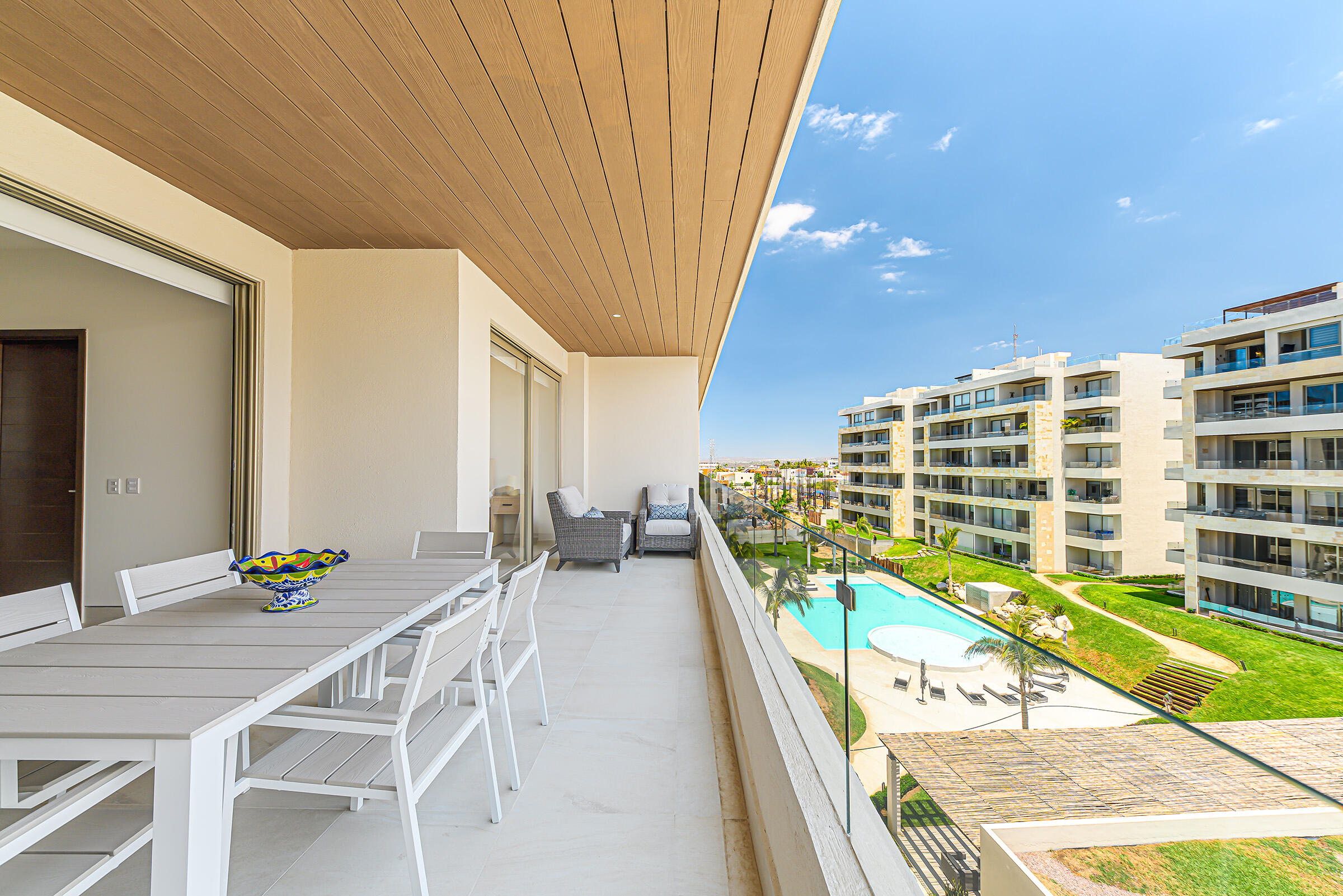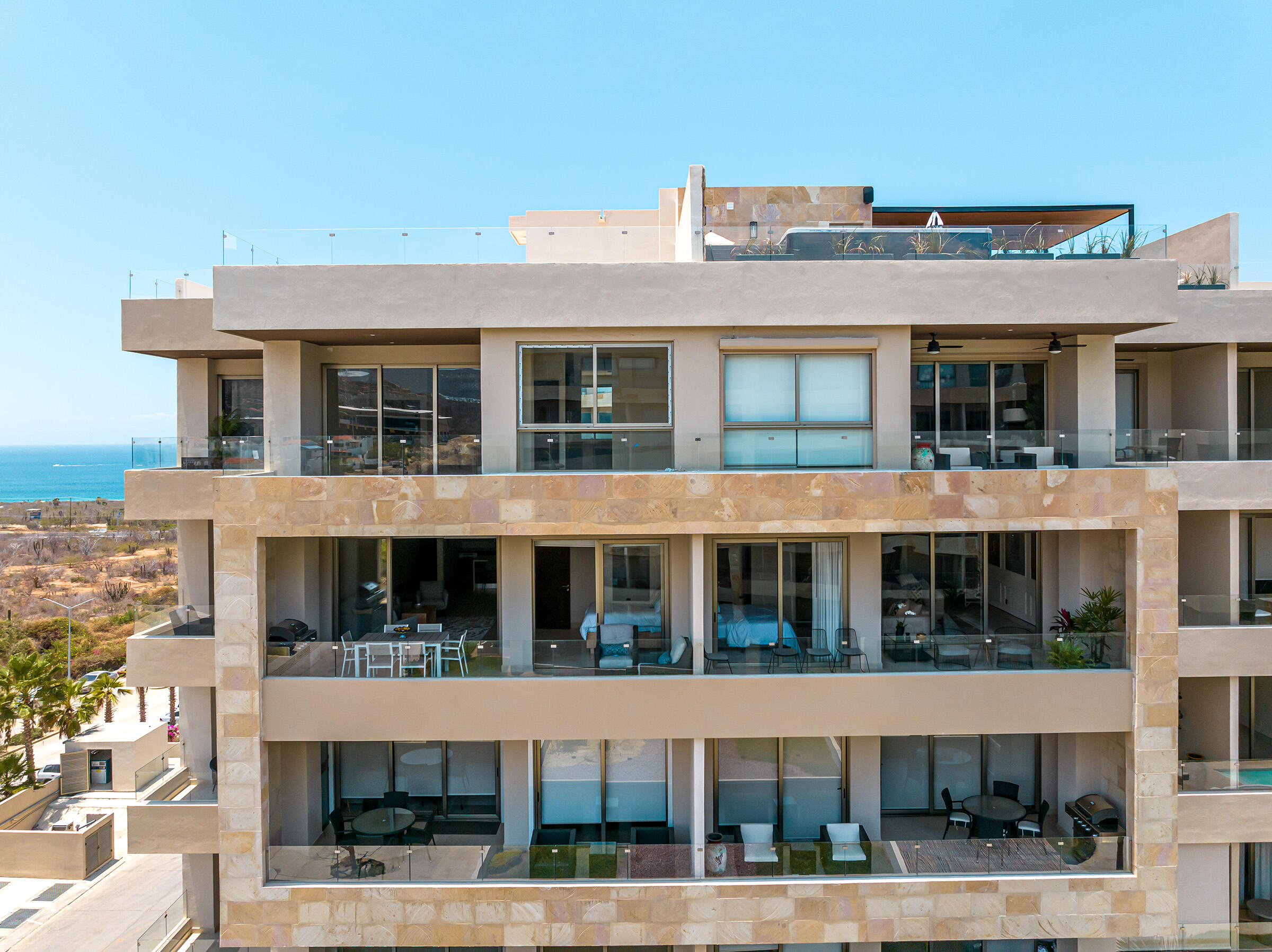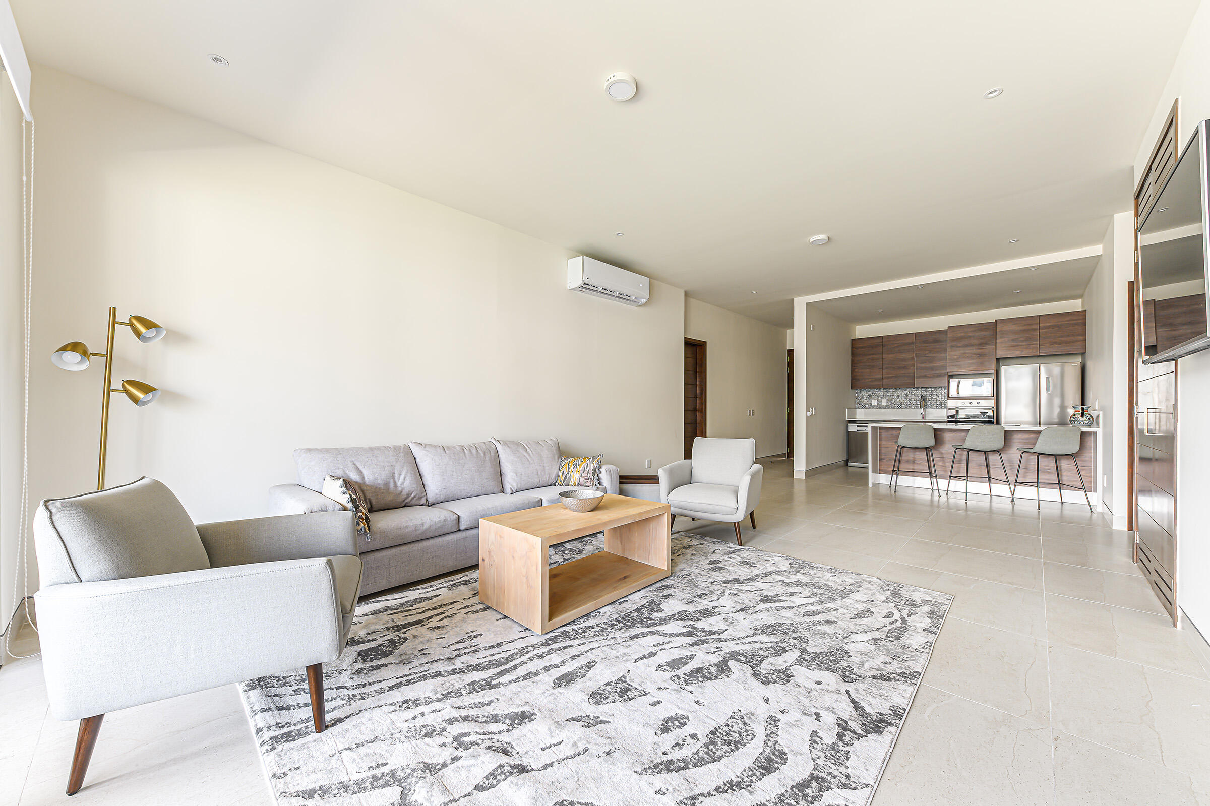 Experience the ultimate coastal lifestyle in Cabo San Lucas at Vista Velas III in this turnkey 1660 square foot 3-bedroom, 3-bathroom condominium located in the sought-after El Tezal area and just minutes to downtown. Be the first to occupy this newly constructed residence that combines modern architecture, in a prime location.Indulge in the vibrant culinary scene, explore the world-class marina, relax on beautiful beaches, and enjoy shopping and nightlife, all within easy reach of this immaculate condo. Costco and Plaza Nova are just a short walk away, providing added convenience.The fifth-floor corner unit boasts an abundance of natural light upon entry, creating a bright and inviting atmosphere. The open concept kitchen and living areas with large patio doors to the balcony provide