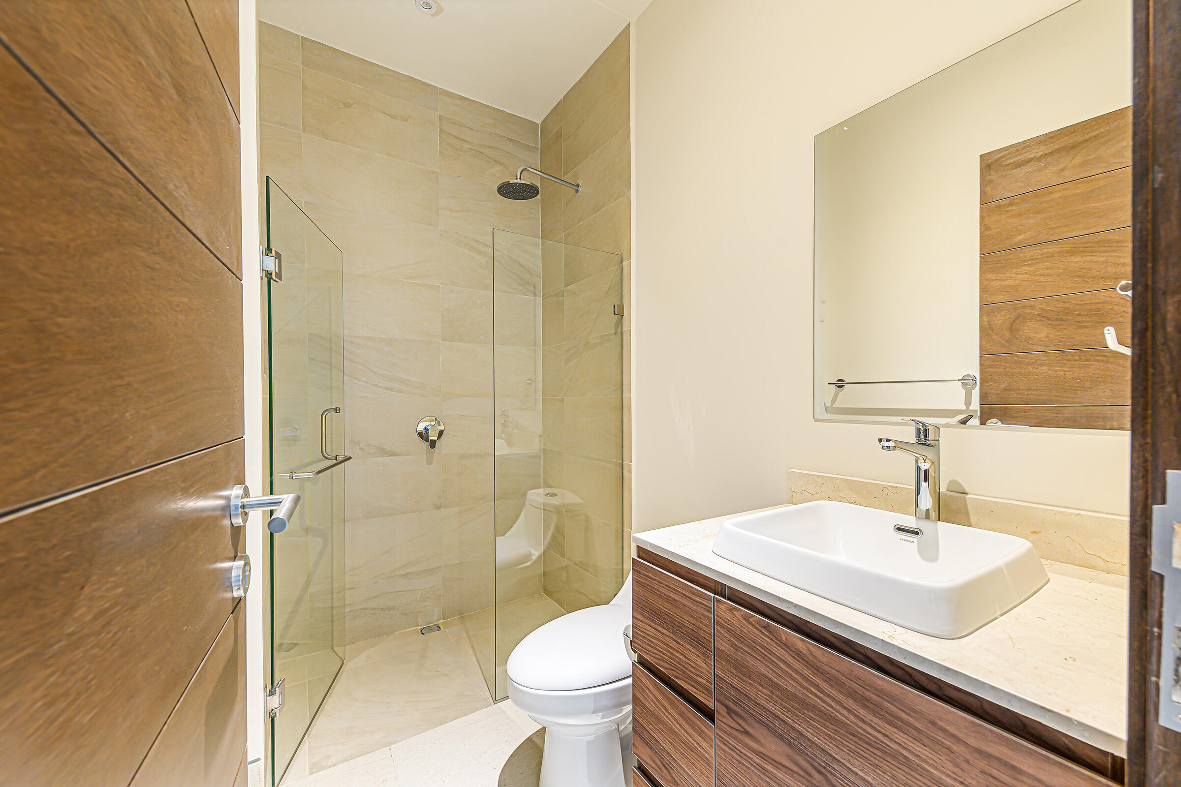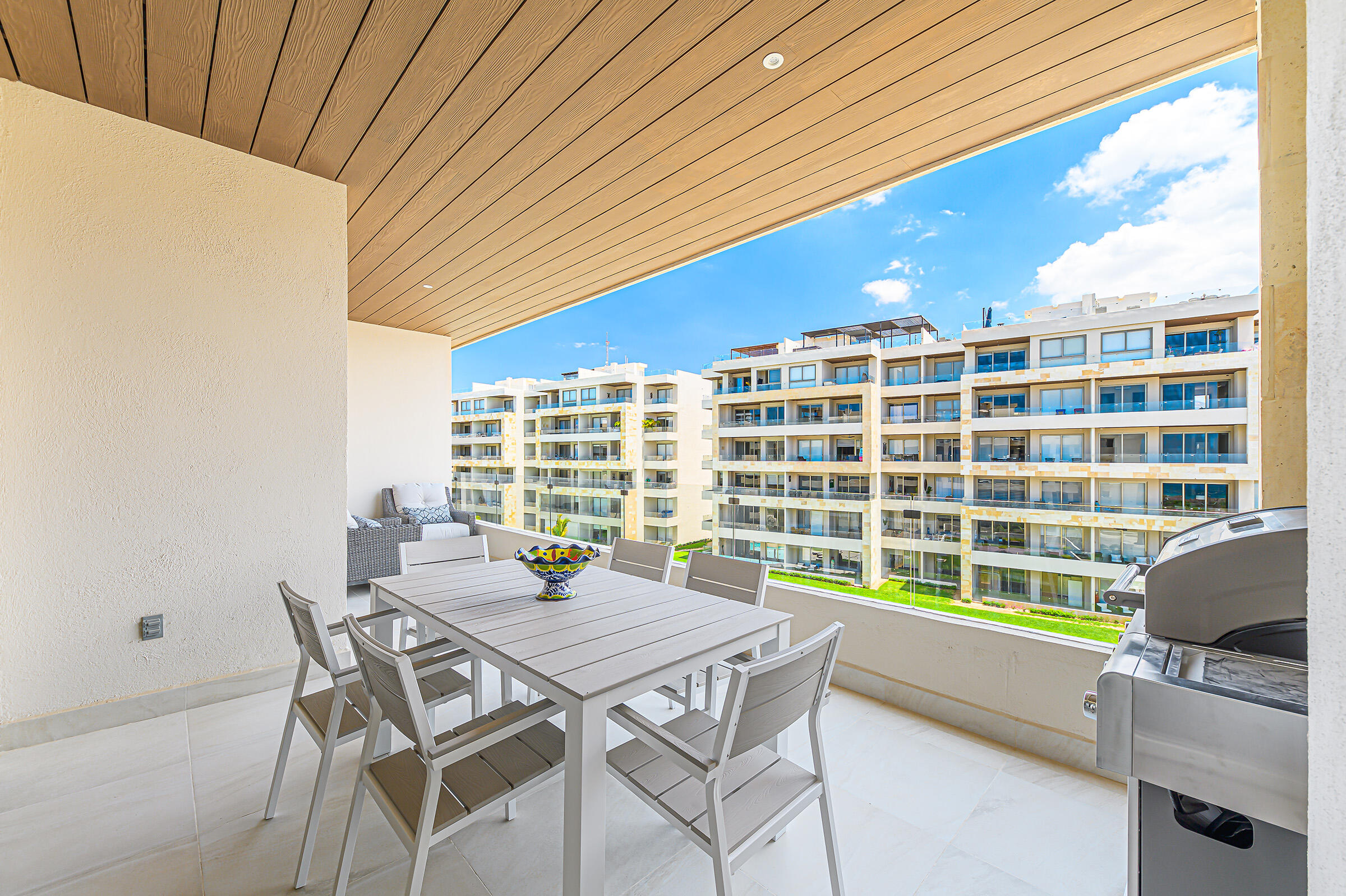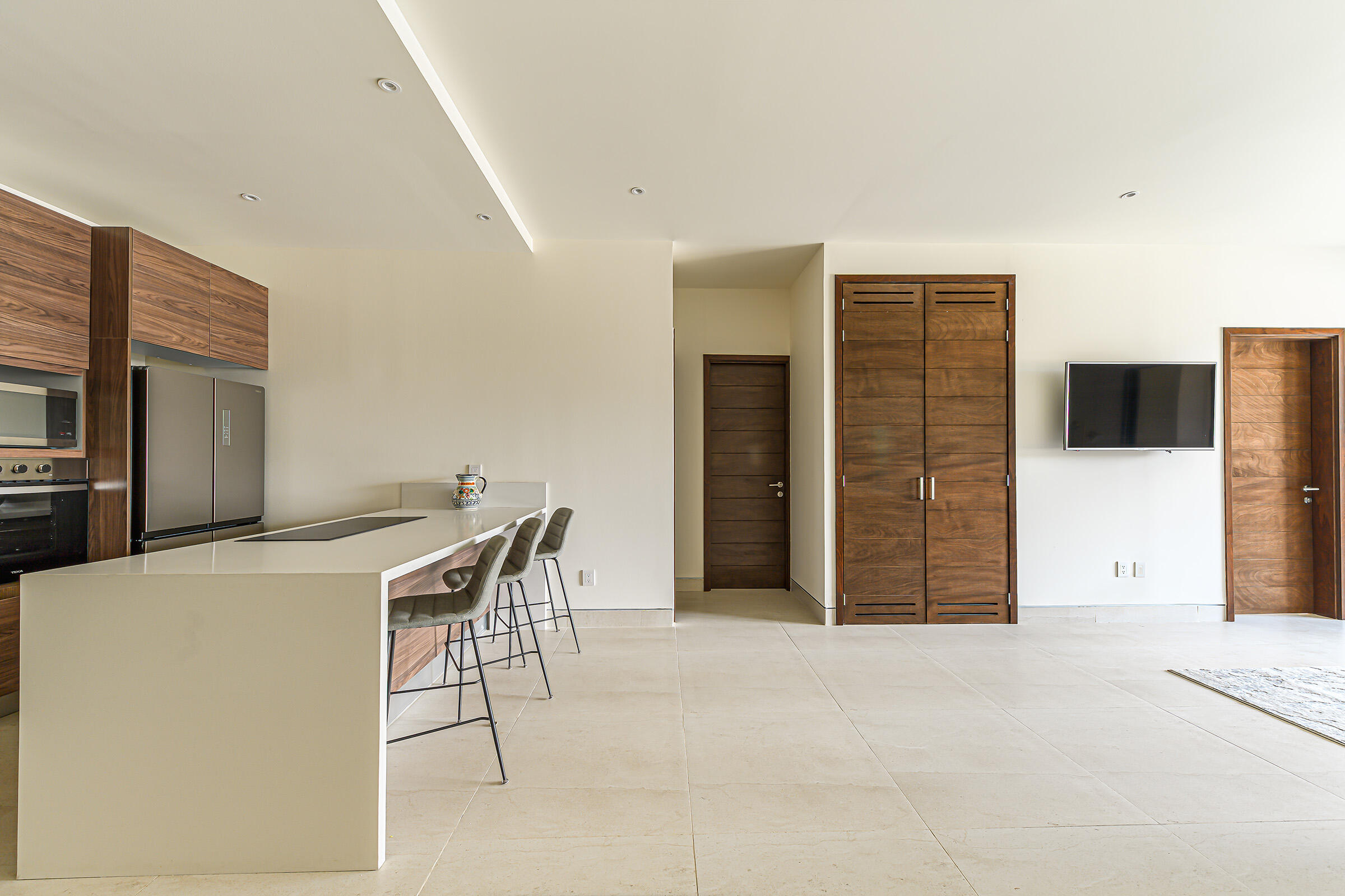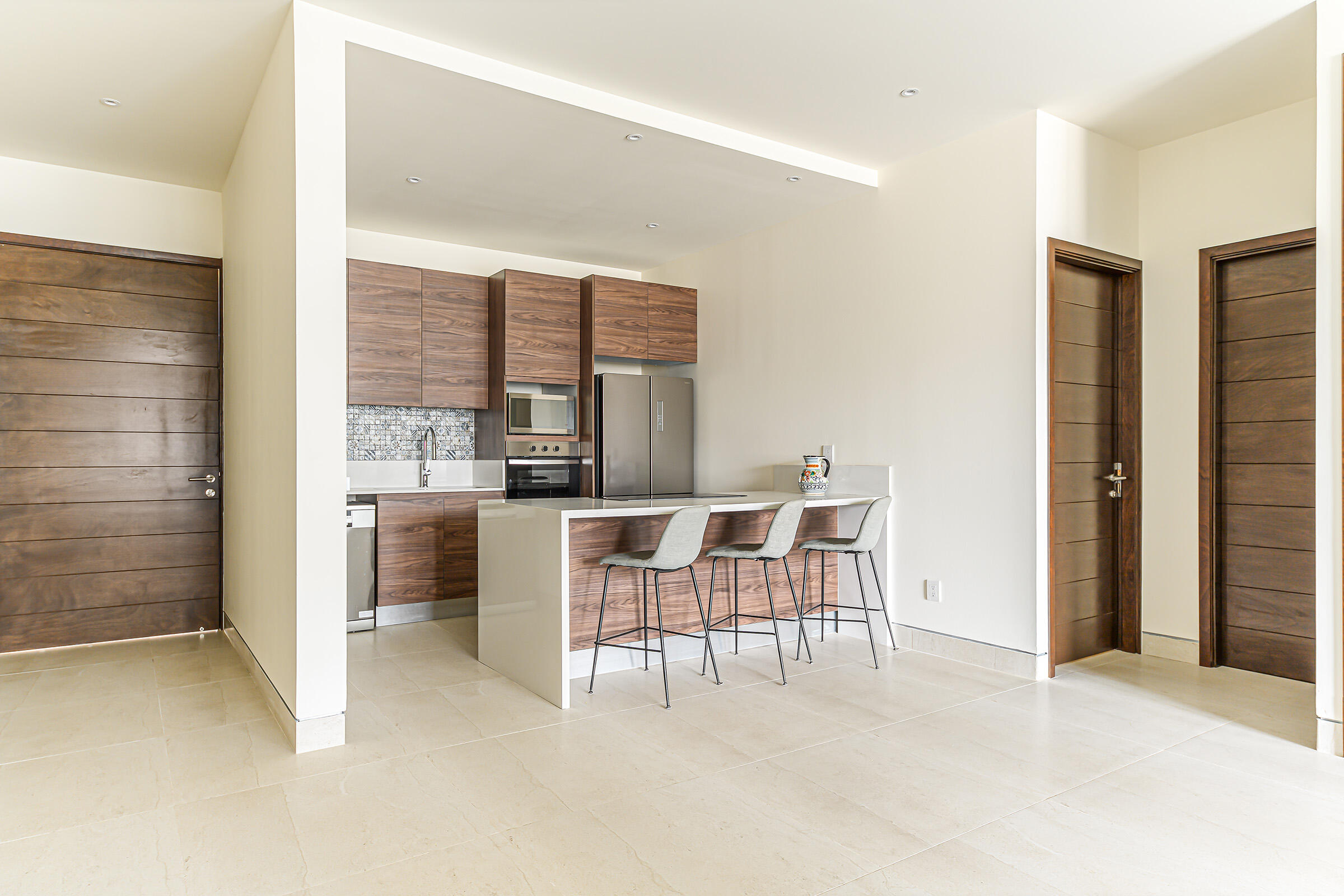 Experience the ultimate coastal lifestyle in Cabo San Lucas at Vista Velas III in this turnkey 1660 square foot 3-bedroom, 3-bathroom condominium located in the sought-after El Tezal area and just minutes to downtown. Be the first to occupy this newly constructed residence that combines modern architecture, in a prime location.Indulge in the vibrant culinary scene, explore the world-class marina, relax on beautiful beaches, and enjoy shopping and nightlife, all within easy reach of this immaculate condo. Costco and Plaza Nova are just a short walk away, providing added convenience.The fifth-floor corner unit boasts an abundance of natural light upon entry, creating a bright and inviting atmosphere. The open concept kitchen and living areas with large patio doors to the balcony provide