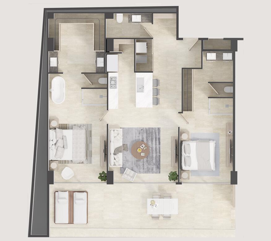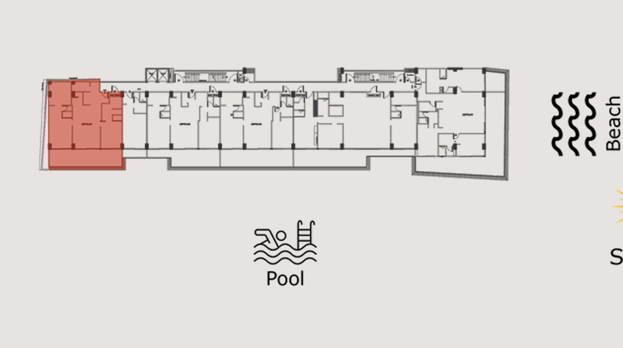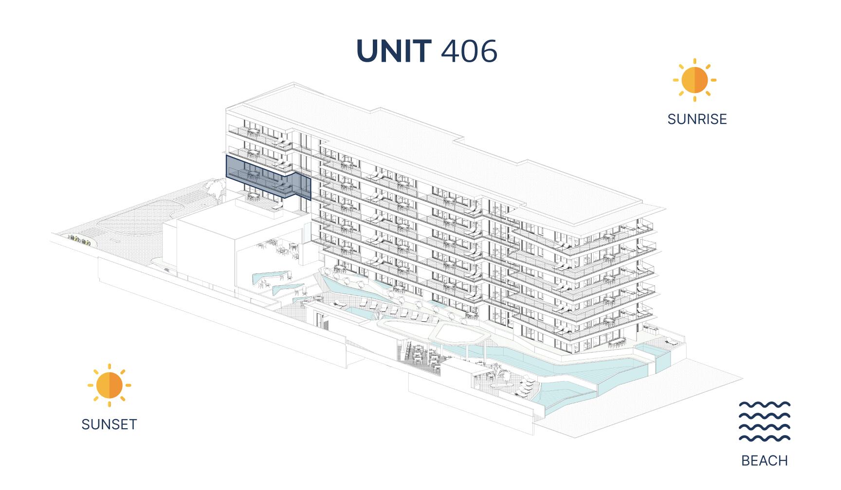 Residence 406 at ALBALUZ is an elegant fourth-floor, ocean-view condominium designed for refined coastal living. This fully furnished and turnkey two-bedroom, two-and-a-half-bath residence offers a total of 1,911 sq ft (177 sqm), including 1,432 sq ft (133.08 sqm) of air-conditioned interior space and a 479 sq ft (44.46 sqm) private terrace.