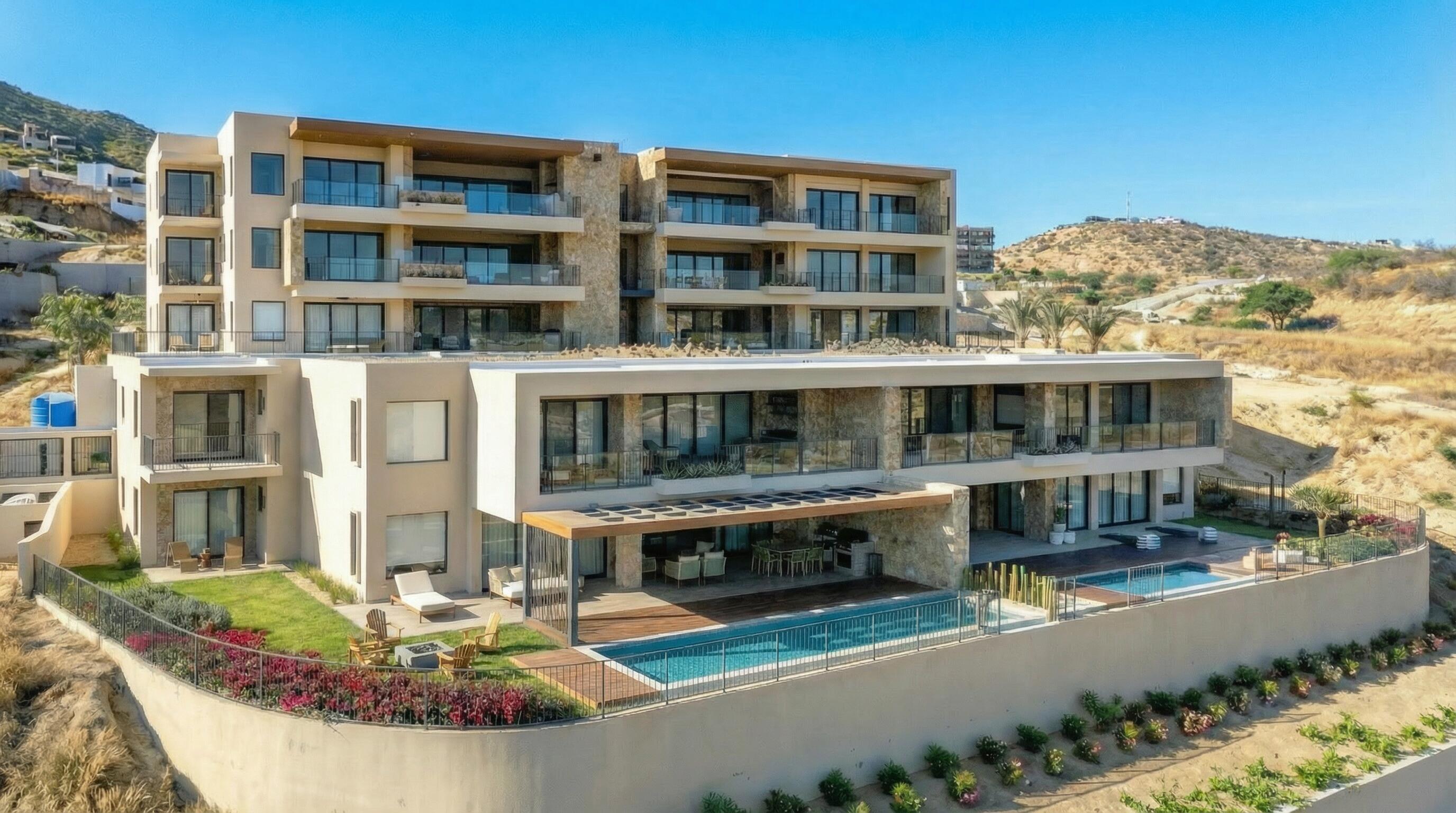 Garden-Level Residence at Alvar | Quivira Los CabosSet within a luxury master-planned oceanfront community, this garden-level residence at Alvar offers sweeping ocean views and is home to a Jack Nicklaus Signature golf course ranked #7 in all of Mexico, along with a spectacular oceanfront beach club. The residence includes an extended terrace with pergola extension upgrade, enhancing outdoor living and functionality.