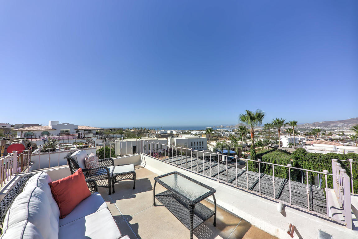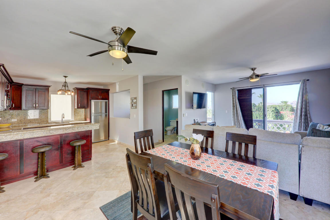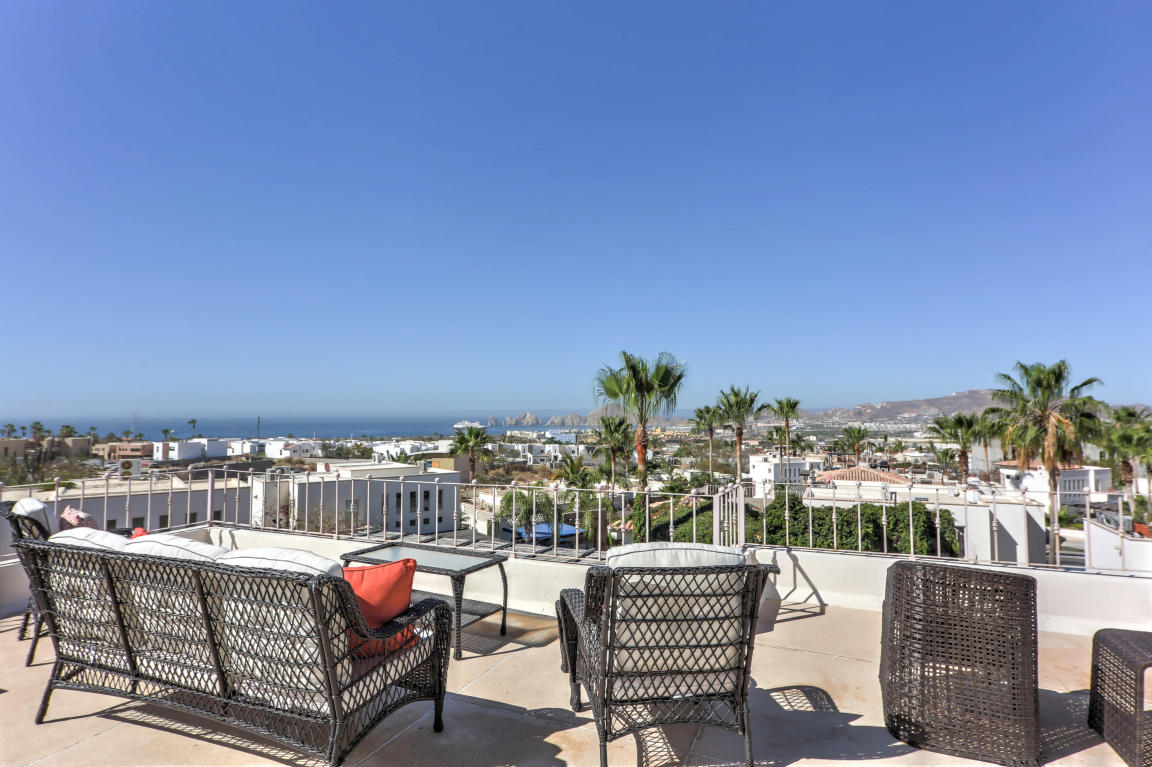 Finally, Everything You’ve Been Looking For. . . Location, Location, Location! Beautiful home located in the Cabo Corridor. It is conveniently located in the low density-gated-community of San Jeronimo, at a walking distance of less than 5 km to Downtown Cabo. Close to the beach, Walmart, Costco, countless restaurants and much more…This three bedrooms and 2.5 bathrooms home have been recently upgraded to a beachy concept; stainless steel appliances and upgraded cherry wood cabinetry. The laundry facilities easily allows for building extra pantry space or simply more storage. The home has an inverted floor plan, having the living areas upstairs to maximize the Arch views, and it comes fully furnished and turn key. Living area walks into an outdoor terrace for relaxing and peaceful.