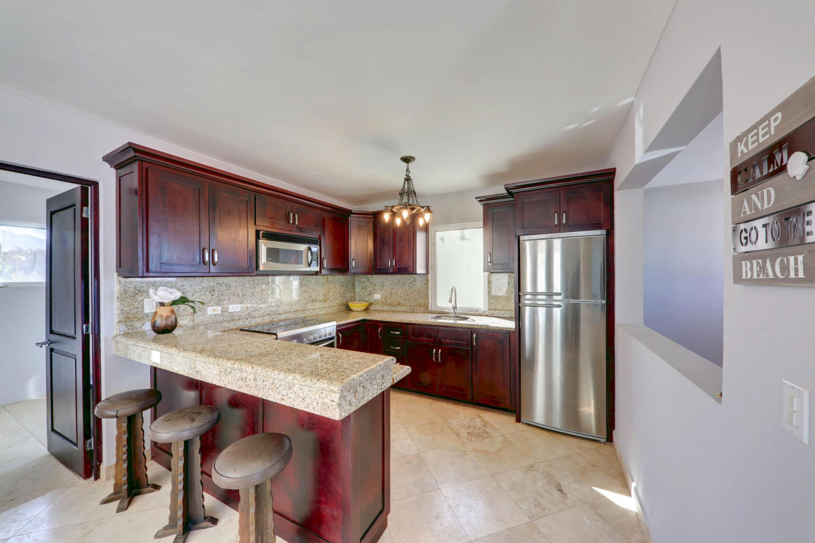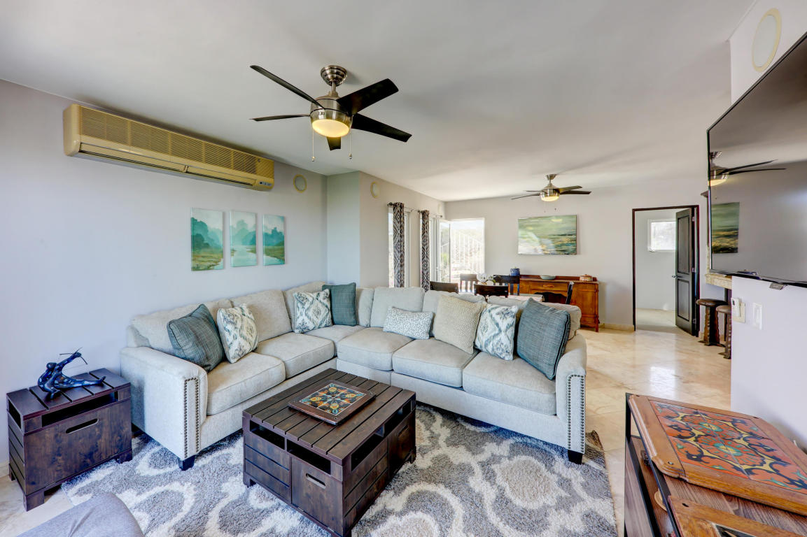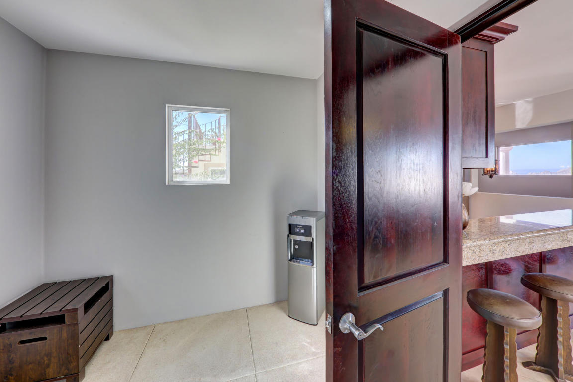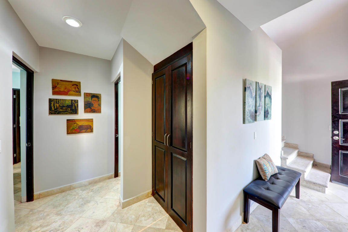 Finally, Everything You’ve Been Looking For. . . Location, Location, Location! Beautiful home located in the Cabo Corridor. It is conveniently located in the low density-gated-community of San Jeronimo, at a walking distance of less than 5 km to Downtown Cabo. Close to the beach, Walmart, Costco, countless restaurants and much more…This three bedrooms and 2.5 bathrooms home have been recently upgraded to a beachy concept; stainless steel appliances and upgraded cherry wood cabinetry. The laundry facilities easily allows for building extra pantry space or simply more storage. The home has an inverted floor plan, having the living areas upstairs to maximize the Arch views, and it comes fully furnished and turn key. Living area walks into an outdoor terrace for relaxing and peaceful.
