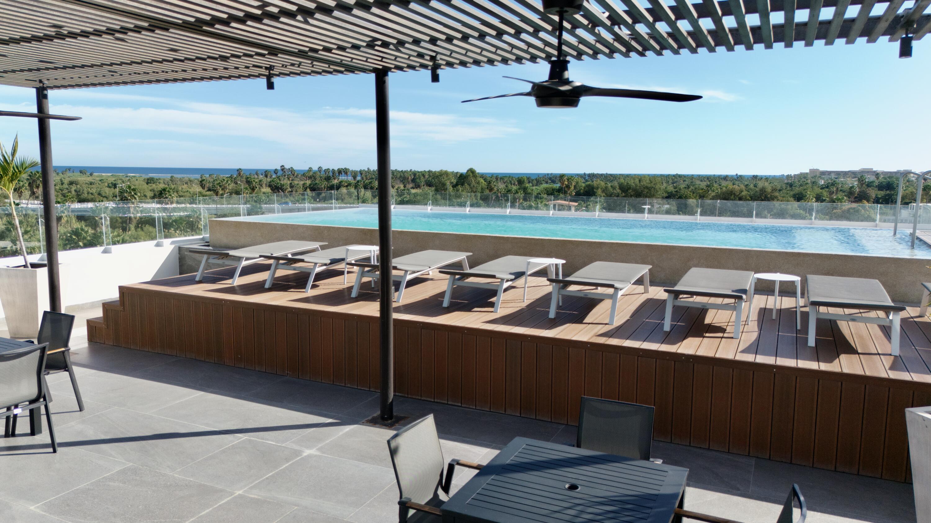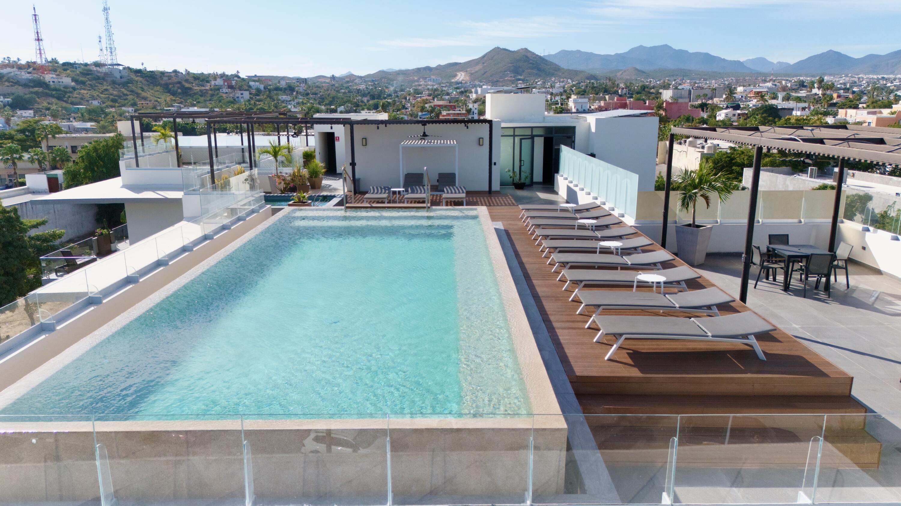 Two-bedroom condo on the third floor. Equipped with appliances and air conditioning, perfect for investment or to live, it is located in the heart of San Jose del Cabo, you can walk to restaurants, galleries, the beach, shops, not to mention that it is right next to Centenario Avenue which allows easy access to the transpeninsular highway, to the Road to Puerto los Cabos and Cabo del Este. The building has underground parking, elevator and a rooftop with a beautiful view of the sea of Cortes and the San Jose del Cabo estuary, has a Jacuzzi, pool and bbq area.