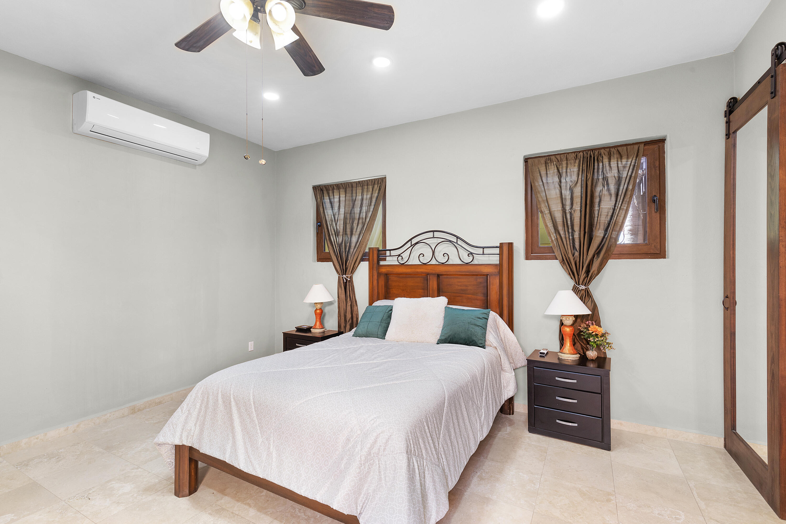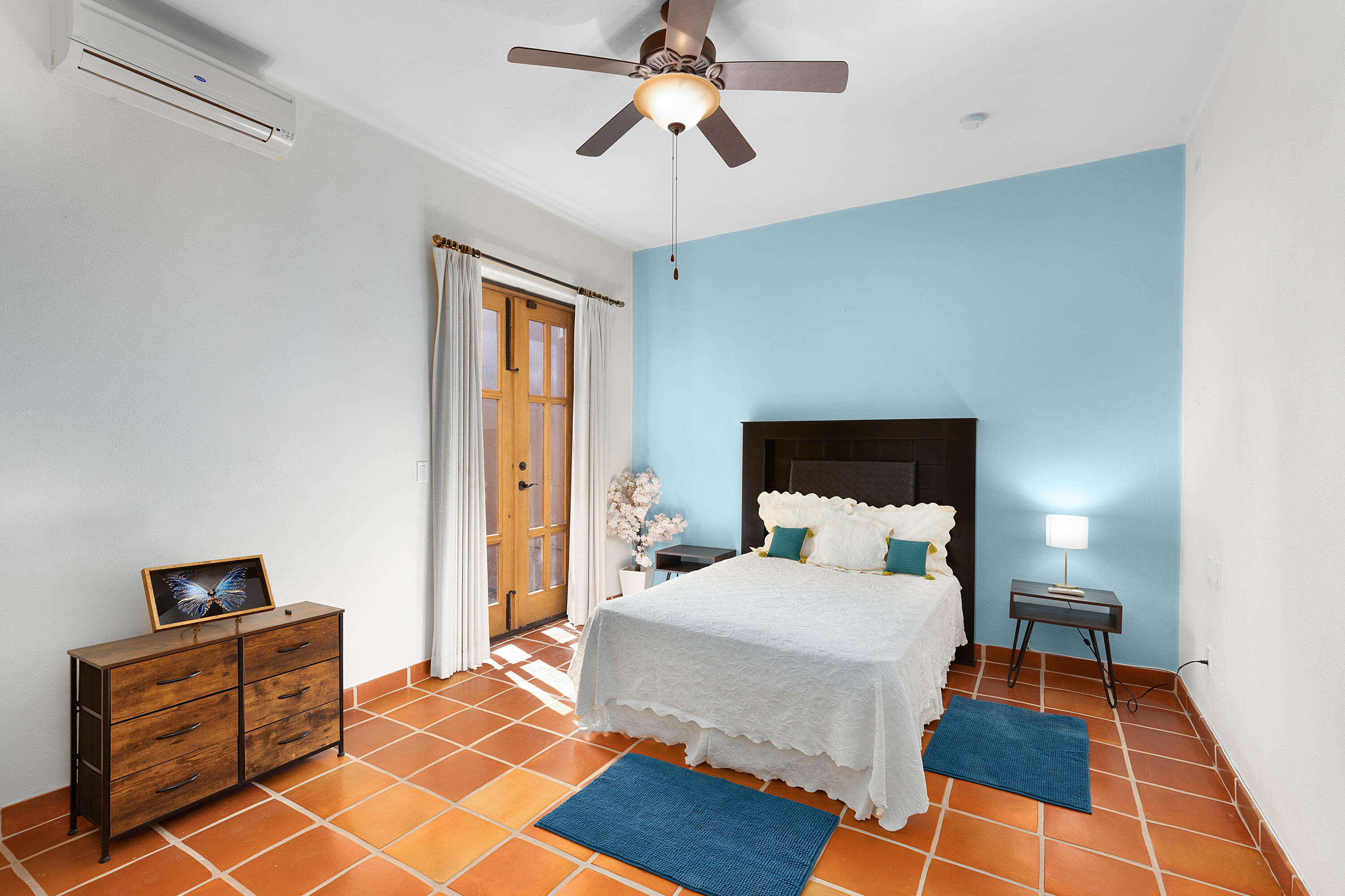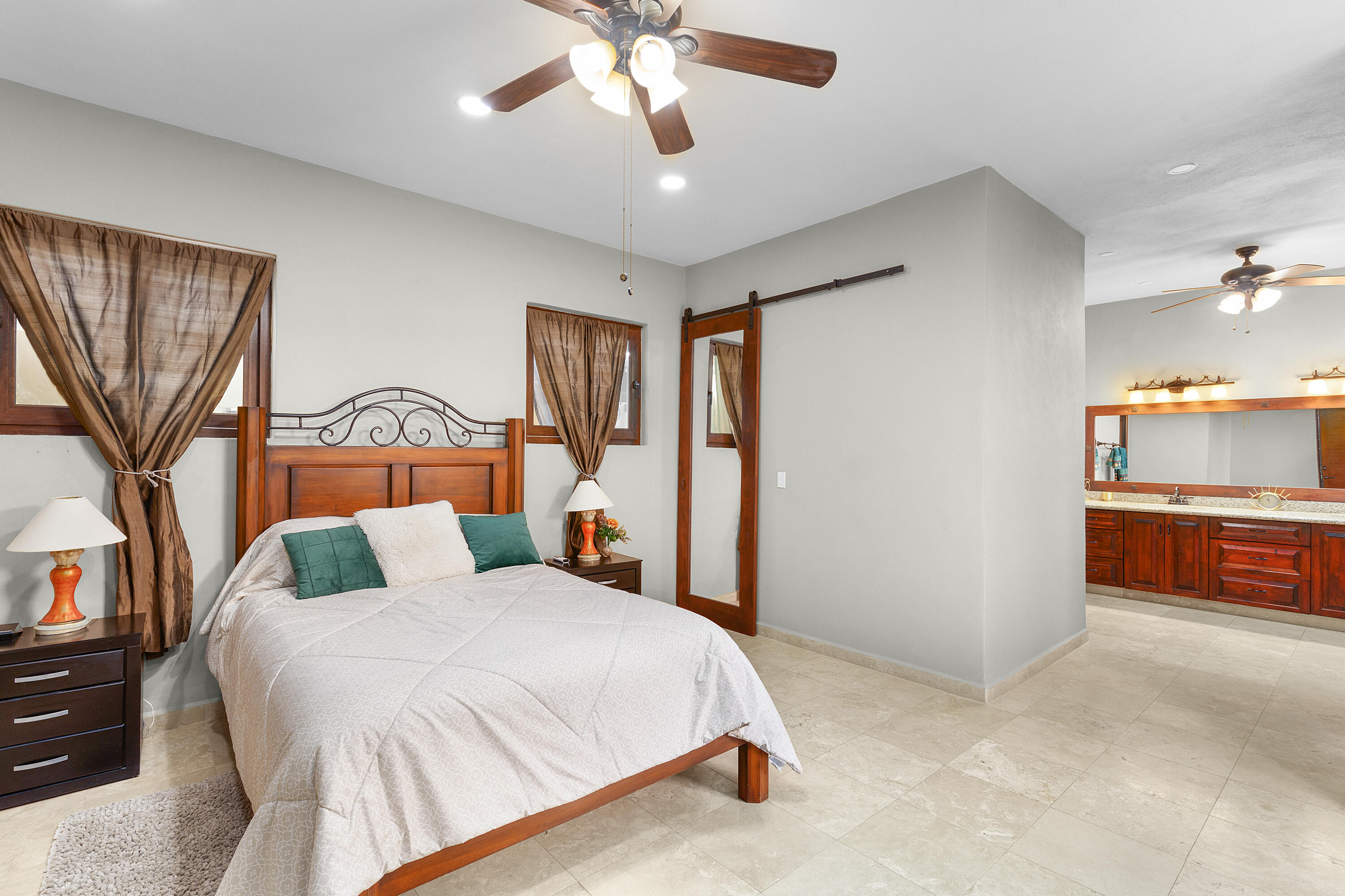 AV 21/22 is a distinctive 3-bedroom, 3-bath customized residence, offering stunning sea and mountain views.This spacious home is designed for comfortable ground-level living. On the main floor, you’ll find a large golf cart garage, two primary en-suites, and two versatile living areas that can serve as a gym, art studio, or home office. The kitchen features granite countertops, custom cabinetry, and a kitchen island, with the BBQ area conveniently located next to the kitchen in the shaded interior patio.
