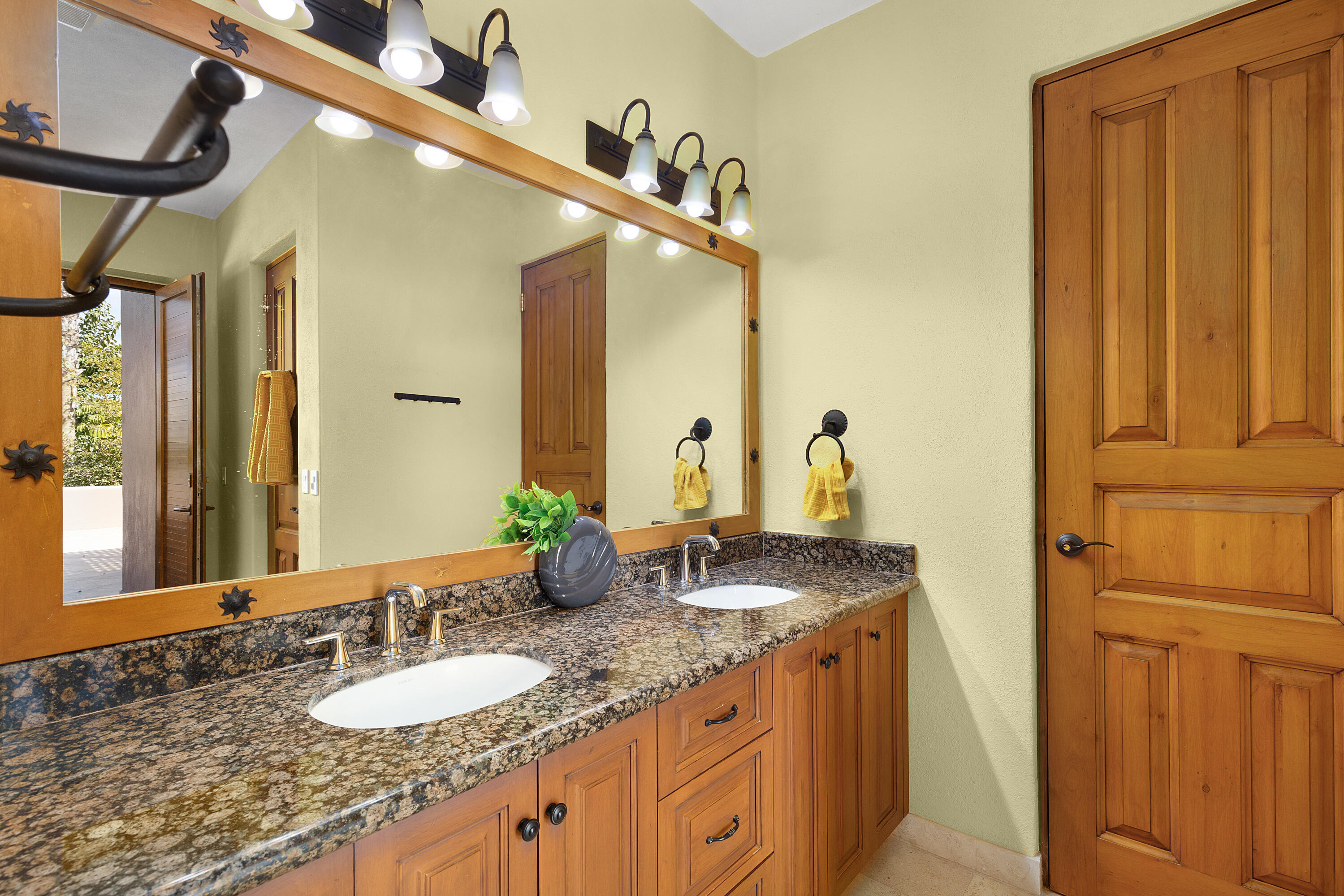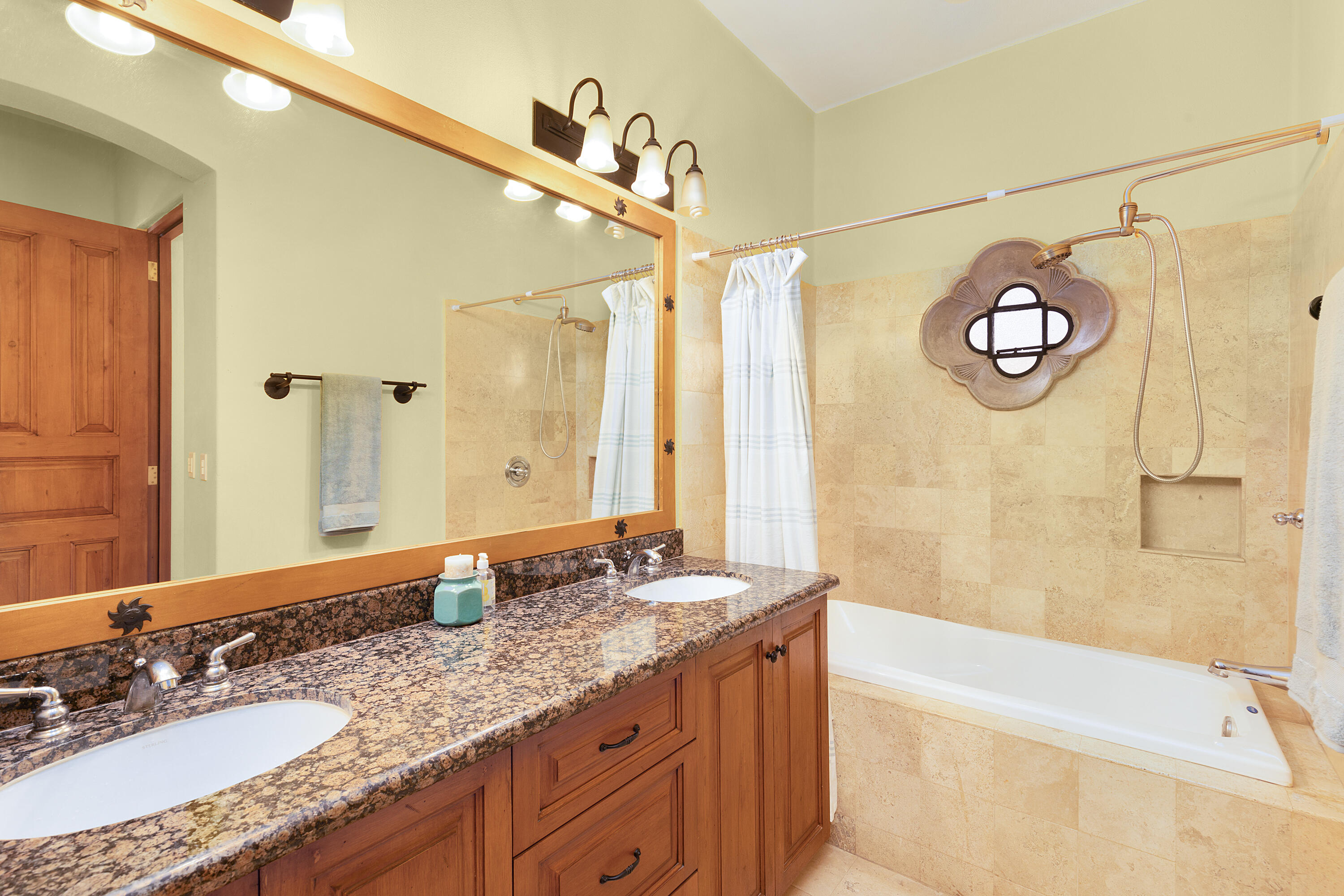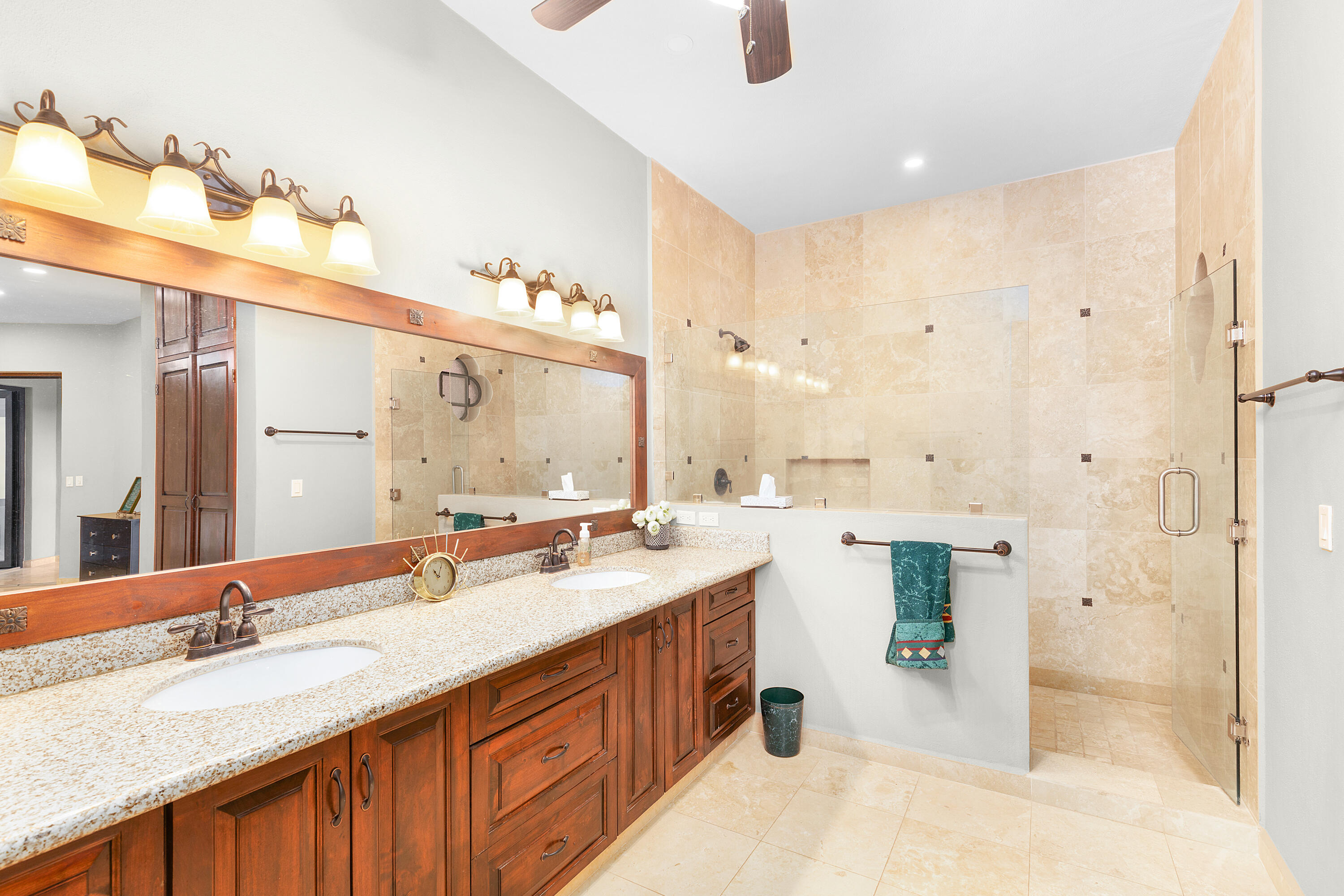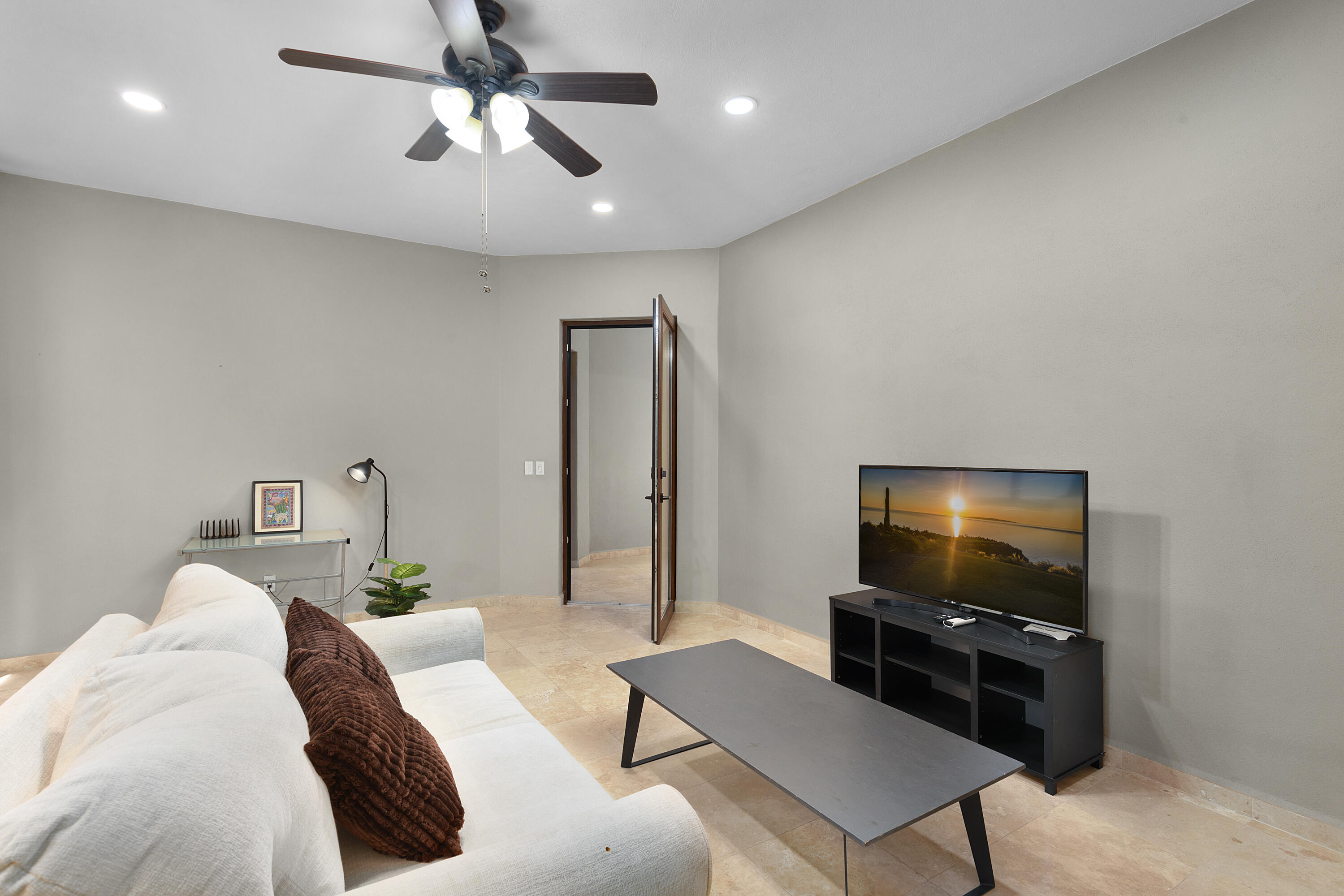 AV 21/22 is a distinctive 3-bedroom, 3-bath customized residence, offering stunning sea and mountain views.This spacious home is designed for comfortable ground-level living. On the main floor, you’ll find a large golf cart garage, two primary en-suites, and two versatile living areas that can serve as a gym, art studio, or home office. The kitchen features granite countertops, custom cabinetry, and a kitchen island, with the BBQ area conveniently located next to the kitchen in the shaded interior patio.