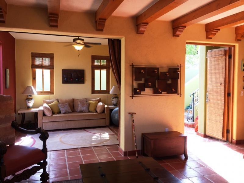 Custom Home with unobstructed Golf Course, Canal, Mountain and Sea of Cortez Views! Come and see this Large 2 bedroom, 3 bath home that is so much more than a vacation home. Lots of storage areas for bikes, kayaks; outdoor living area with mature landscaping; BBQ Cook Center on Terrace with sunset views of water and mountains; as well as View Tower with vast views in all directions. This home is beautifully furnished with solid wood furniture; Talavera kitchen and Bathrooms, large comfortable den that can be converted to Guest Room with private entrance. Separate Casita with Master bedroom and full bath that would be great in law suite, or private guest quarters. Located at the end of Aqua Viva for low density and easy access to golf course and canals.