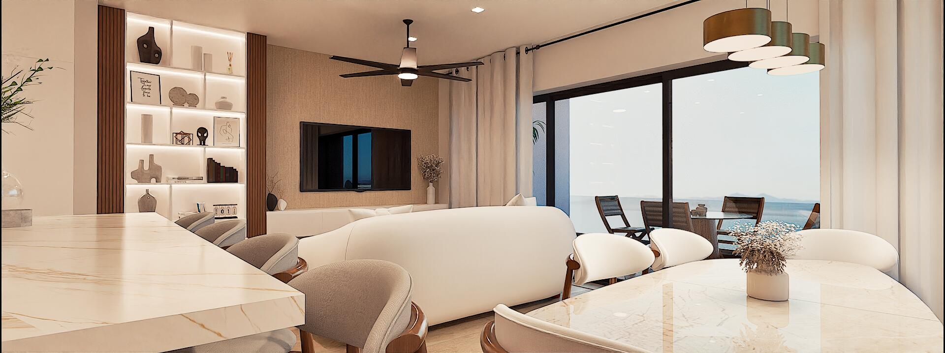 Bahia Plus 401 at VistAzul Condominiums redefines luxury coastal living in El Centenario, an emerging residential enclave of La Paz known for its open landscapes and connection to nature. Positioned across from protected marshland, it enjoys preserved views of the Sea of Cortes and unforgettable sunrises and sunsets become part of daily life. As the largest floor plan available, Bahia Plus offers expanded interiors, additional lateral windows, and a generous terrace. Refined finishes include Calacatta Gold quartz countertops, fine carpentry, Veracruz travertine marble floors and a fully equipped kitchen. Exceptional rooftop amenities complete a lifestyle designed for those ready to live the life they deserve.