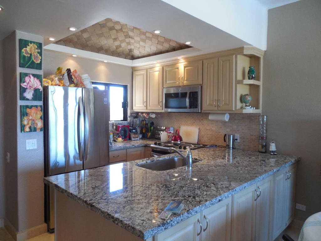 EXTRA LARGE CUSTOM PENTHOUSE Fabulous views from this spacious 2 BA 1 BDRM penthouse.. Truly what indoor outdoor living is all about. Walk out to an expansive covered terrace with built in bar-b-q and bar frig. Granite counters thru out, with custom coved kitchen ceiling and all new appliances. Steps to the beach, pools, plus all the amenities of Casa del Mar Resort. THIS IS A ONE OF A KIND!