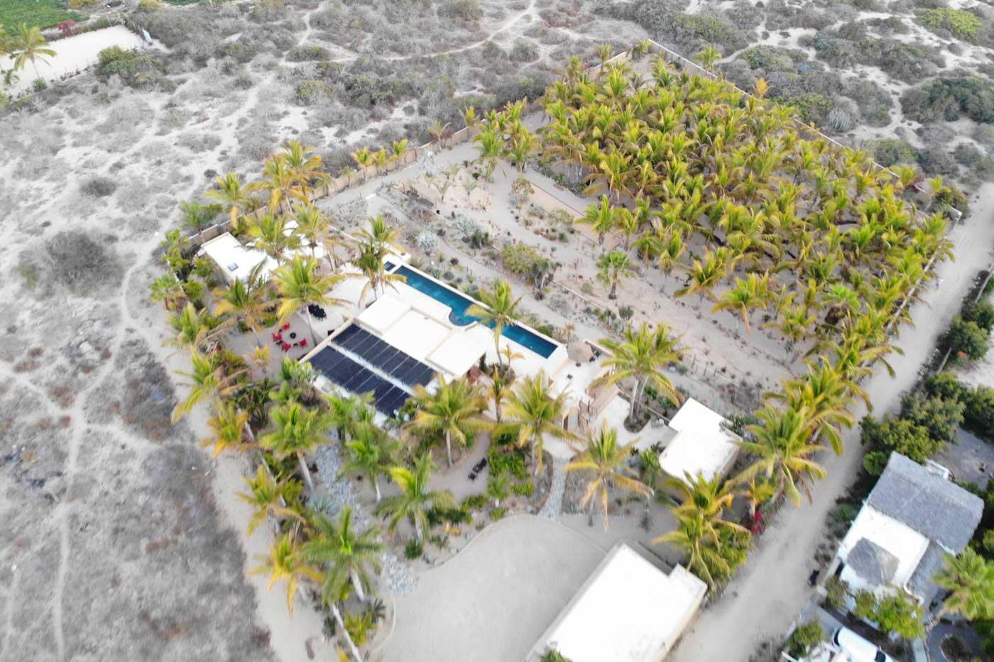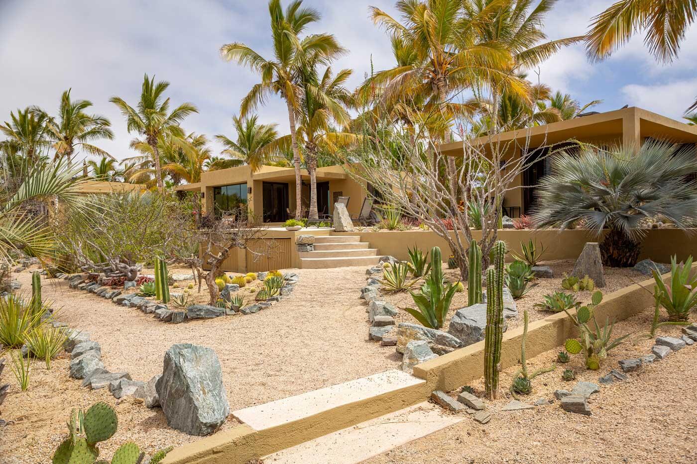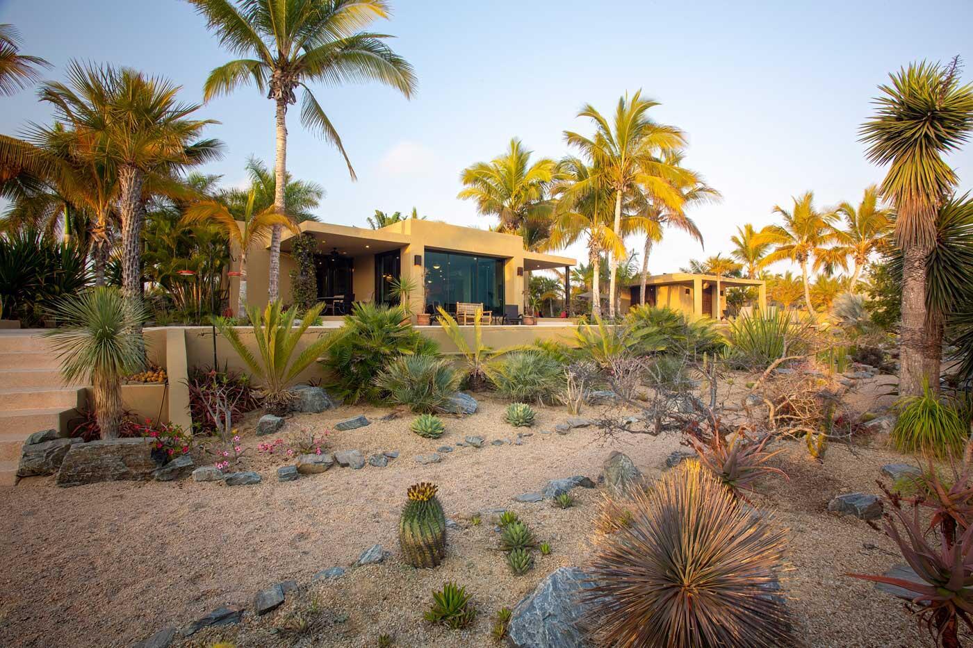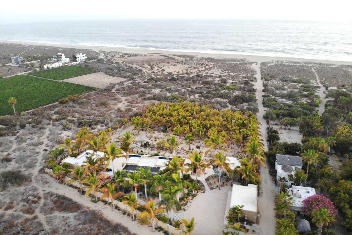 Nestled in the heart of San Sebastian, one of most sought after areas in Todos Santos, this idyllic beachside property boasts almost 2 acres of lush coconut palms, meandering paths, and custom design landscape of cacti, succulents and flora. This home is spread over 5 separate buildings which are connected by pebble tech hardscape and expansive outdoor spaces, taking full advantage of the unparalleled Baja Sur climate. This home has 3 bedrooms, 4 full bathrooms, a 3 car garage, and storage unit. The gourmet kitchen, great room and roof top viewing decks add to the charm of this uniquely spacious beachside property.Enjoy the personalized temperature of a solar heated saltwater lap pool and adjacent jacuzzi for sunrise and sunset dips.