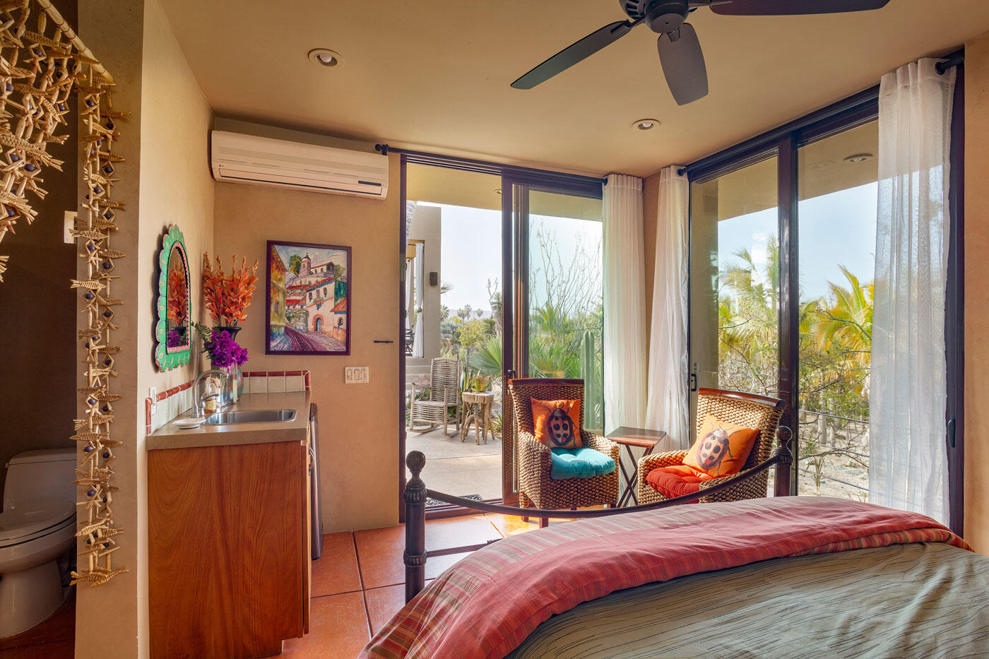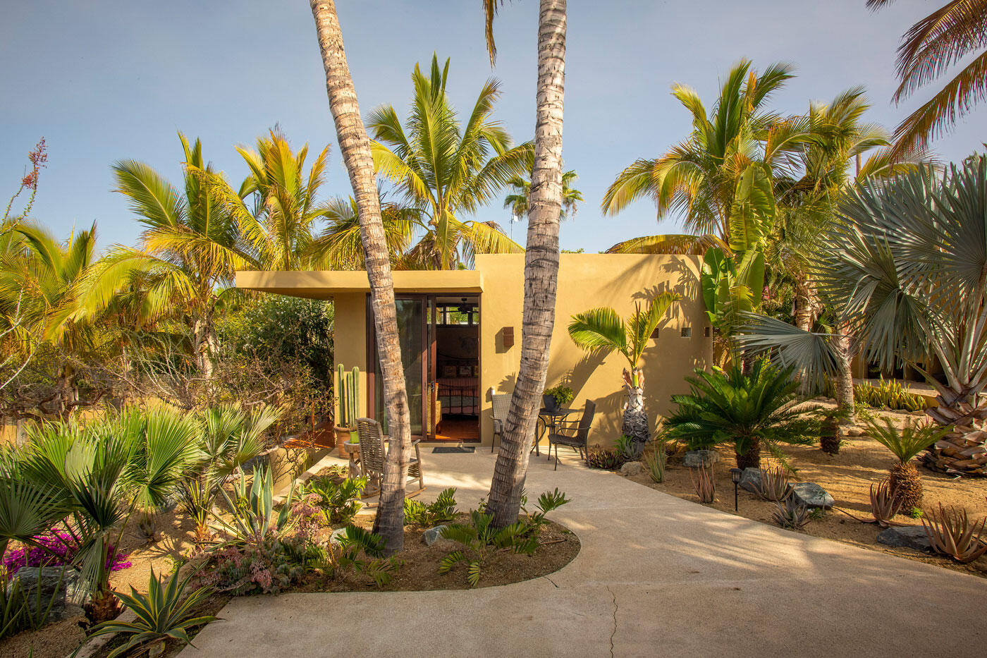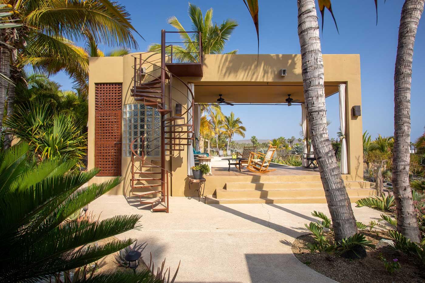 Nestled in the heart of San Sebastian, one of most sought after areas in Todos Santos, this idyllic beachside property boasts almost 2 acres of lush coconut palms, meandering paths, and custom design landscape of cacti, succulents and flora. This home is spread over 5 separate buildings which are connected by pebble tech hardscape and expansive outdoor spaces, taking full advantage of the unparalleled Baja Sur climate. This home has 3 bedrooms, 4 full bathrooms, a 3 car garage, and storage unit. The gourmet kitchen, great room and roof top viewing decks add to the charm of this uniquely spacious beachside property.Enjoy the personalized temperature of a solar heated saltwater lap pool and adjacent jacuzzi for sunrise and sunset dips.