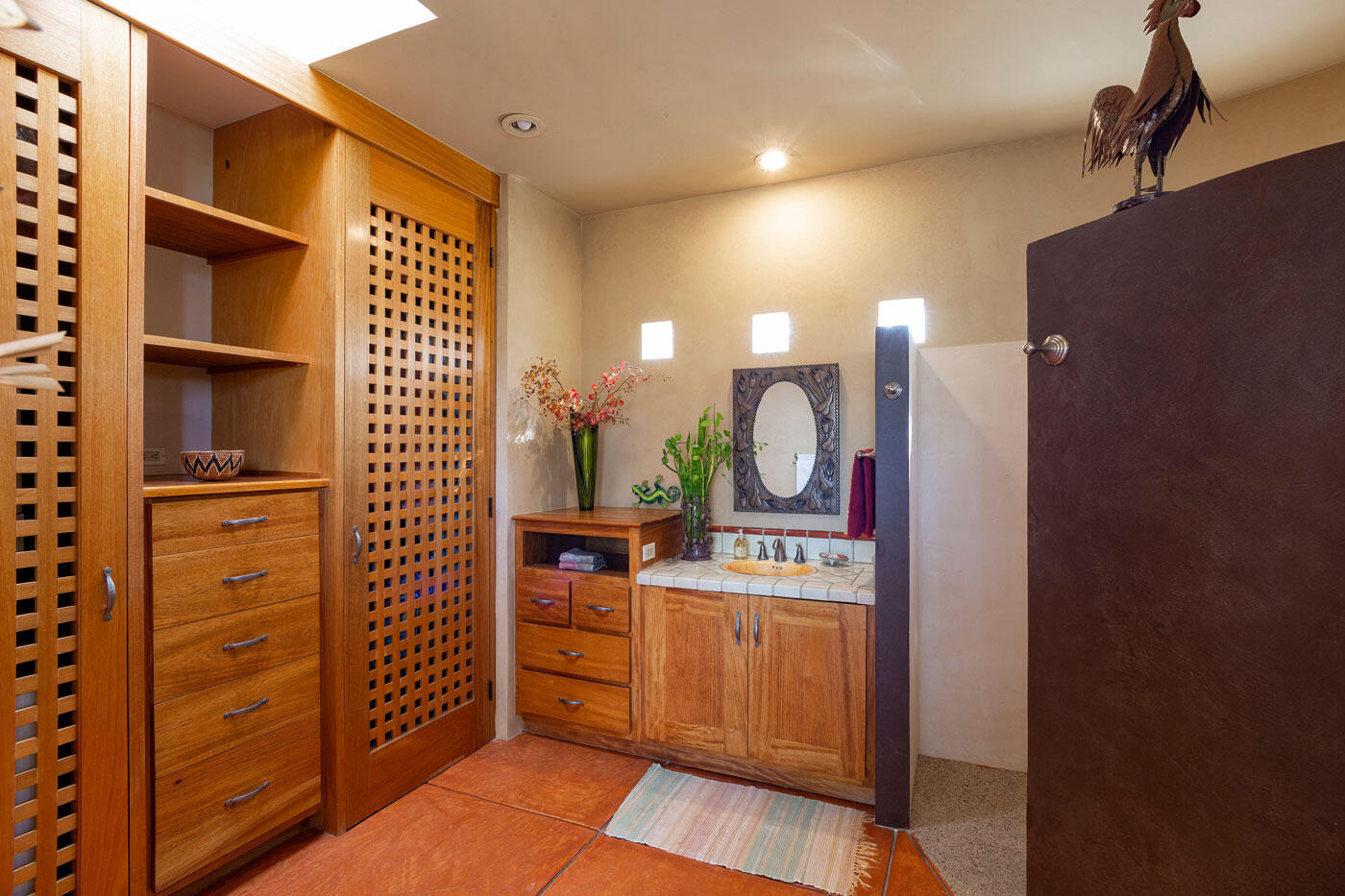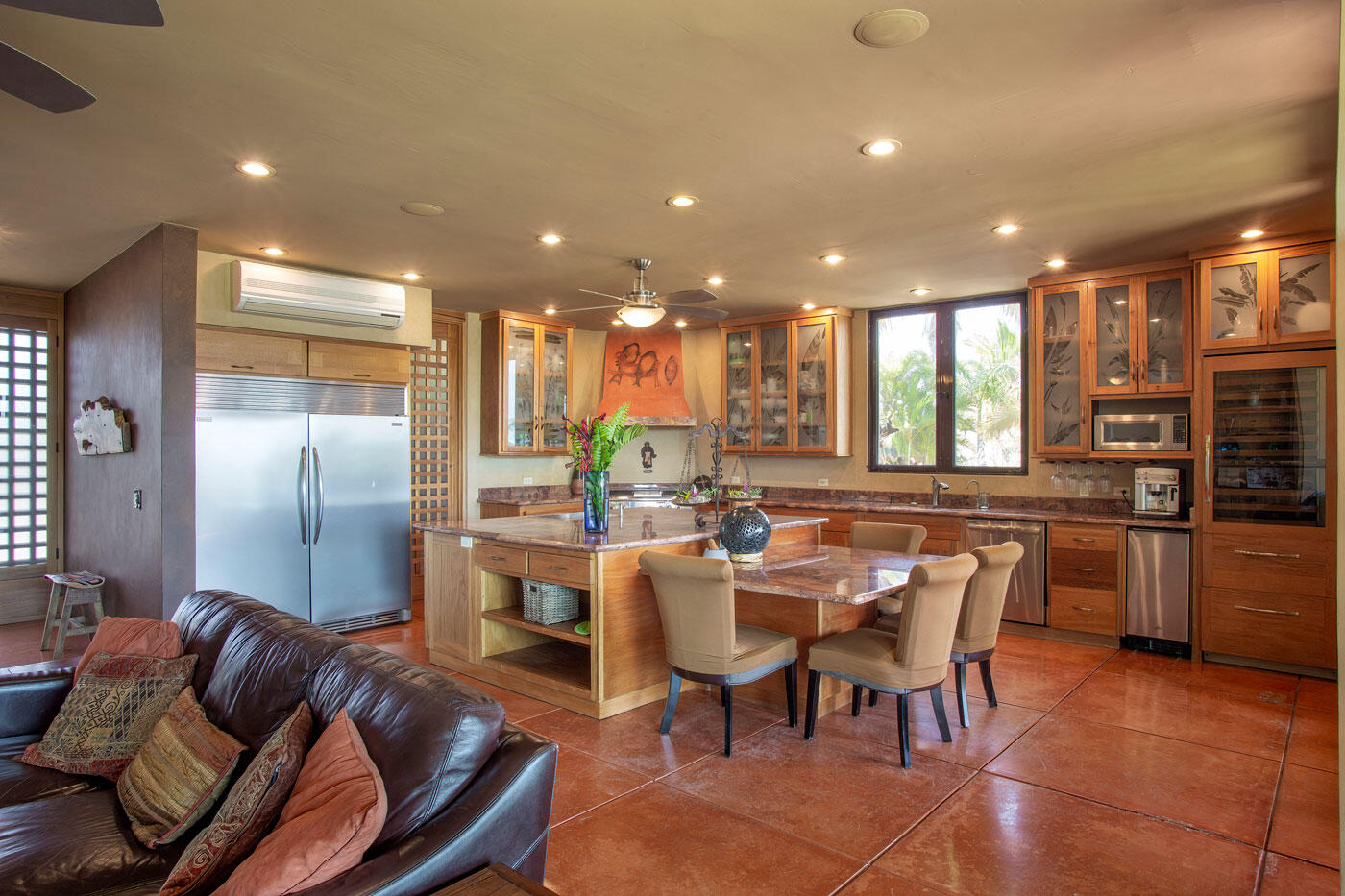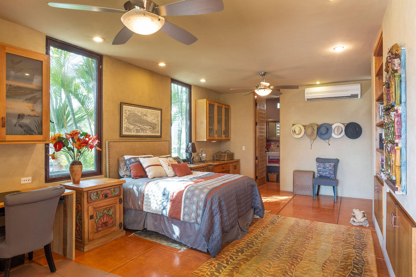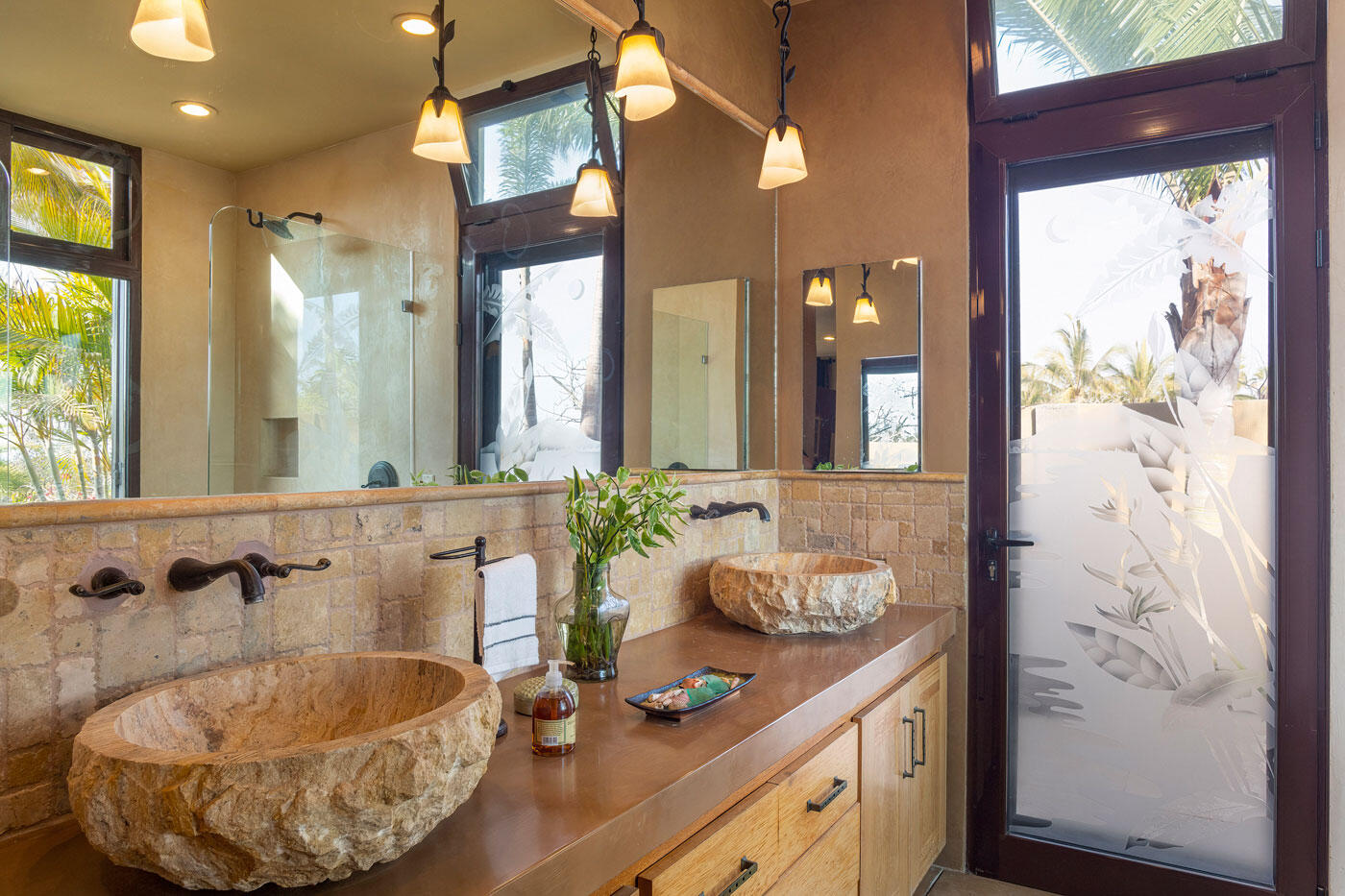 Nestled in the heart of San Sebastian, one of most sought after areas in Todos Santos, this idyllic beachside property boasts almost 2 acres of lush coconut palms, meandering paths, and custom design landscape of cacti, succulents and flora. This home is spread over 5 separate buildings which are connected by pebble tech hardscape and expansive outdoor spaces, taking full advantage of the unparalleled Baja Sur climate. This home has 3 bedrooms, 4 full bathrooms, a 3 car garage, and storage unit. The gourmet kitchen, great room and roof top viewing decks add to the charm of this uniquely spacious beachside property.Enjoy the personalized temperature of a solar heated saltwater lap pool and adjacent jacuzzi for sunrise and sunset dips.