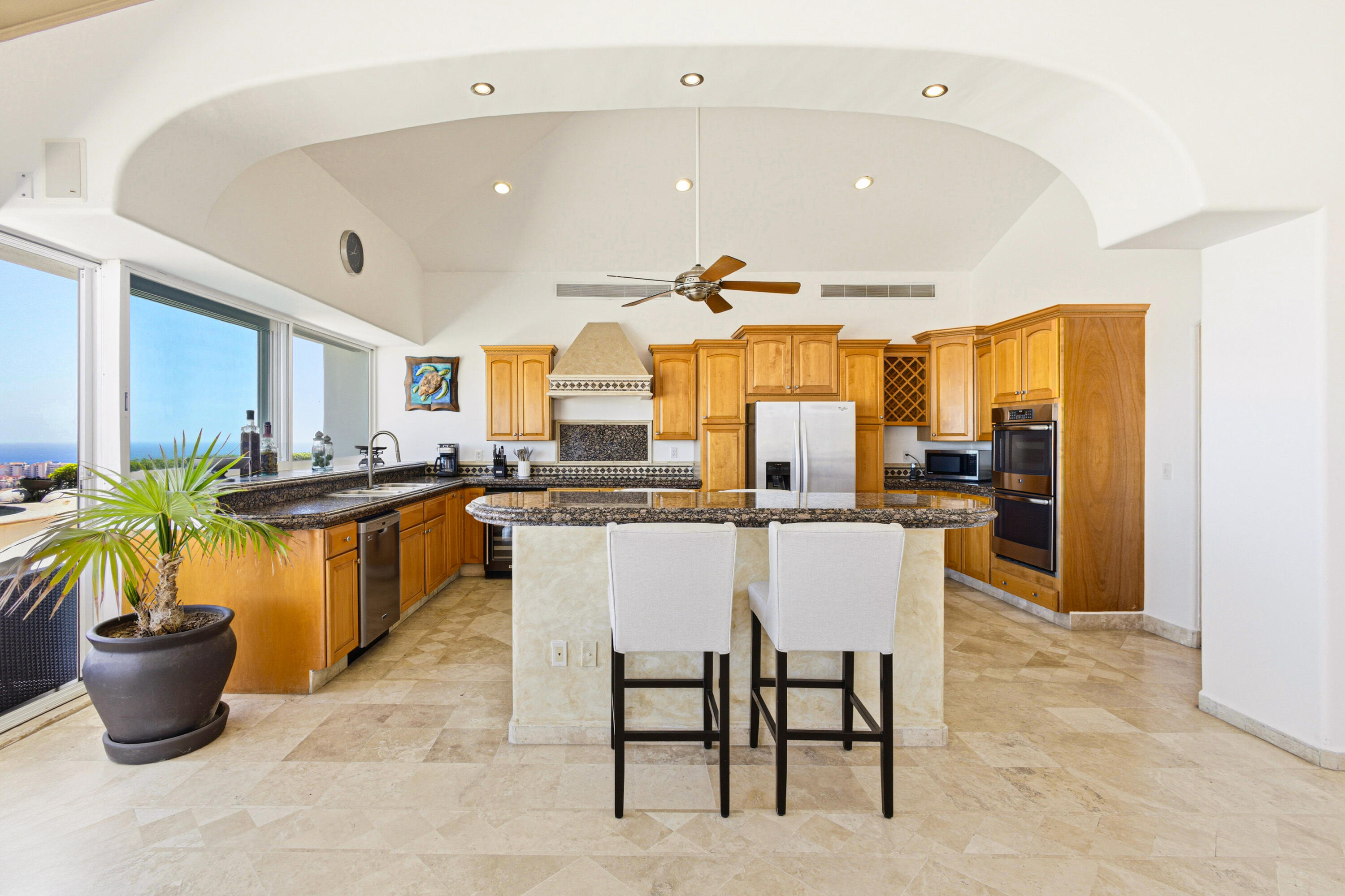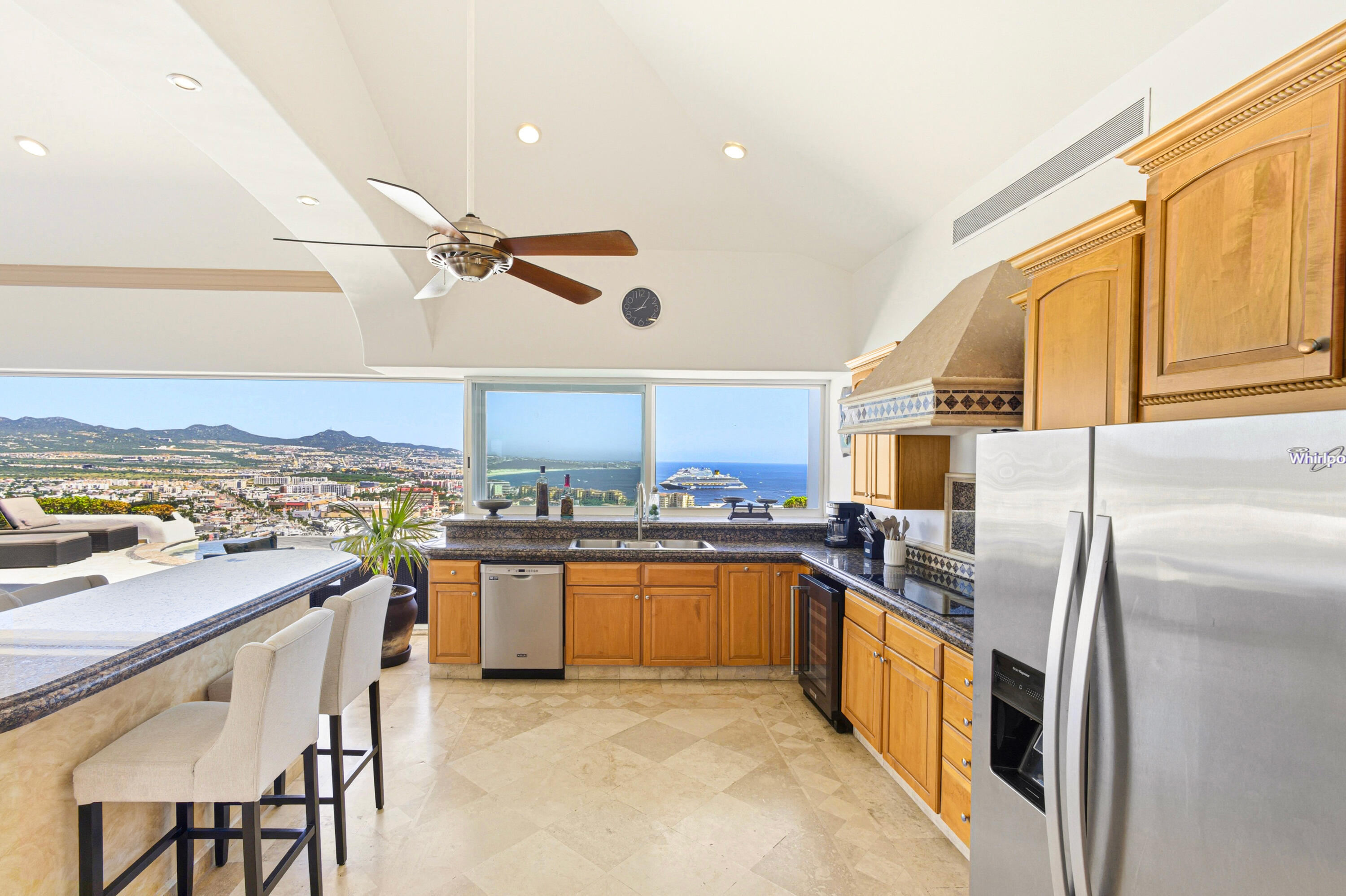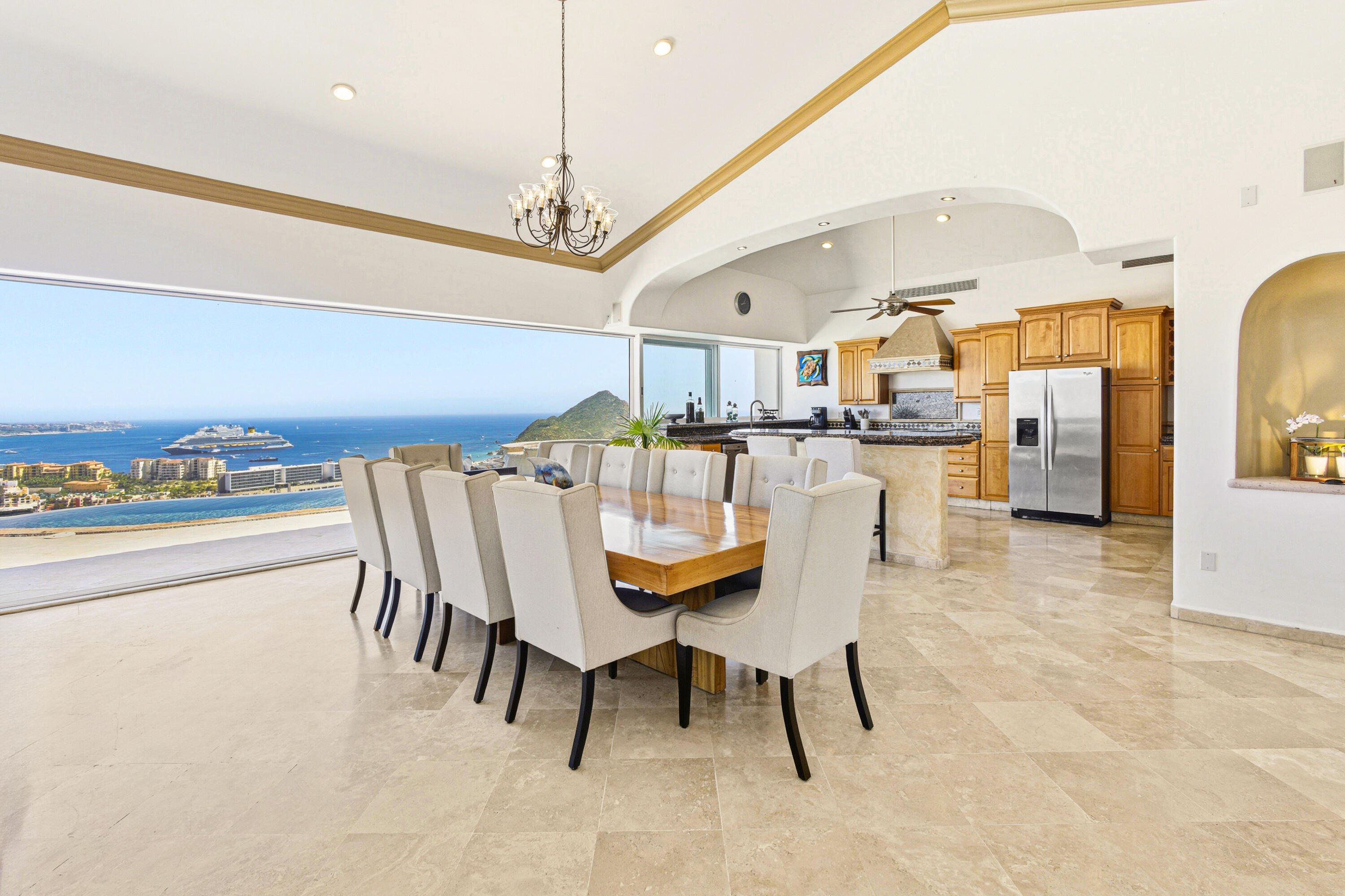 Set high above Pedregal, overlooking all Cabo San Lucas, Villa Leonetti reigns as the property with the most breathtaking panoramic views of the marina, Medano bay, and the city. By day, the sea sparkles endlessly; by night, the lights of Cabo shimmer below. On the market for the first time, this 7,865 sq. ft. residence blends classic elegance with relaxed Baja sophistication. Featuring 4 bedrooms, 4.5 baths, and generous indoor-outdoor living, it’s designed for everyday comfort and exceptional entertaining. Three suites offer private terraces and en-suite baths, while the infinity pool and jacuzzi invite you to embrace the best of Los Cabos living. Villa Leonetti truly stands as the king overlooking all of Cabo.