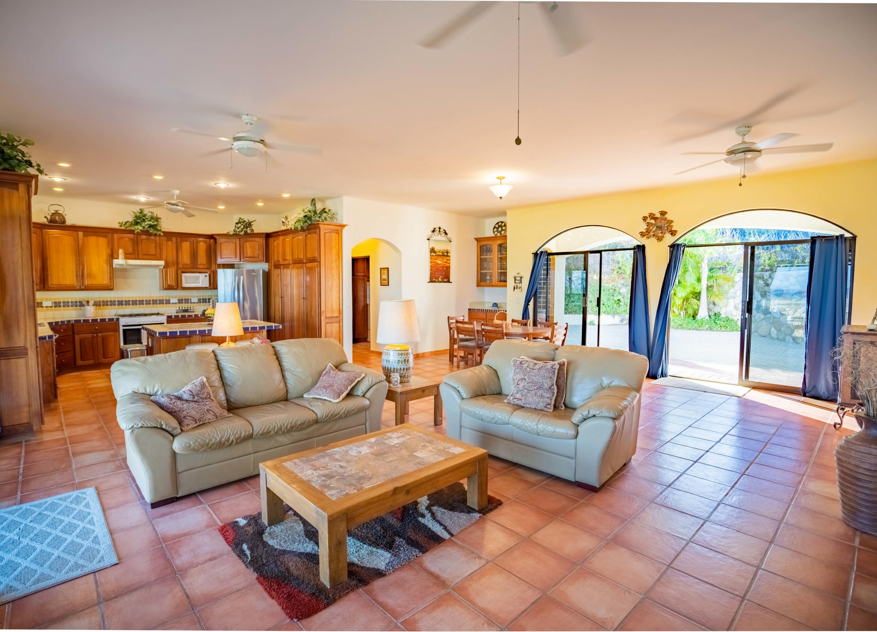 This incredible view home has two bedrooms and two bathrooms in the main home plus another two bedrooms and two baths in a detached but separate building. The home has beautiful imported hardwood cabinets throughout and the rooftop deck with a 360 degree view is great for parties and small get togethers. Amenities include: Main house refrigerator, dishwasher, hot water heater and Washer Dryer all replaced within 2 years. There are A/C units in all bedrooms and in the kitchen. The large back deck and patio area would accommodate a pool/spa. The entire property is irrigated with timers. Pura water filtration throughout the house plus two hot water heaters for no cold showers. Plus an outdoor shower plus a fish cleaning area. Offered fully furnished and turnkey.