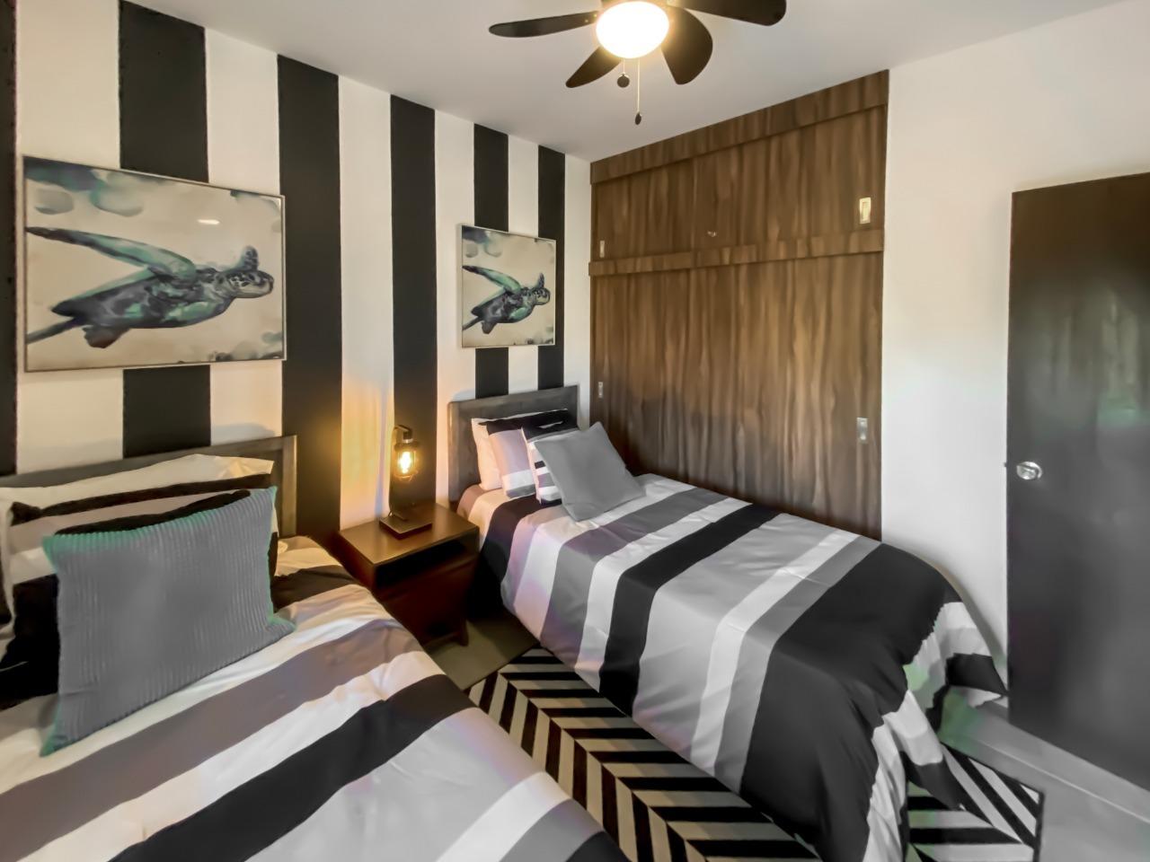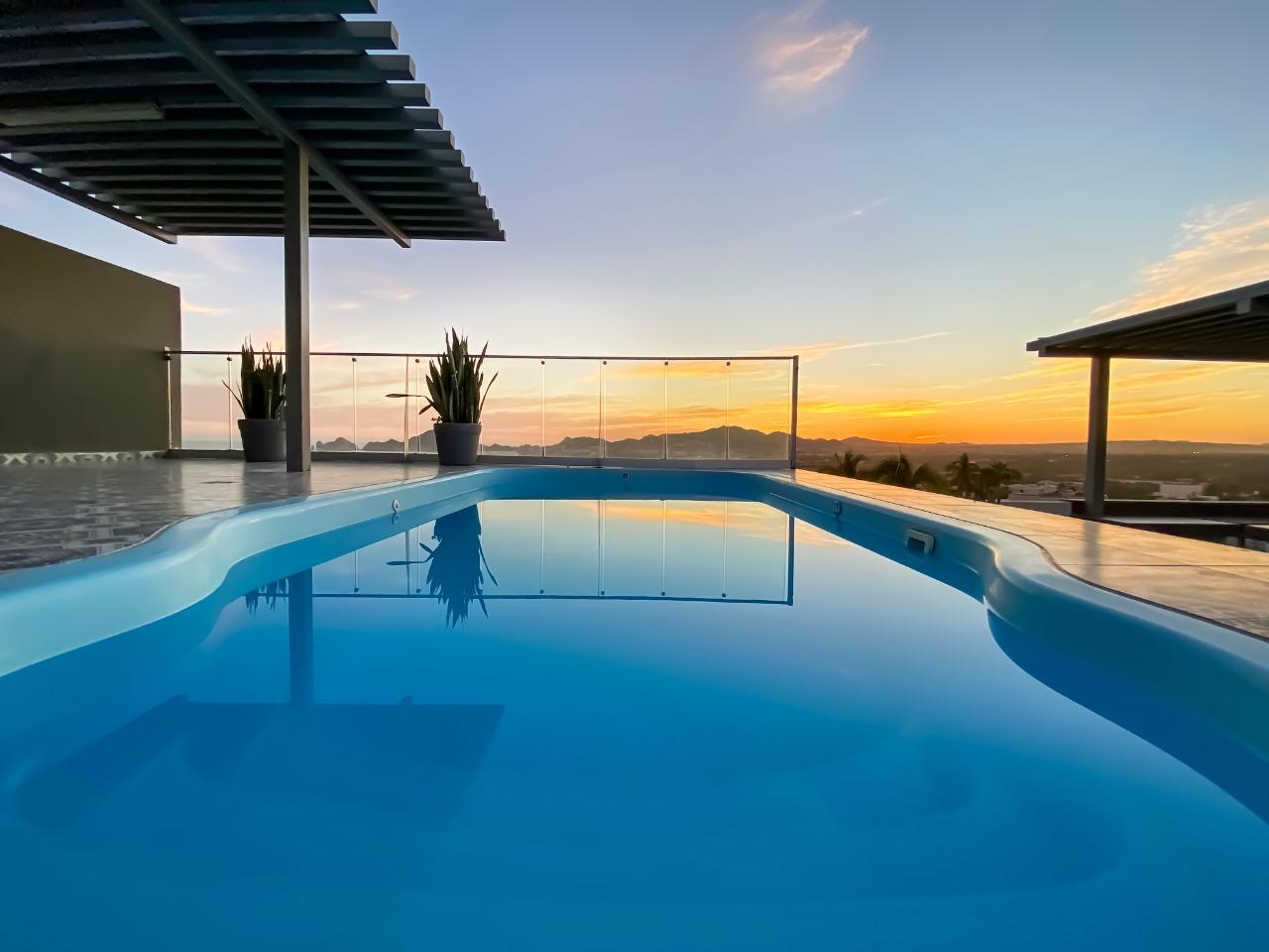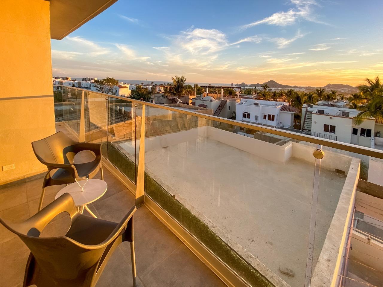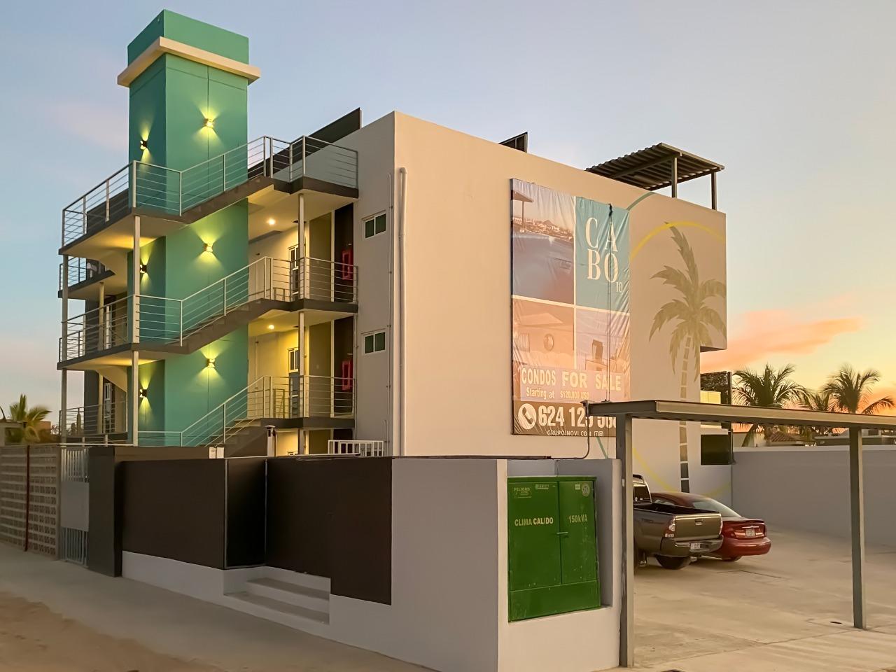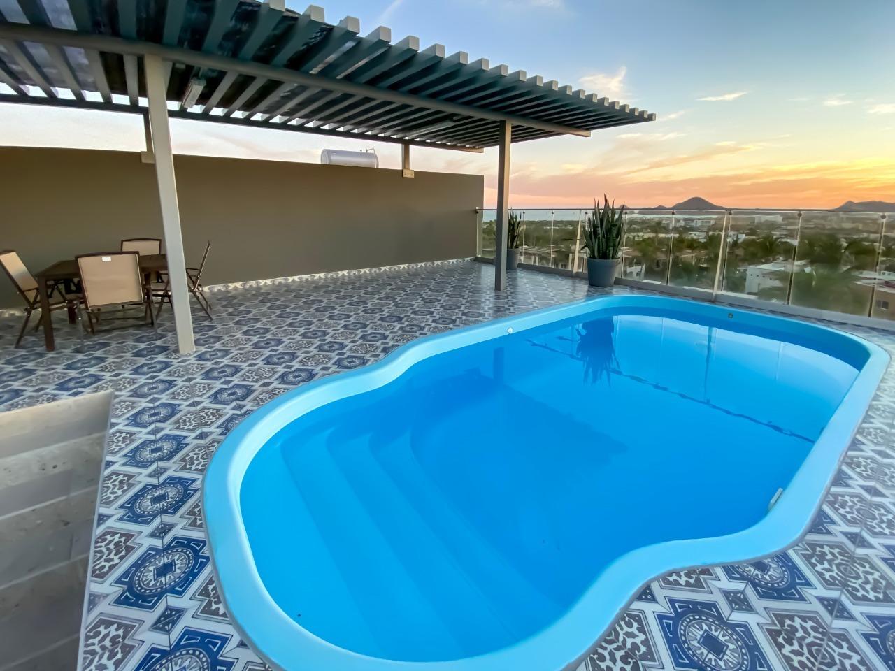 Beautiful Condos for sale in El Tezal, Cabo Corridor 3 beds, 2 full baths , modern kitchen , with granite countertops, equipped with A/C Mini-Splits, also laundry room in the unit. Amazing rooftop terrace with pool and grill ,5000 Lts. Water tank 2 car parking spaces.