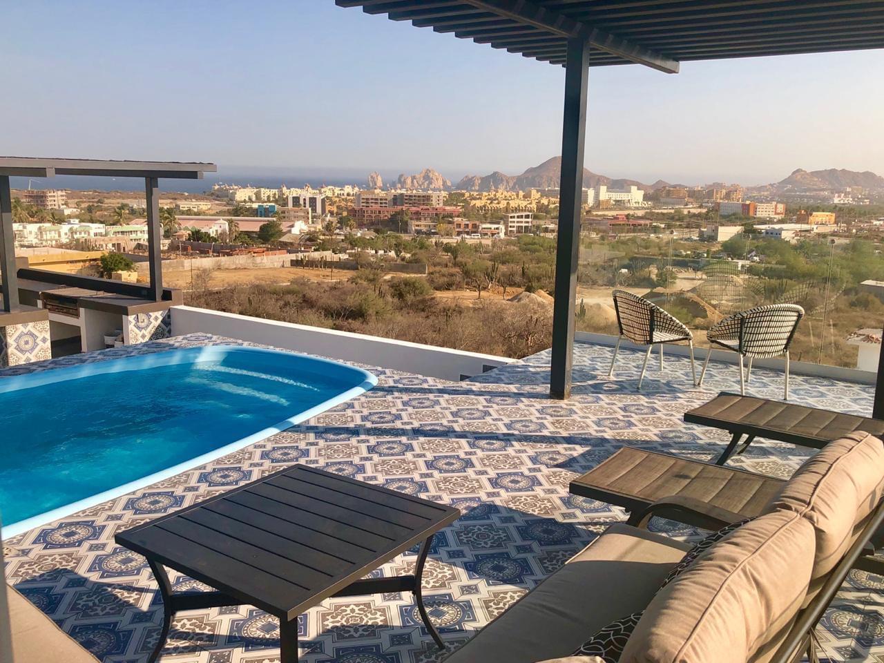 Beautiful Ocean View Condos for sale in El Tezal, Cabo Corridor. 3 beds, 2 full baths , modern kitchen equipped, with granite countertops, also laundry room in the unit. Amazing rooftop terrace with pool and grill. Elevador, All rooms equipped with A/C Mini-Splits ; 5000 Lts. Water tank 2 car parking spaces.