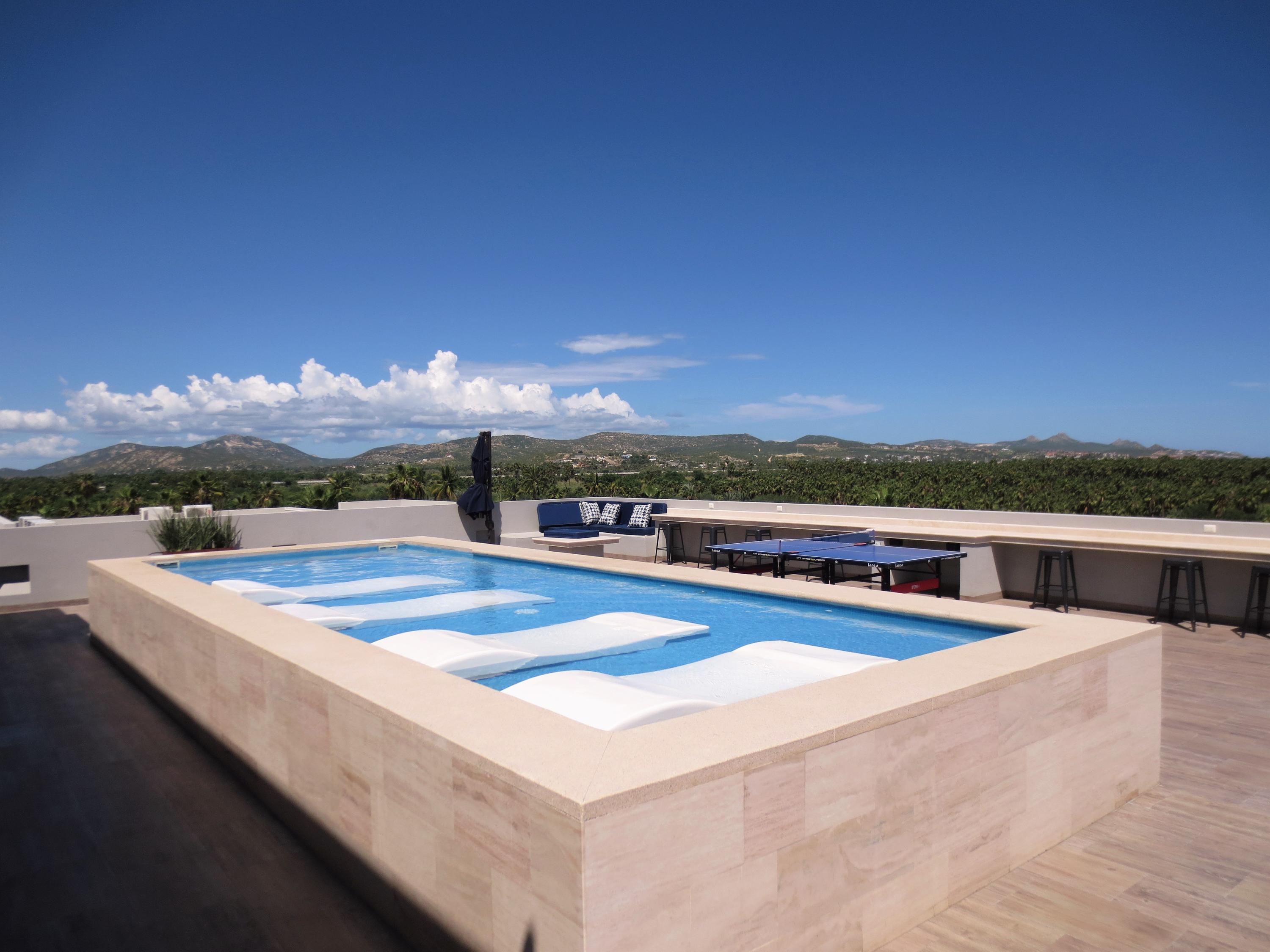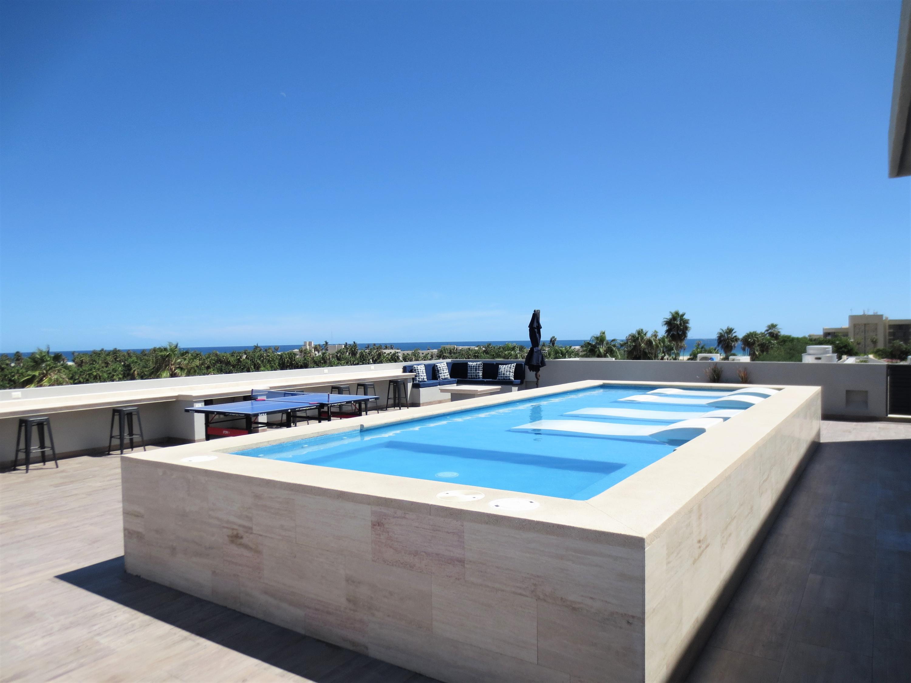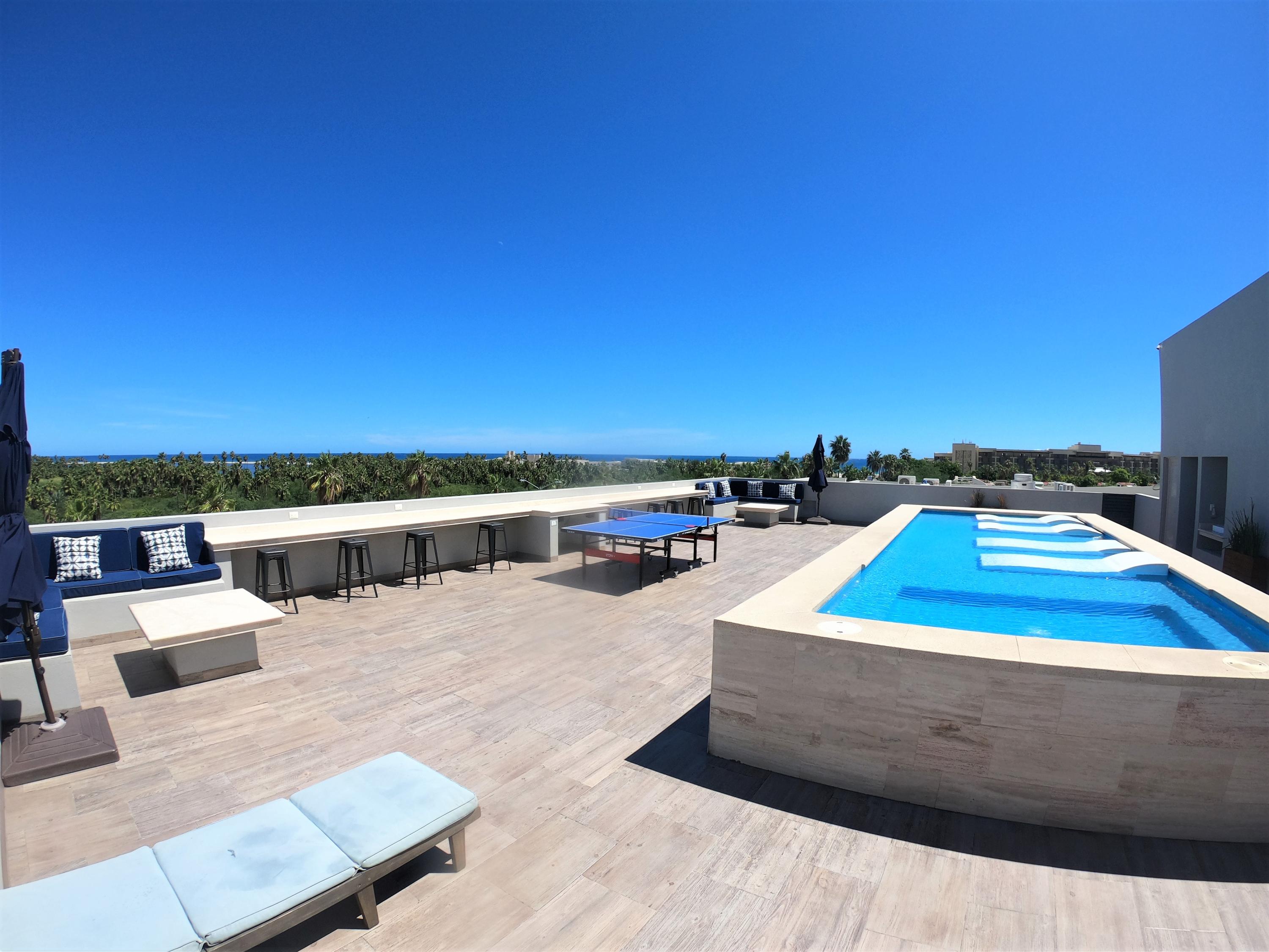 Seller Financing – Cactus 1092-5B, is one of the most desirable units in the building (no neighbors on either side) & is actually a penthouse, priced aggressively to sell. Uniquely located near the San Jose Estuary and close to the beach. Brand new property and turnkey. Roof top pool & entertaining deck area with plenty of seating & great views of the ocean, golf course & the mountains. Safe secure area & close to the ”Hotel Row” w/ lots of very high end hotels that offer day passes additional dining and various events. Come enjoy Vidanta/Omni, Cabo Azul, Viceroy, Royal Solaris, Barcelo & more. Commercial space on the ground floor of this building also offer some close by options for food, etc. & Plaza Pescador is a close walk for access to lots of shops, restaurants & even Cabo Fitness.