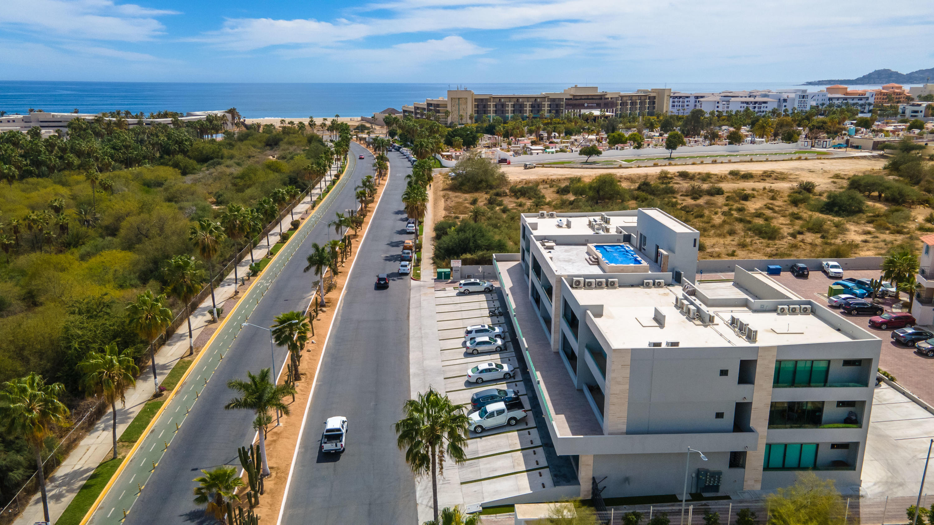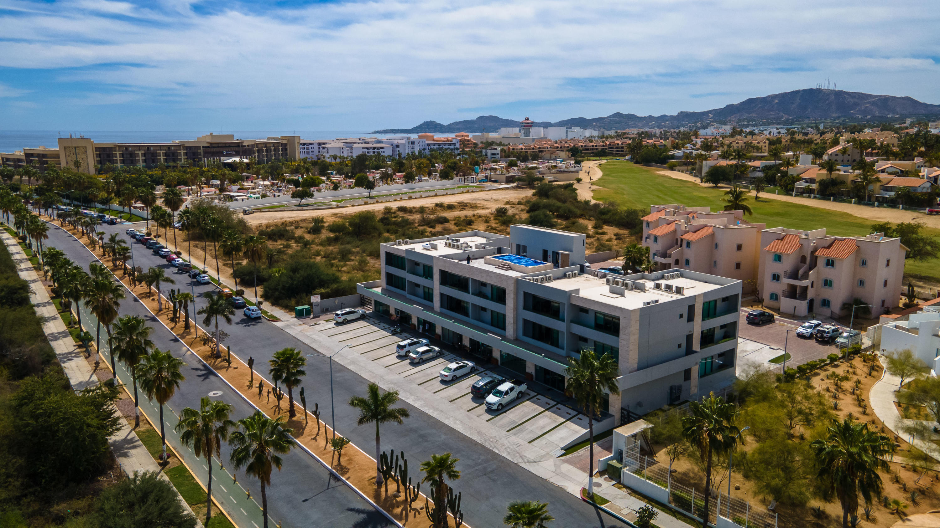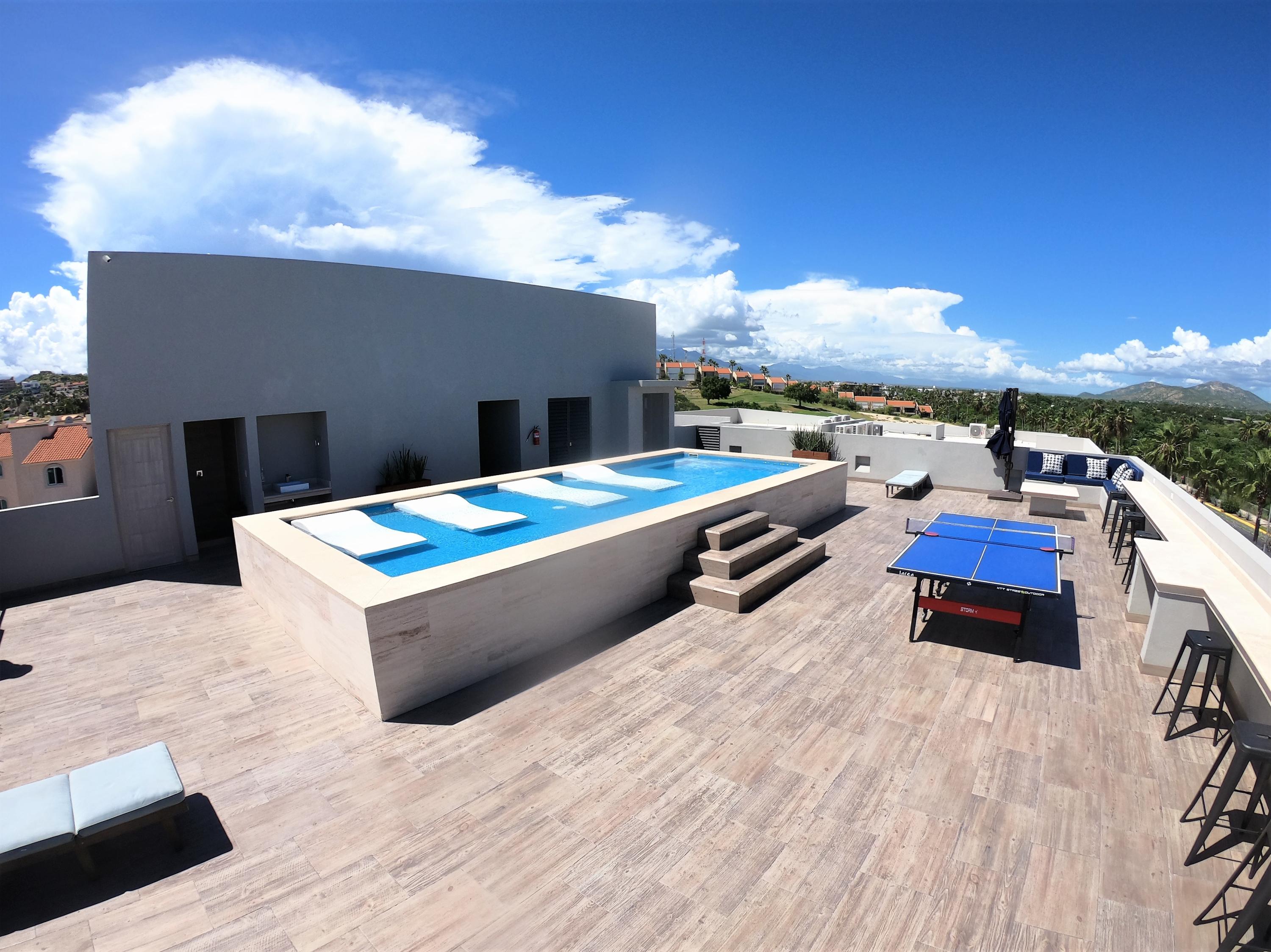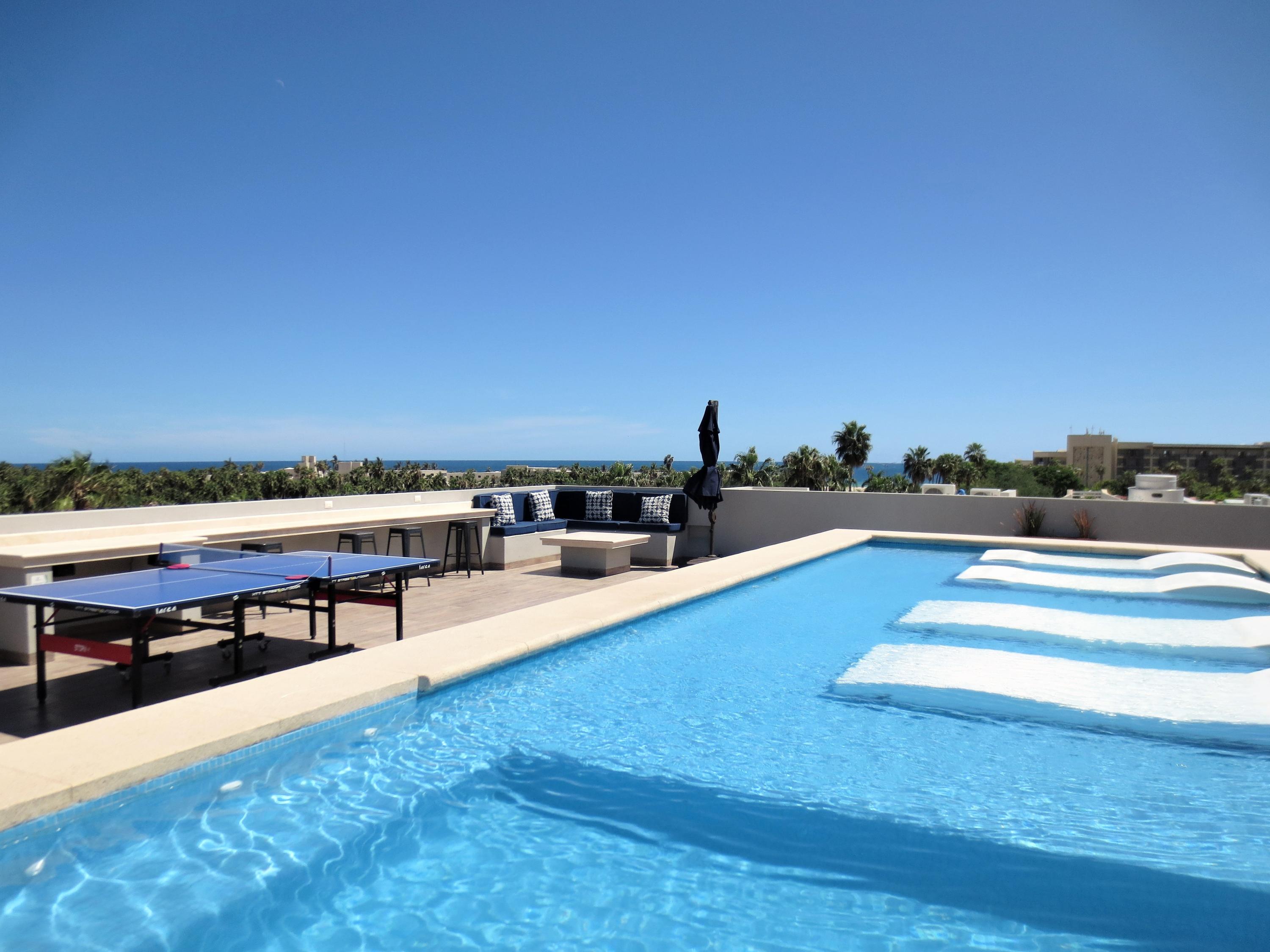 Seller Financing – Cactus 1092-5B, is one of the most desirable units in the building (no neighbors on either side) & is actually a penthouse, priced aggressively to sell. Uniquely located near the San Jose Estuary and close to the beach. Brand new property and turnkey. Roof top pool & entertaining deck area with plenty of seating & great views of the ocean, golf course & the mountains. Safe secure area & close to the ”Hotel Row” w/ lots of very high end hotels that offer day passes additional dining and various events. Come enjoy Vidanta/Omni, Cabo Azul, Viceroy, Royal Solaris, Barcelo & more. Commercial space on the ground floor of this building also offer some close by options for food, etc. & Plaza Pescador is a close walk for access to lots of shops, restaurants & even Cabo Fitness.