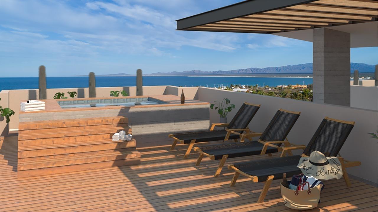 CALYPSO is a brand new condominium project offering pre-construction prices and located in one of the fastest growing beach areas in Baja California Sur. La Ventana Bay, located just 35 min south east of La Paz is a world renowned kite surfing destination with premier beaches and water activities abound. This modern, luxurious and comfortable 2 Bedroom, 2 full Bathroom unit has 1,076 sqft with unobstructed ocean views. The Project has a common rooftop with hot tub, bathrooms and BBQ area. The 360 views from this amazing vantage point are spectacular!