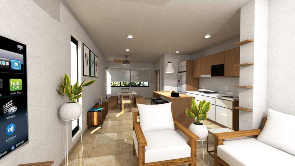 Presale. Your wonderful condo is located near the heart of Cabo San Lucas. Single-family residence condominium regime, developed [for maximum privacy], with 3 independent access points. Located near the main shopping centers, banks, cinemas, supermarkets, hospitals and only 5 minutes from the beach and the new Diamante golf course [Love-Woods designers], the owners are far from the ”madding crowd” of peace and the quiet of the neighborhood. but conveniently close to all your needs, when needed. This duplex on the ground floor, has parking for 2 cars, a hallway and a very large backyard, where you can place a small pool, palapa and barbecue.