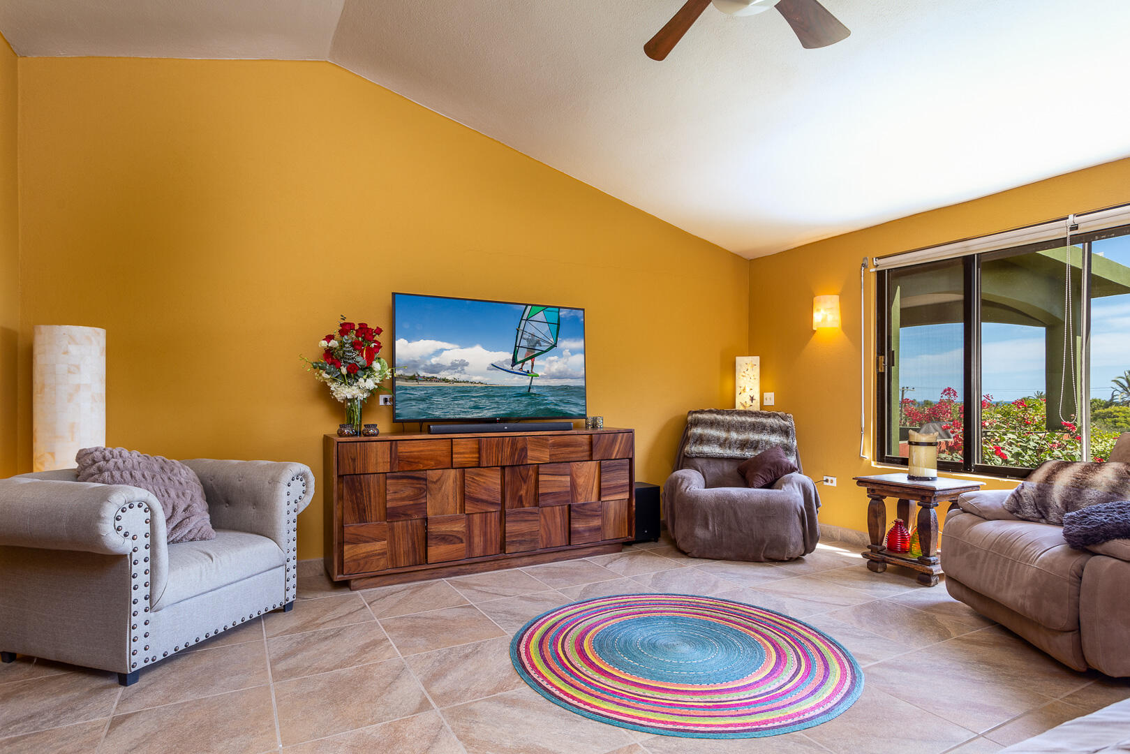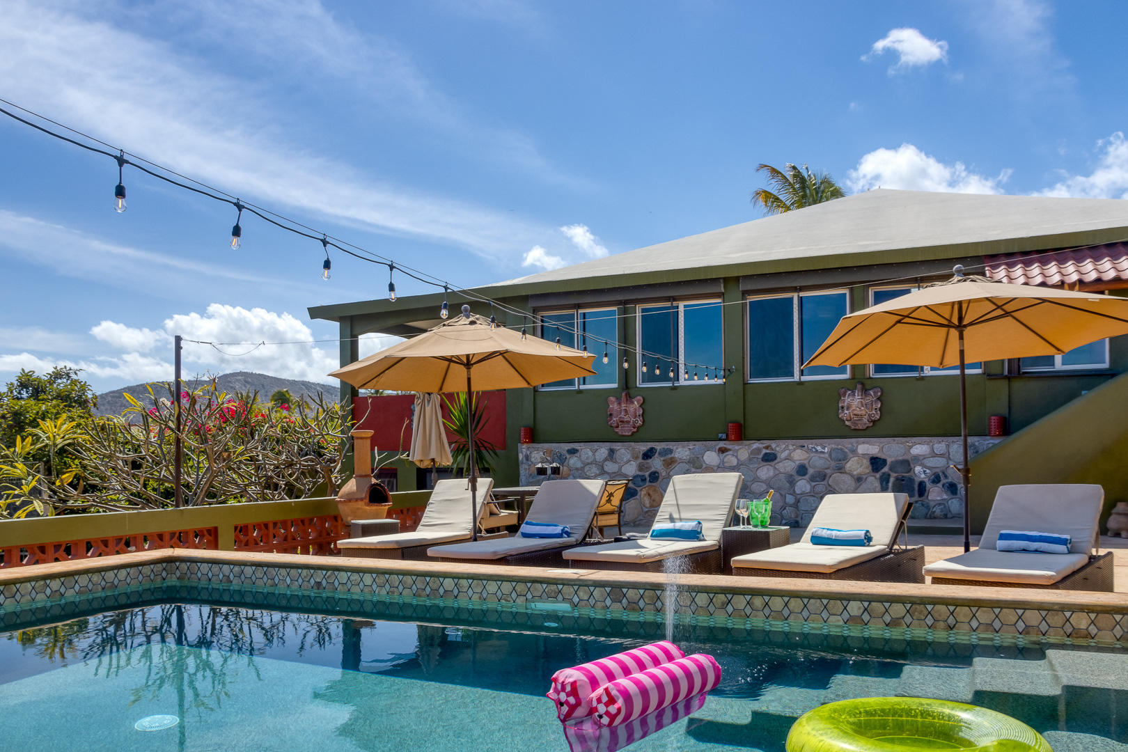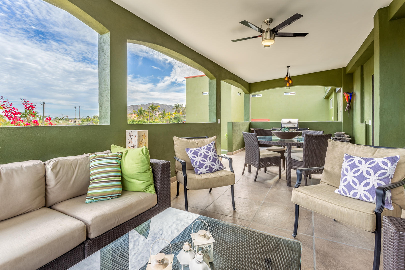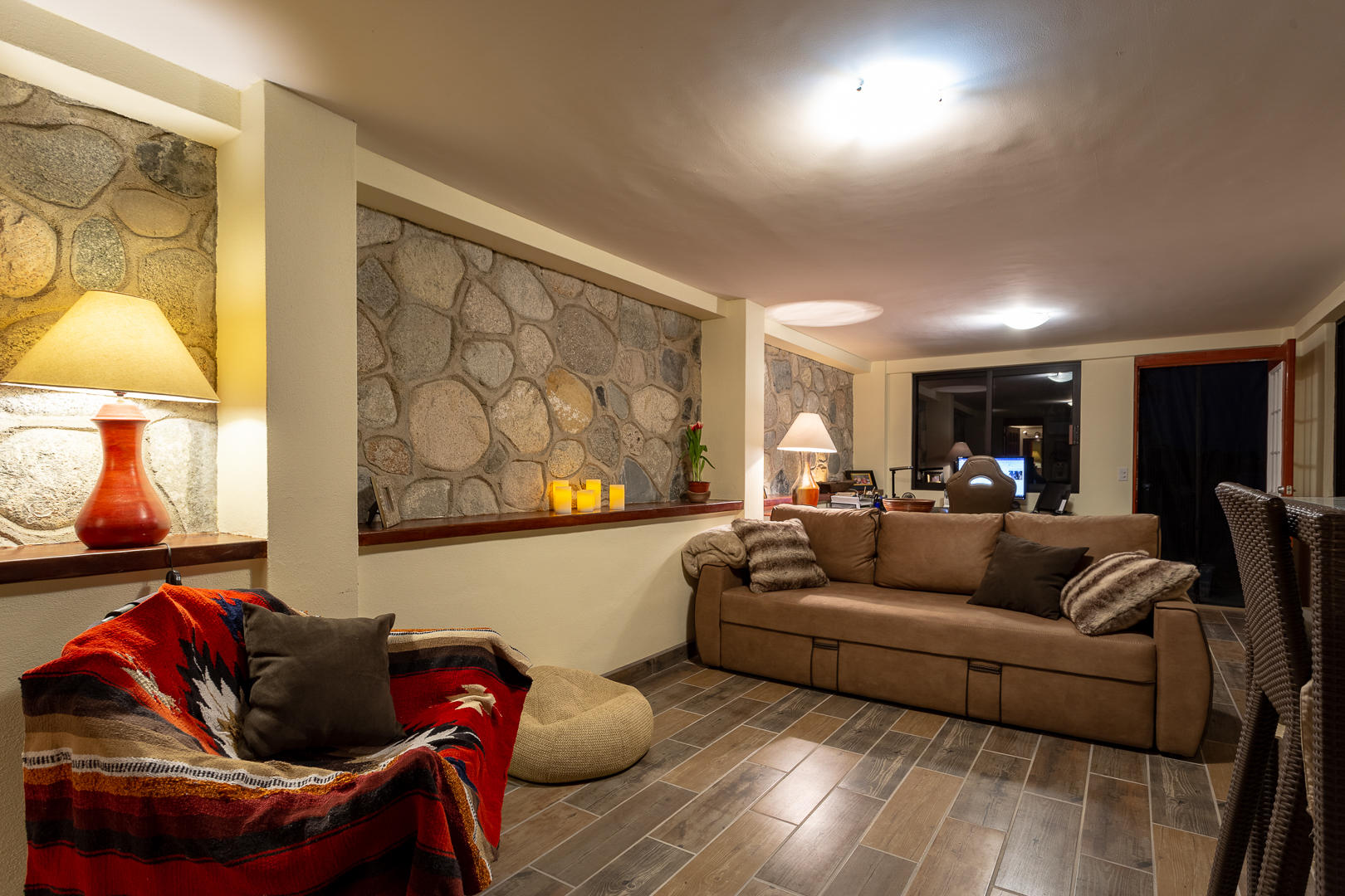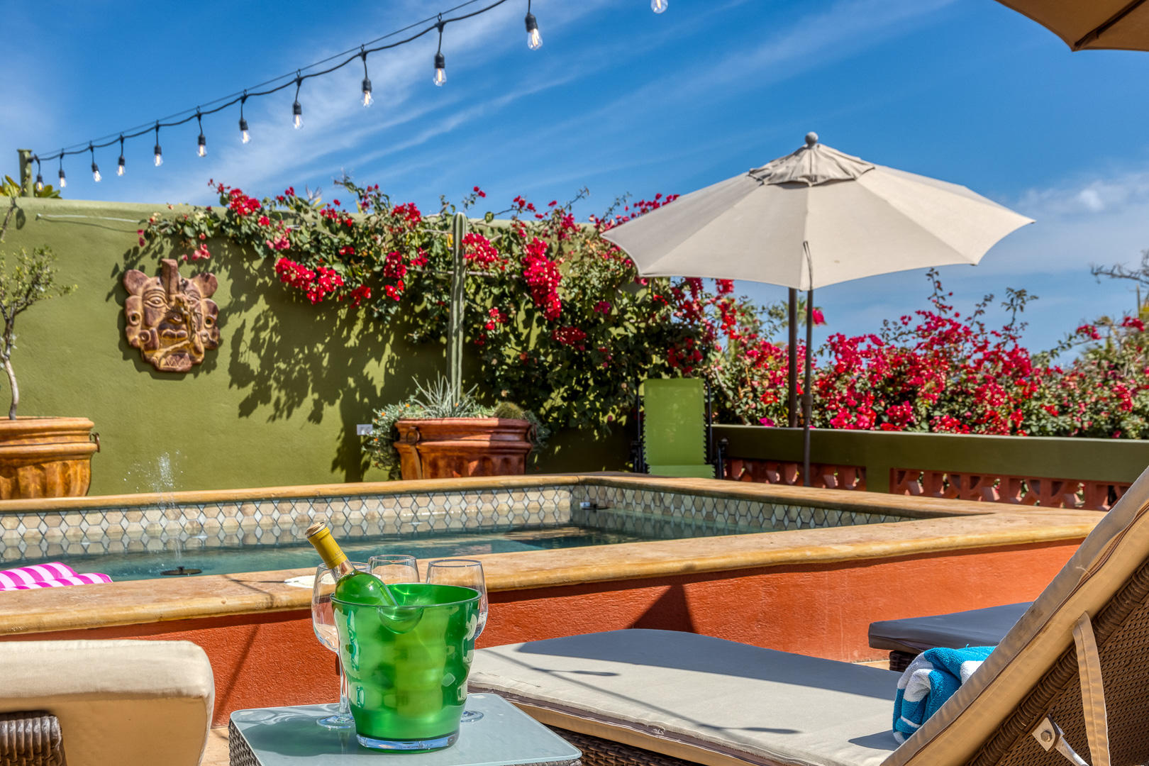 Casa Brisas is the perfect family or entertainment home perched on a hill and benefiting from stunning views of the ocean and mountains all around. Located in central Los Barriles in a much sought-after quiet neighborhood, the views from the house resemble those of Hawaii rather than a desert thanks to the myriad of palm trees. This four bedroom house has been lovingly expanded since it was bought to include a well-designed open plan main living area with more than three separate decks and patios as well as an expansive pool patio with outdoor kitchen and sitting area as well as heated pool. Gardens are designed by well-known local expert Christine Edge (Edge of the Sea). A large garage can accommodate a boat or several ‘toys’ and cars. A garage roof terrace delivers even better views!