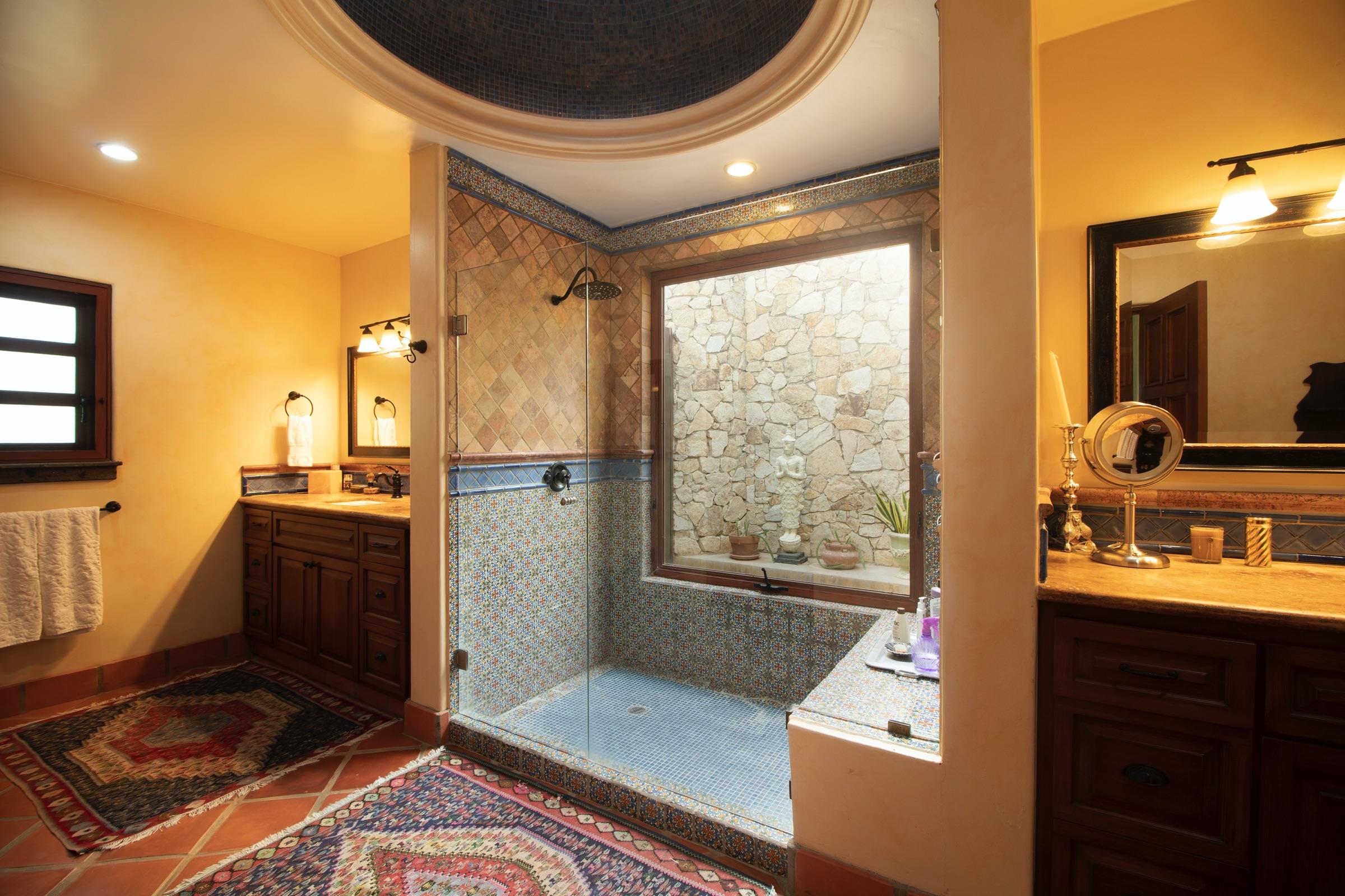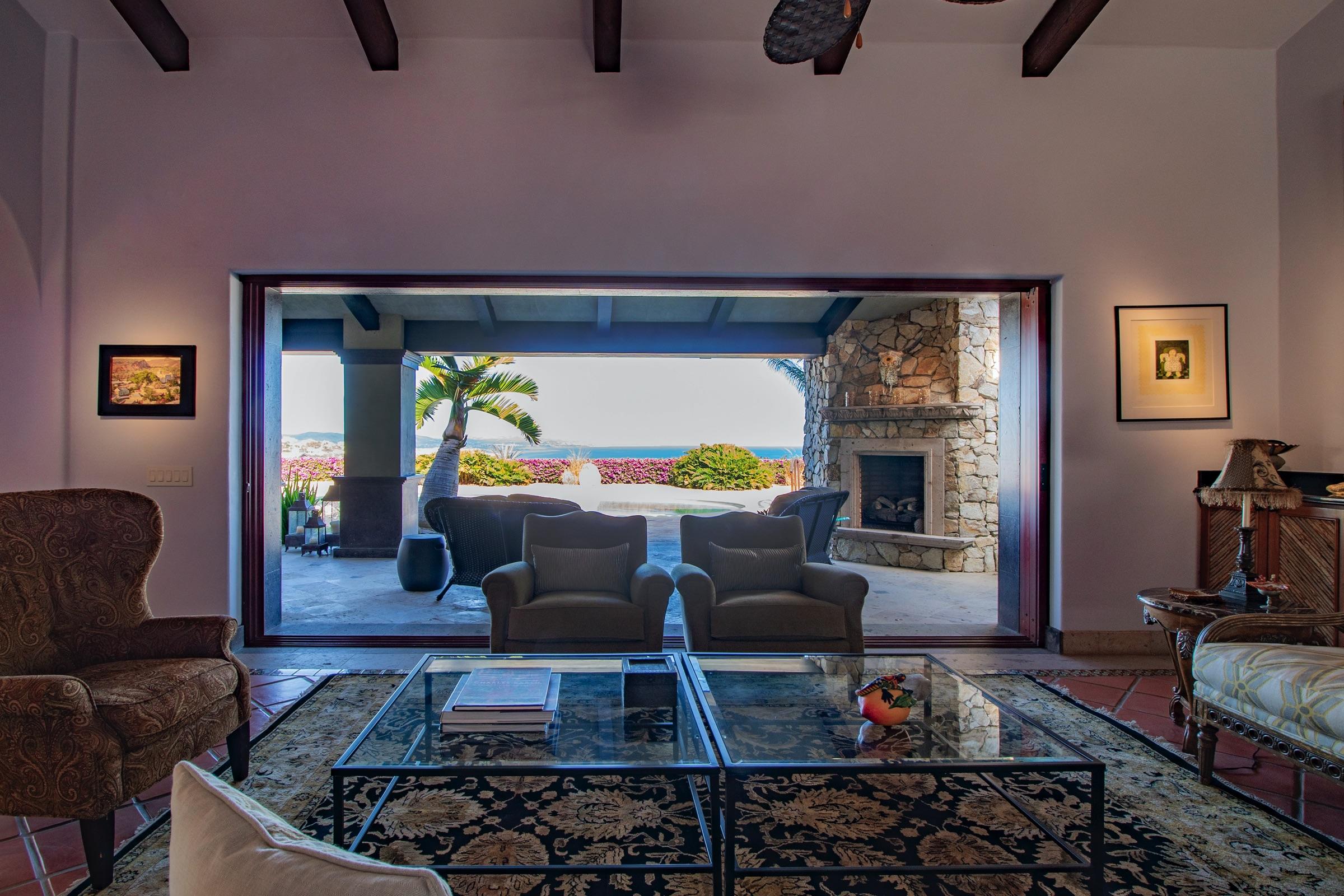 Walk into elevated panoramic views of the entire San Jose del Cabo coast line and its crashing waves. This single story home offers 4 bedroom/4.5 bathroom + two separate offices, many outdoor shaded areas, comfortable guest accommodations and lots of privacy. Casa Colinas 11 is in the easily accessible Colinas subdivision within Querencia, a luxury gated community with private golf and social club amenities. Easily golf cart to the beach club, a swimmable & surf beach and various restaurants all within the gated community. 10 Minutes to downtown San Jose and under 20 minutes to the International Airport.