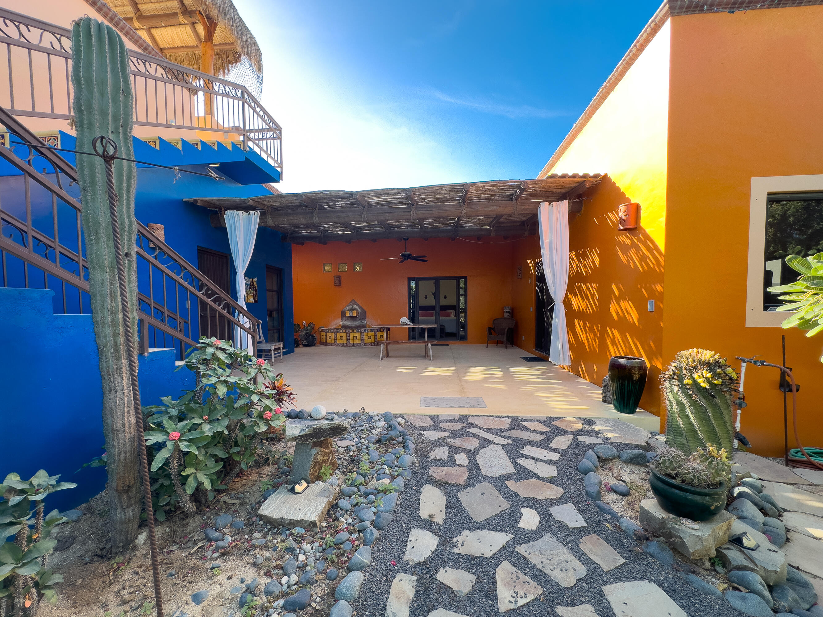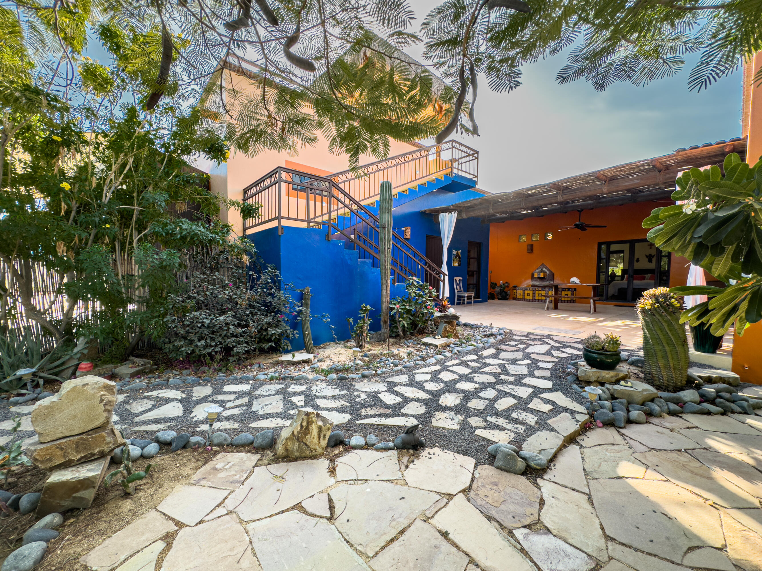 Casa Colorida is a thoughtfully designed East Cape residence that blends vibrant architecture with relaxed indoor-outdoor living. Set within lush gardens and stone pathways, the home features inviting courtyards, covered patios, and a rooftop terrace ideal for entertaining or quiet retreat. Interiors showcase handcrafted tilework, warm finishes, and comfortable living spaces filled with natural light. Located just minutes from the beach and local amenities, Casa Colorida offers a welcoming lifestyle for full-time living, vacation use, or rental potential in a tranquil coastal setting.