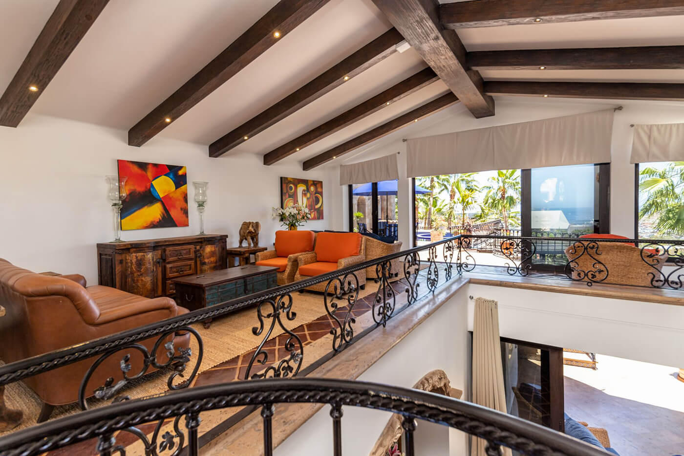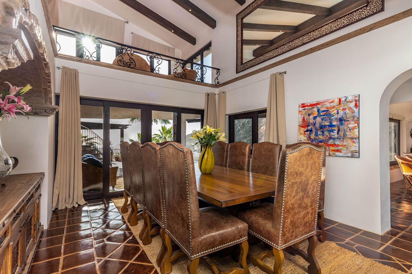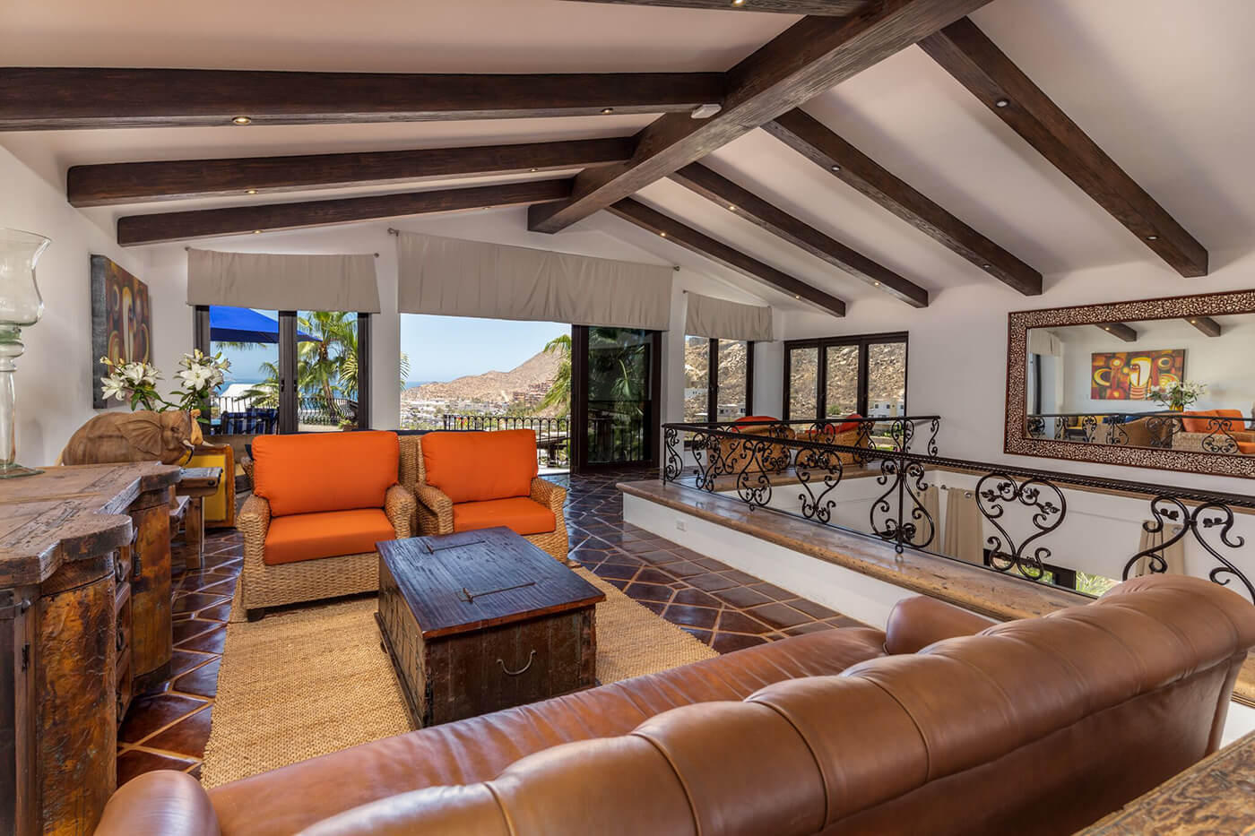 Perched on a knoll, at the end of a private lane, and above the Cabo San Lucas marina in one of Cabo’s most known and respected communities, El Pedregal, Casa Connie is a faithfully eclectic collection of intimate gathering places, sun-drenched pools, and shaded private gardens. Meticulously maintained, Casa Connie is a true move-in ready, turn-key listing, hard to find in any other offering in Pedregal. In the last 2 years, this property was completely gutted, renovated, and brought current including the installation of solar energy for all electricity, keeping monthly expenses at a bare minimum. This Spanish Colonial showpiece truly softens the divide over 3 distinct levels in the main building, and again in the private casita hidden within the cooling gardens. *SEE SUPPLEMENT