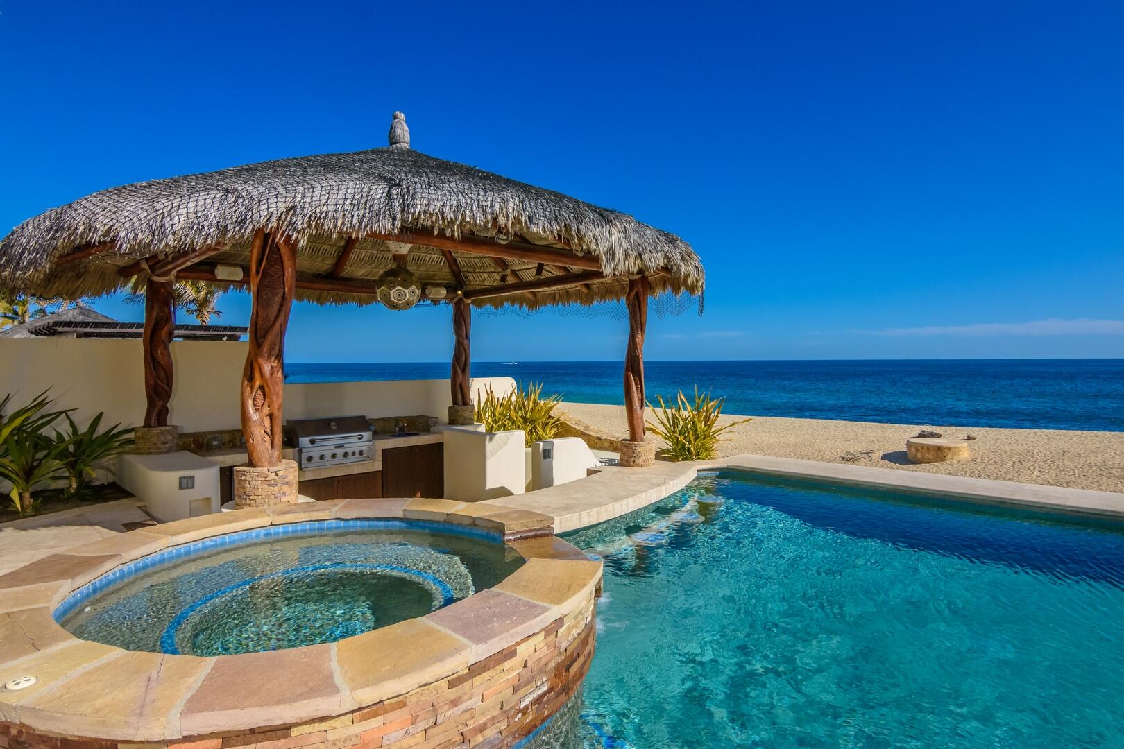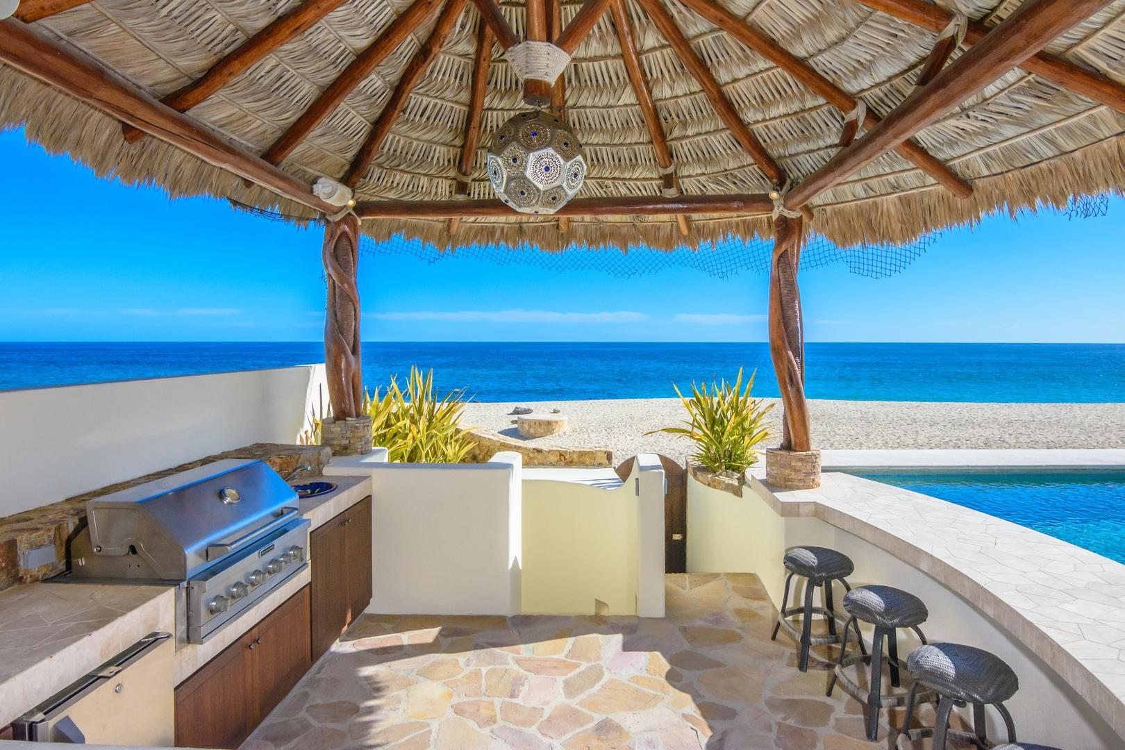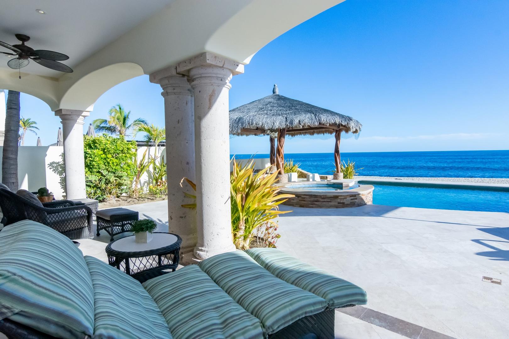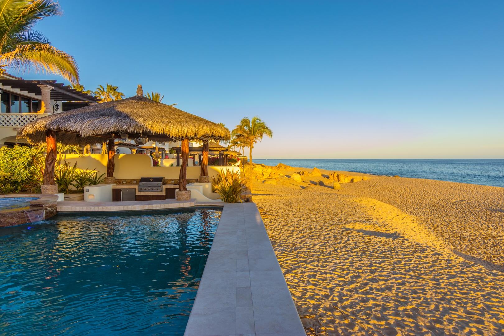 Oceanfront living at its finest! Set on a long stretch of sandy beach in the gated El Encanto de La Laguna community, watch the migrating whales at play in the Sea of Cortez from your own swimming pool. Enjoy moonrise over the water and a star-studded sky from your own cozy fire pit. Take long leisurely beach walks or paddle out on a paddle board or sea kayak. Casa Corazon del Mar is a truly custom oceanfront home with private, direct beach access and too many custom extras to mention. Fully upgraded and remodeled in 2015, this home enjoys four bedroom suites including two masters, an expansive pool patio terrace and upper level wrap around terrace. A swim up bar at a palapa covered pool side BBQ cook center provides an additional entertaining center for family and friends.