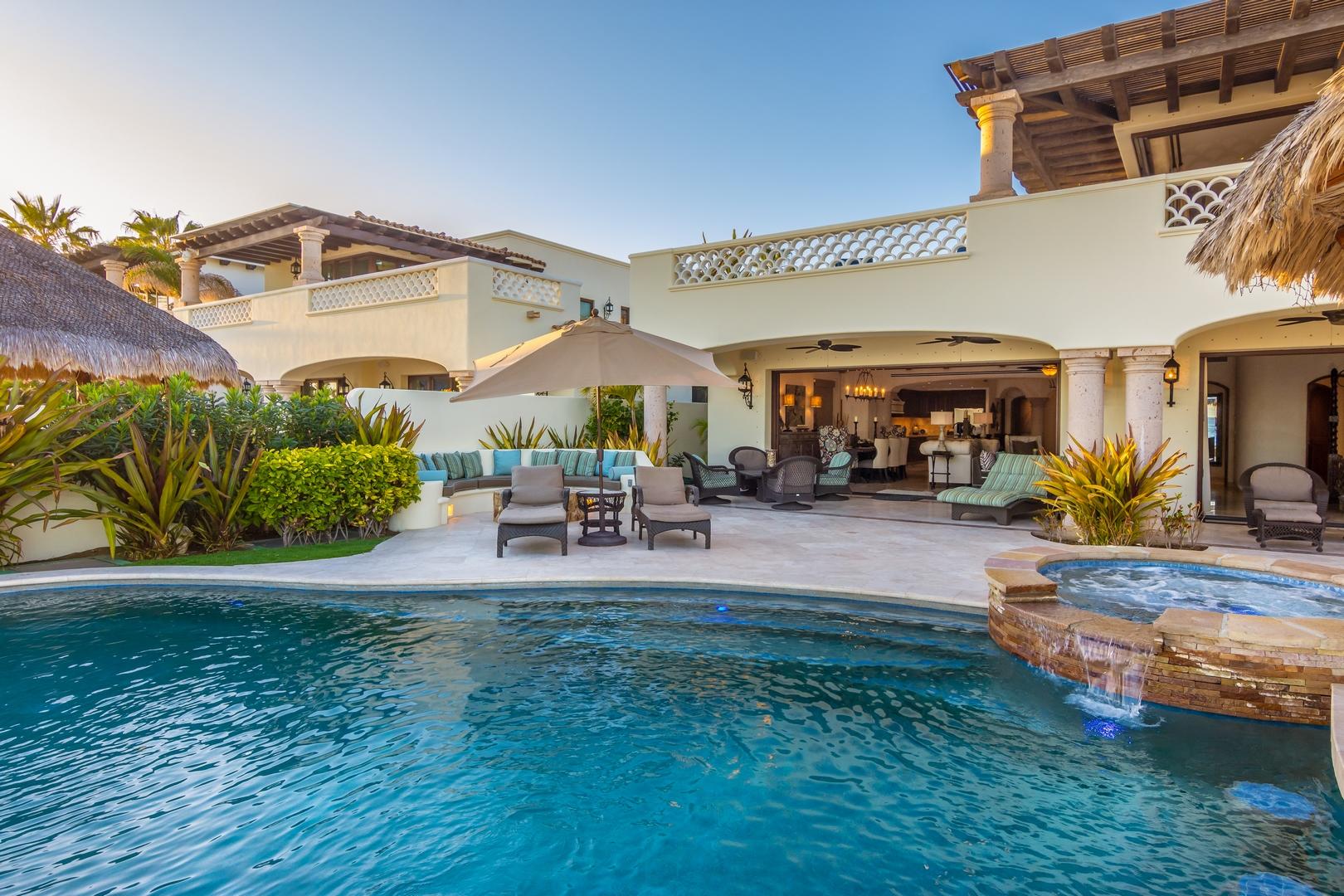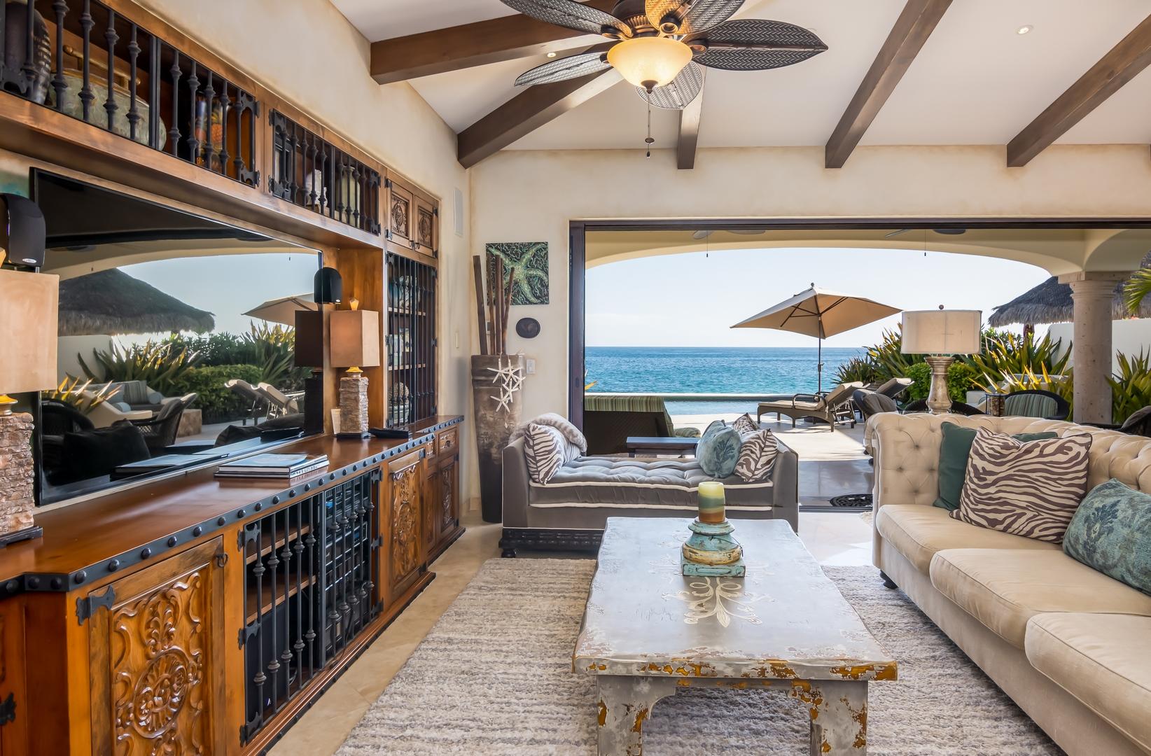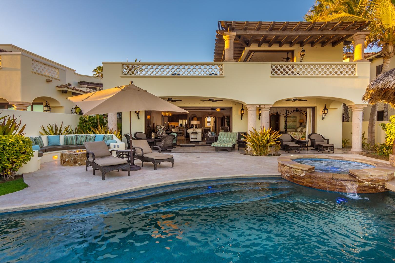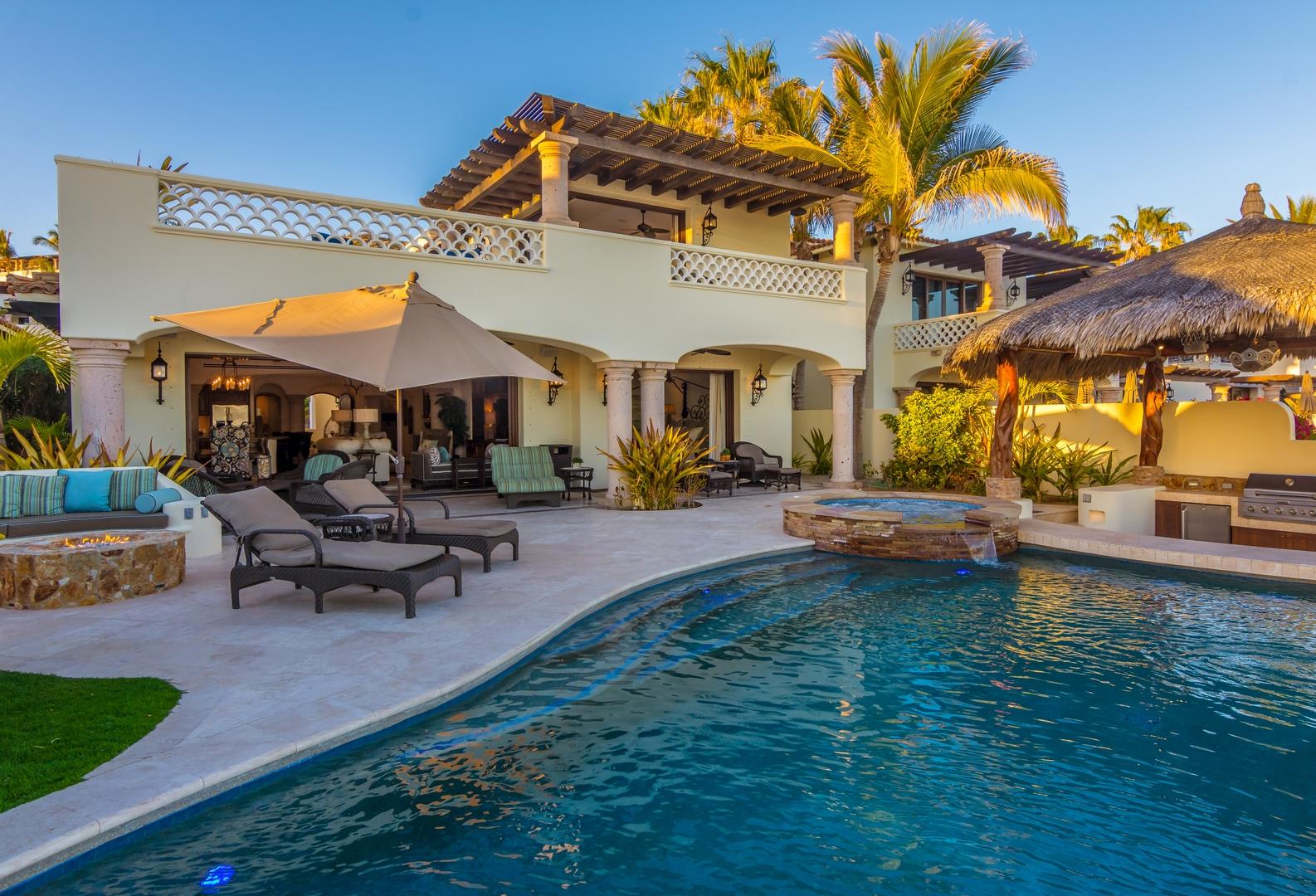 Oceanfront living at its finest! Set on a long stretch of sandy beach in the gated El Encanto de La Laguna community, watch the migrating whales at play in the Sea of Cortez from your own swimming pool. Enjoy moonrise over the water and a star-studded sky from your own cozy fire pit. Take long leisurely beach walks or paddle out on a paddle board or sea kayak. Casa Corazon del Mar is a truly custom oceanfront home with private, direct beach access and too many custom extras to mention. Fully upgraded and remodeled in 2015, this home enjoys four bedroom suites including two masters, an expansive pool patio terrace and upper level wrap around terrace. A swim up bar at a palapa covered pool side BBQ cook center provides an additional entertaining center for family and friends.