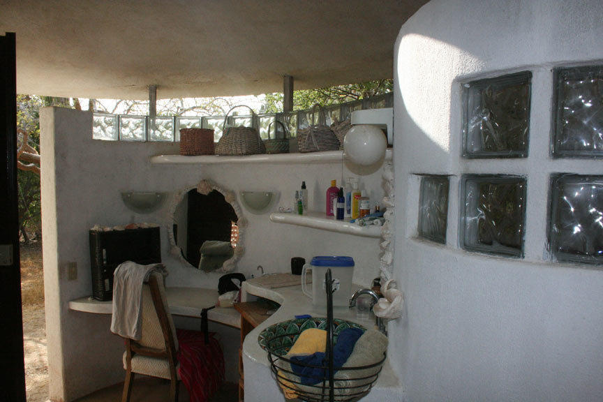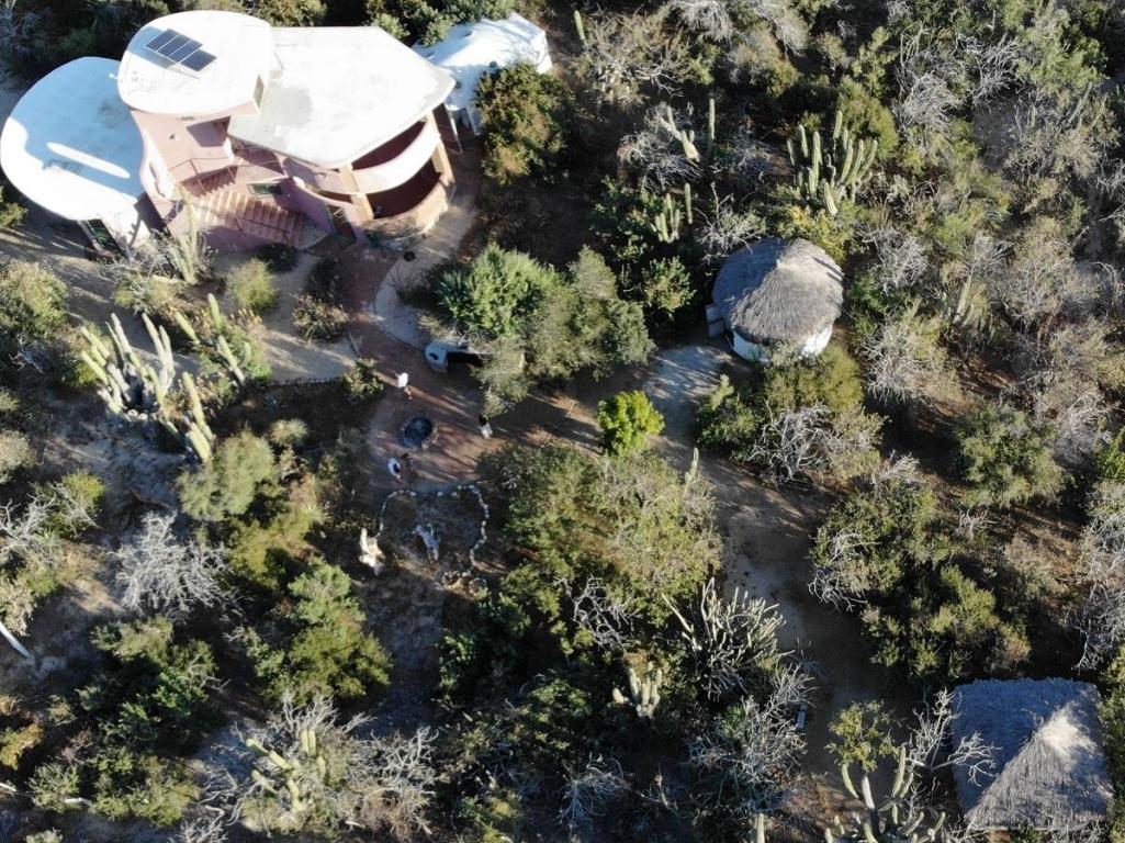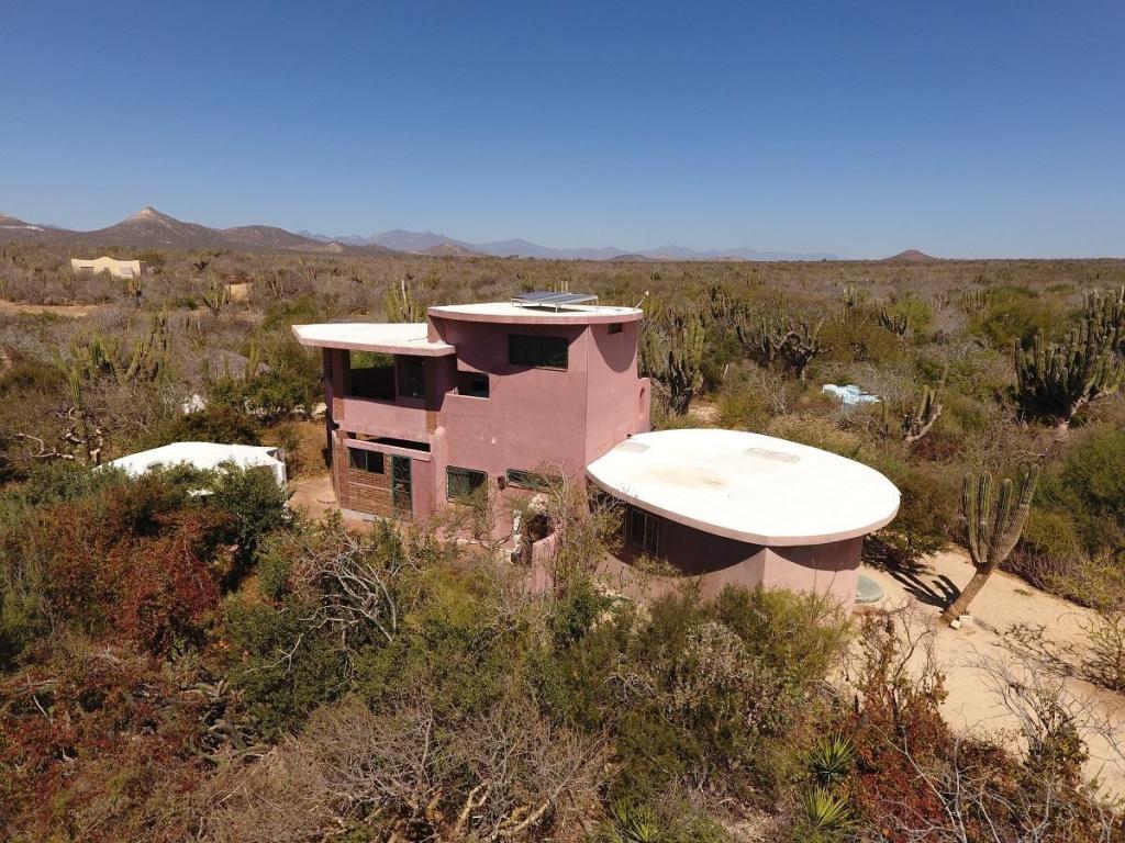 A GEM IN A SUPERB SETTING! Live in nature in a small, friendly, English speaking community where a beautiful desert meets one of the finest beaches on the Sea of Cortez. Lush desert garden and unique house with views of mountains, sea, and spectacular sunrises and sunsets. The house is on one acre of land and is an off grid/solar home which has been designed for indoor/outdoor living including a brick patio with fire pit and outdoor kitchen area. There are 3 bedrooms. 2 are separate bungalows that could be rented. The Master Suite upstairs has a built in double bed on the large terrace living/sleeping area with great sunset views and ocean breezes, and a small bed/office indoors designed so you see sunrise over the ocean without lifting