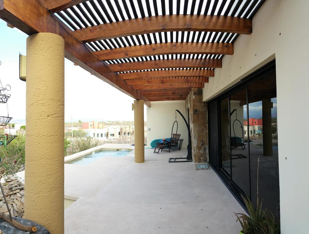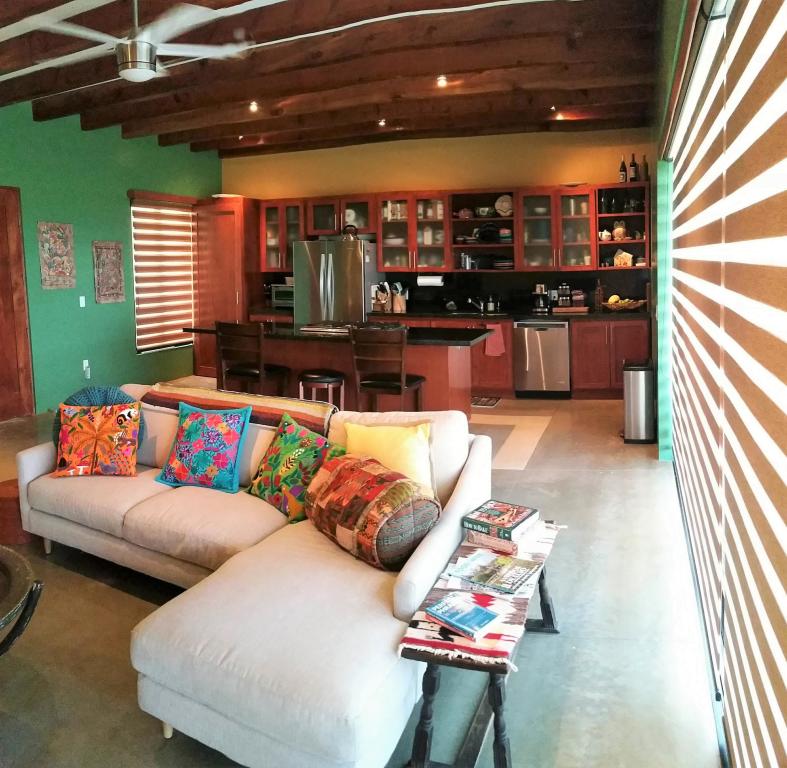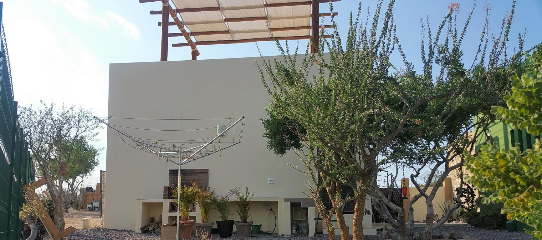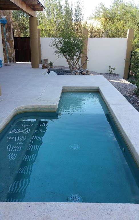 Welcome to Casa de Paz! This lovely home, located on a hill with views of the Bay and mountains, is just what its name implies. Stone feature walls, fireplace, plunge pool with lounger area, fully-walled and fenced, many native plants…all these contribute to the sense of relaxation, enjoyment and peace. Both bathrooms feature interior garden spaces, and the sliding doors in the great room roll back into the walls to combine the interior and exterior spaces seamlessly. A modern and well-equipped kitchen, a/c throughout, heated plunge pool/hot tub, double + garage, outdoor grill area, lots of parking, all make this home the perfect Baja get-away.