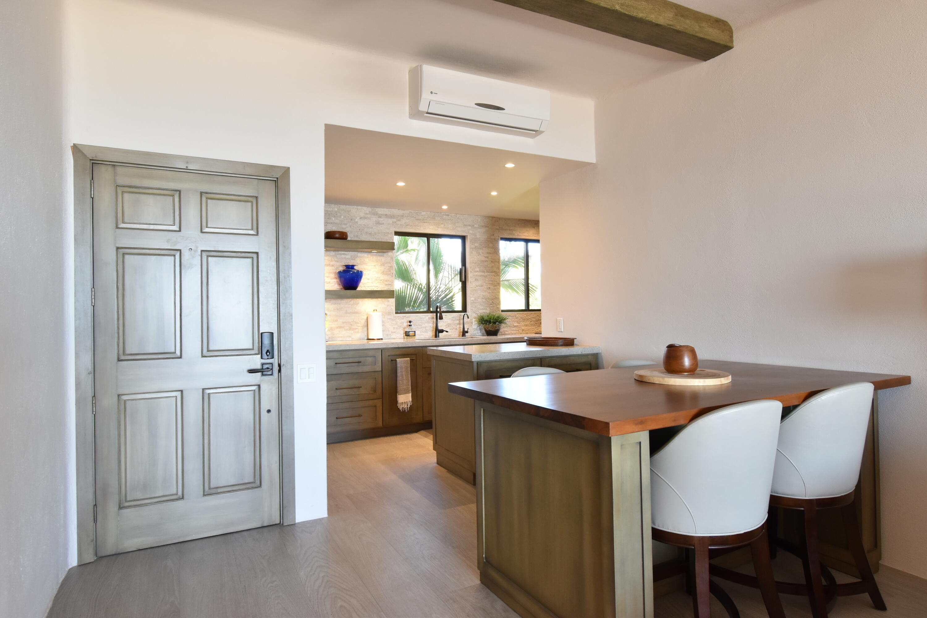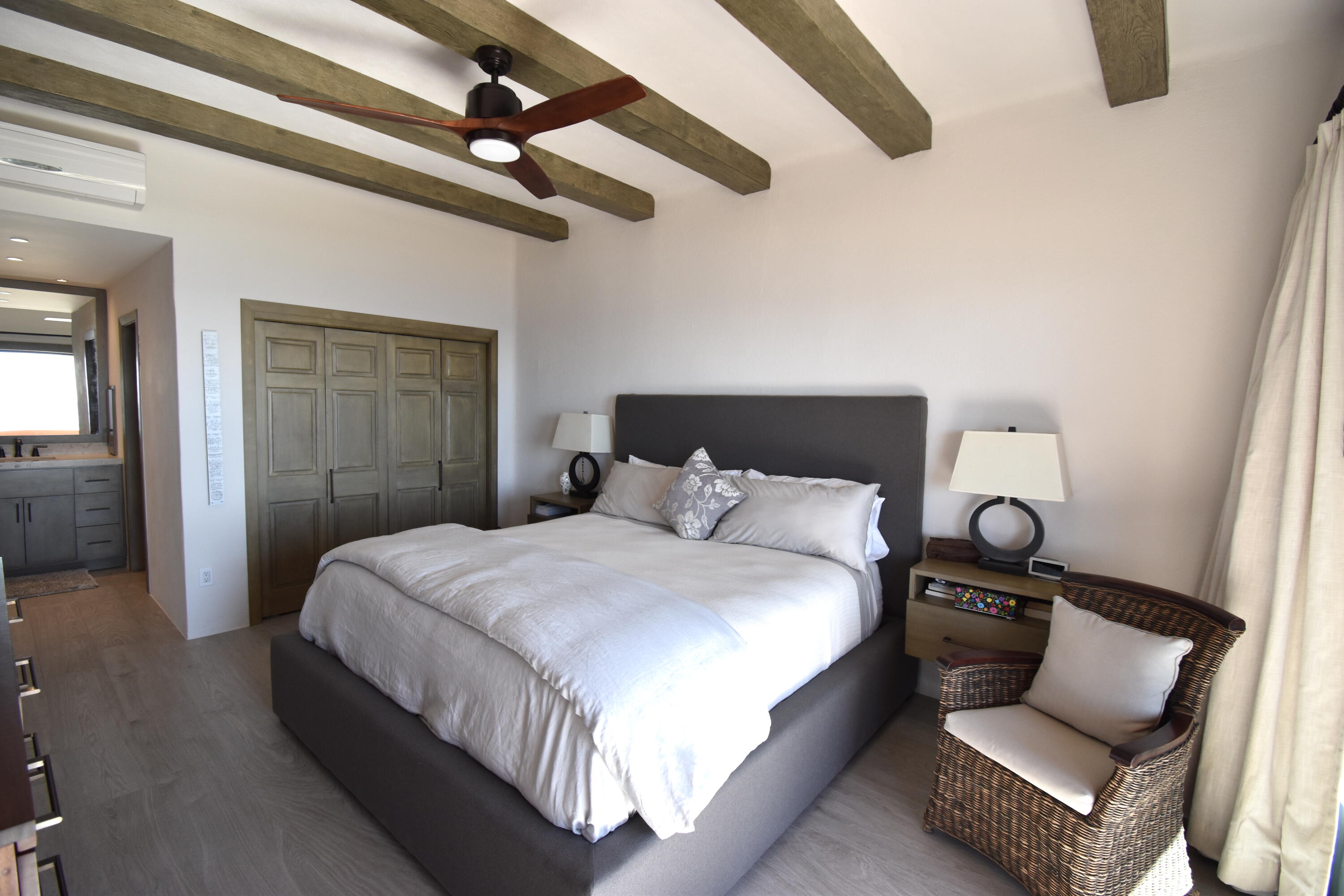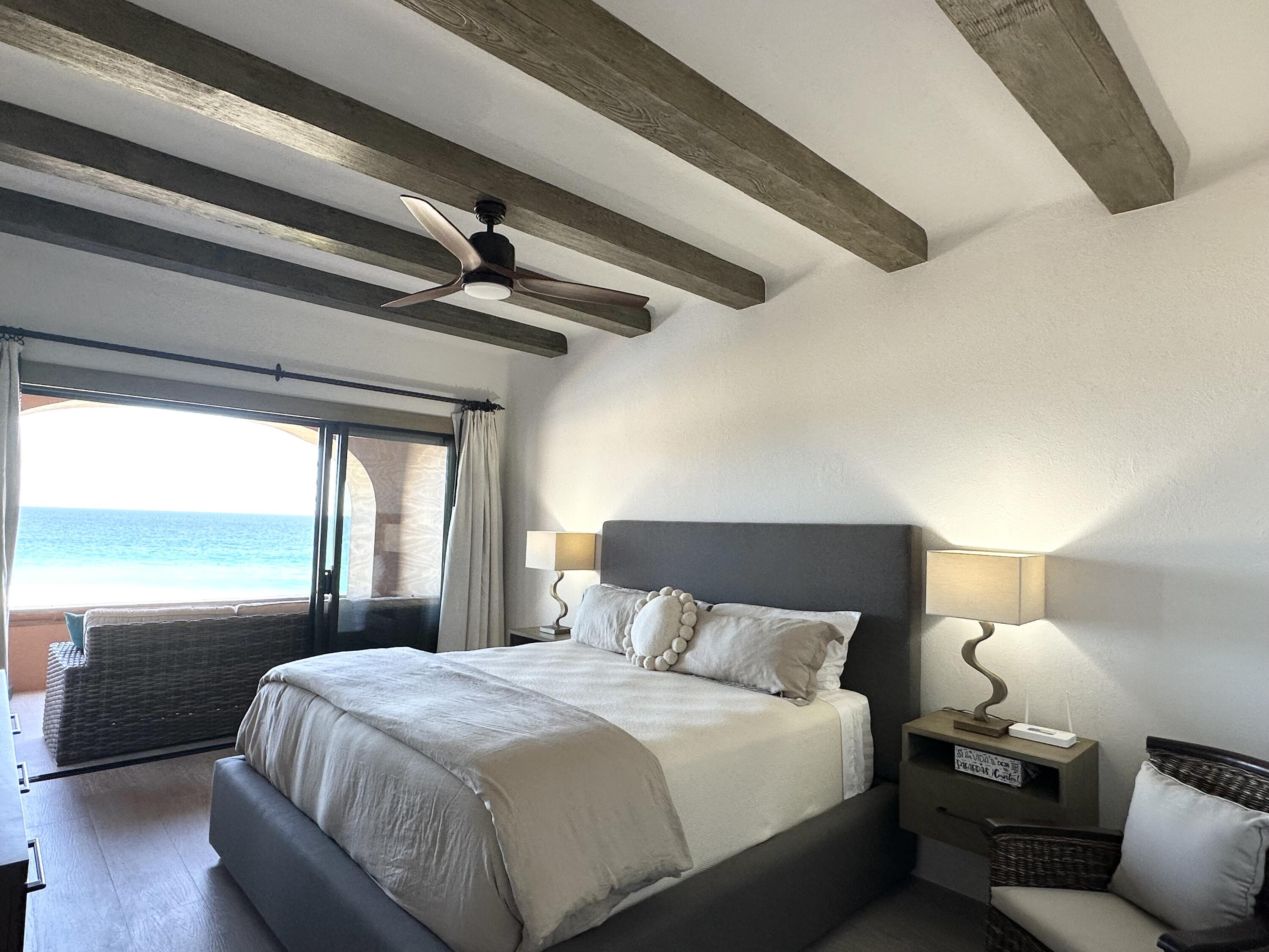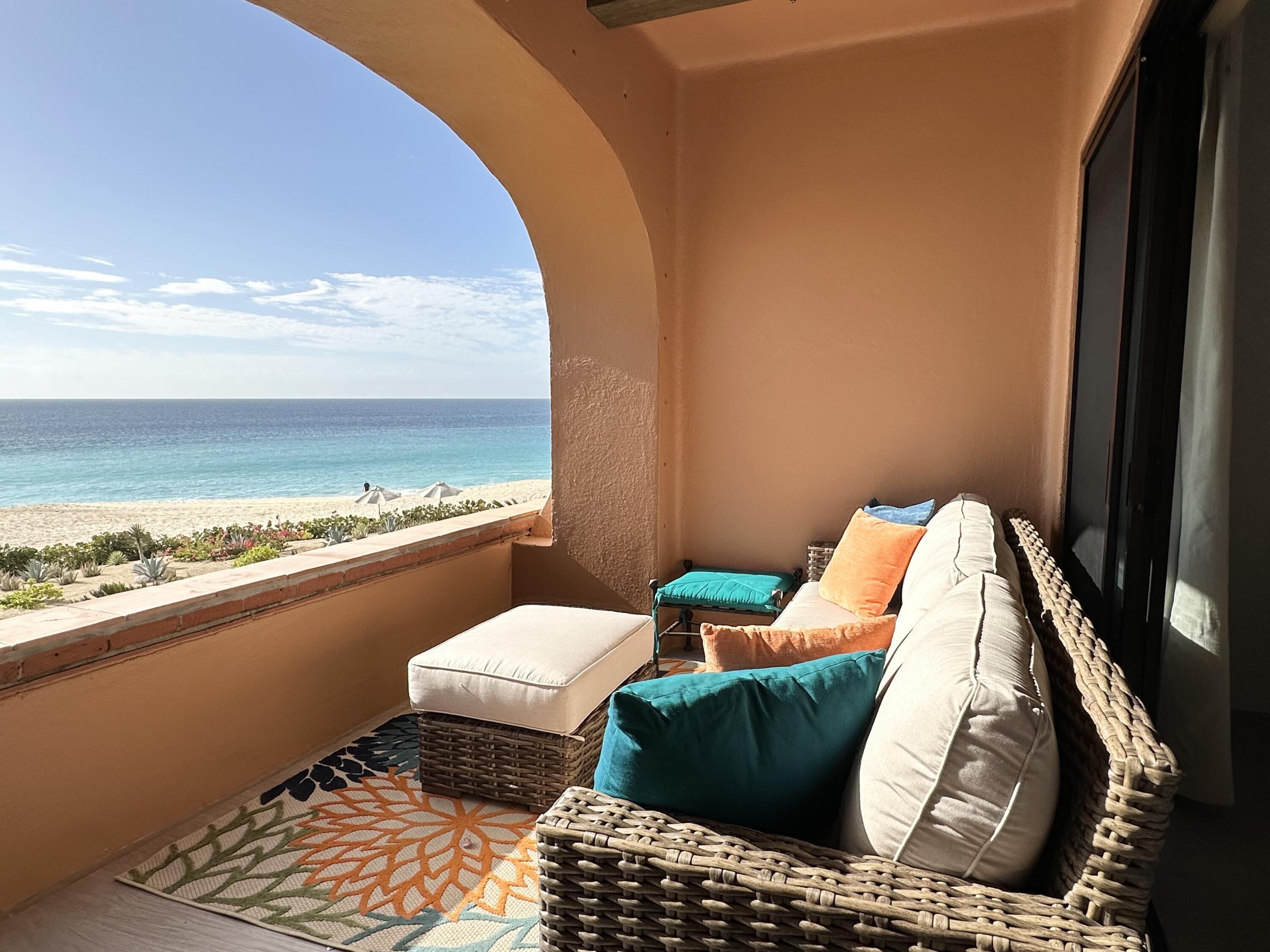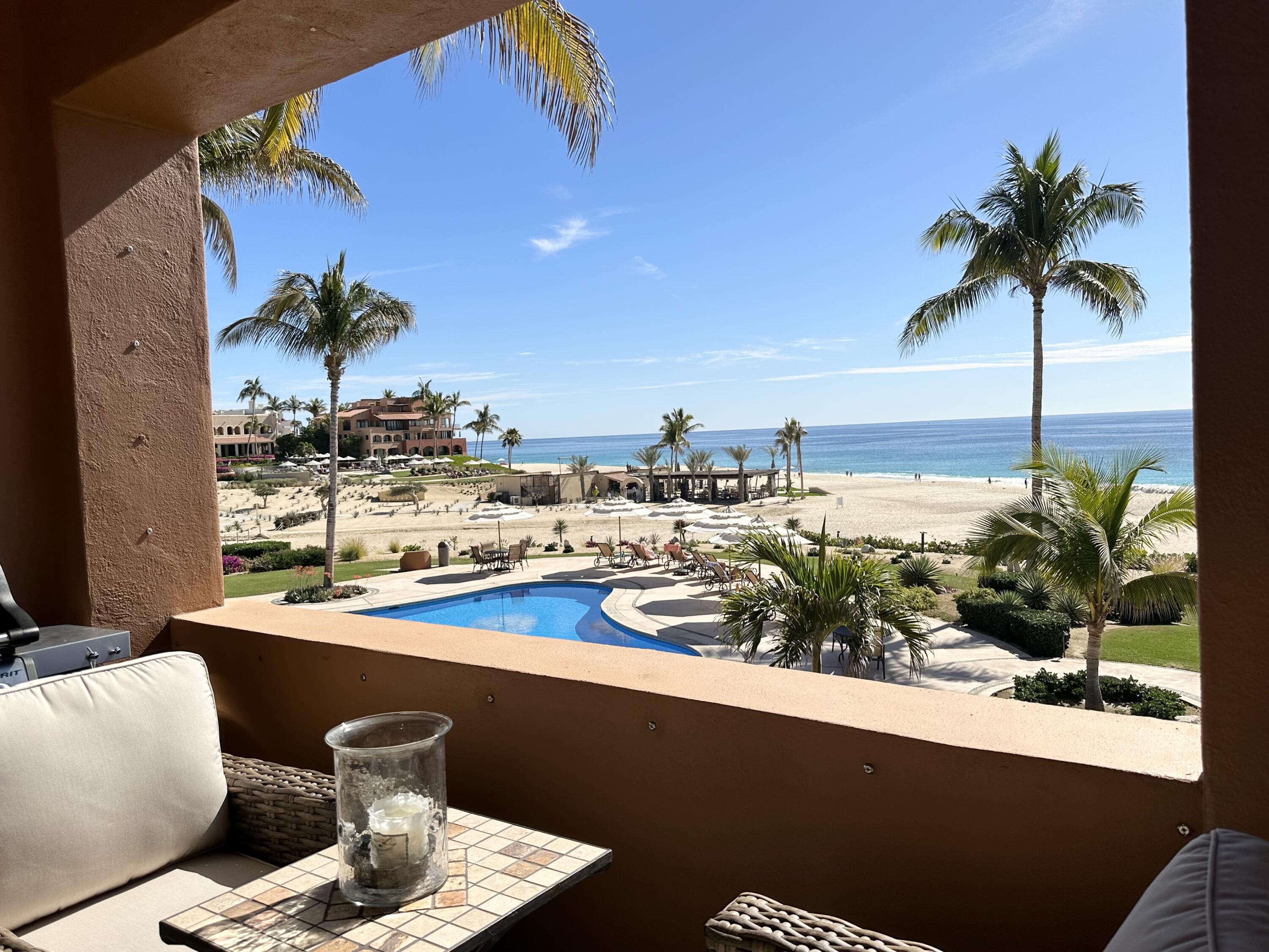 The Oceanfront Estrella 201 is a one-of-a-kind living experience. The fully renovated property boasts a modern and contemporary design and offers breathtaking views of the Sea of Cortes. The large living and dining areas, as well as both bedrooms, open onto a spacious terrace where you can watch whales and dolphins, enjoy beautiful sunrises and take walks on the beach to Chileno Bay or El Dorado. Residents of Casa del Mar and Zoetry Resort & Spa have access to amenities like a beach club, 7 pools, 4 tennis courts, a pickle ball court, fire pits, 3 restaurants, a sports bar, a swim-up bar, gym and a spa. Additionally, there is a separate garage available for purchase for $46,000. This is the perfect blend of relaxation and adventure with stunning views and luxurious amenities.