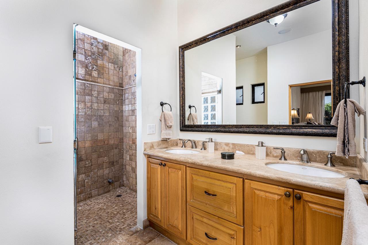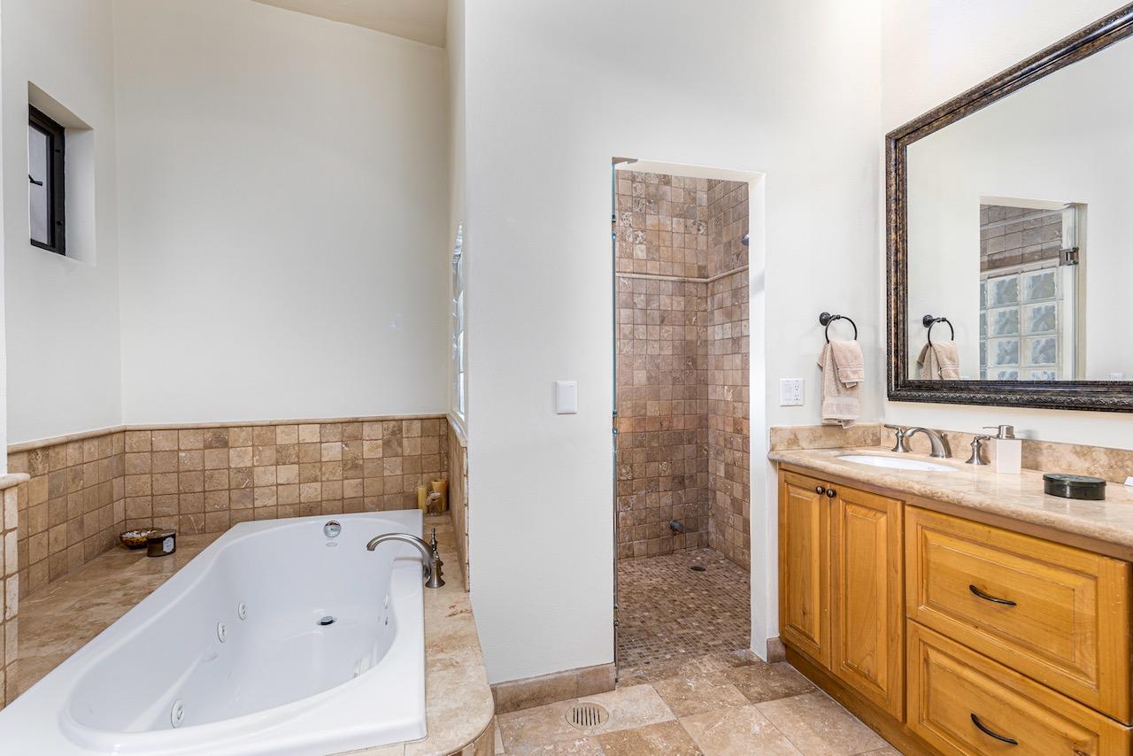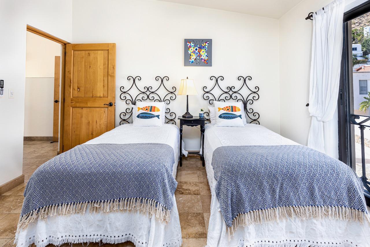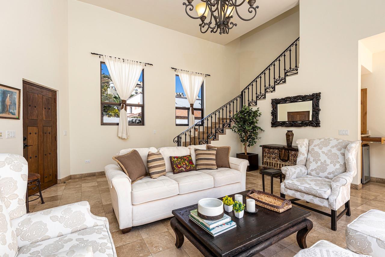 Located on a corner lot, Casa Dos Fuentes welcomes you walking through the front door with a double height ceiling and lots of natural light. This 4 Bedroom 4 bath home is located in the gated community of Pedregal de Cabo San Lucas. Living, dining, and master bedroom open up to the patio offering an endless pool jet system and outdoor lounge chair perfect to enjoy the sun.There is an upper level with 2 bedrooms and a second living space. 2 car garage. Walking distance to Cabo San Lucas Marina and restaurants. Can’t miss it!