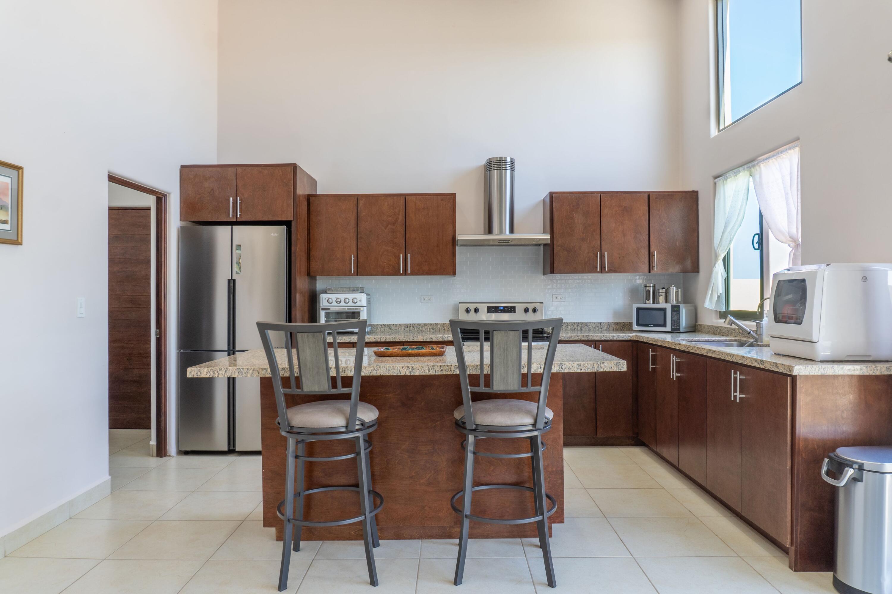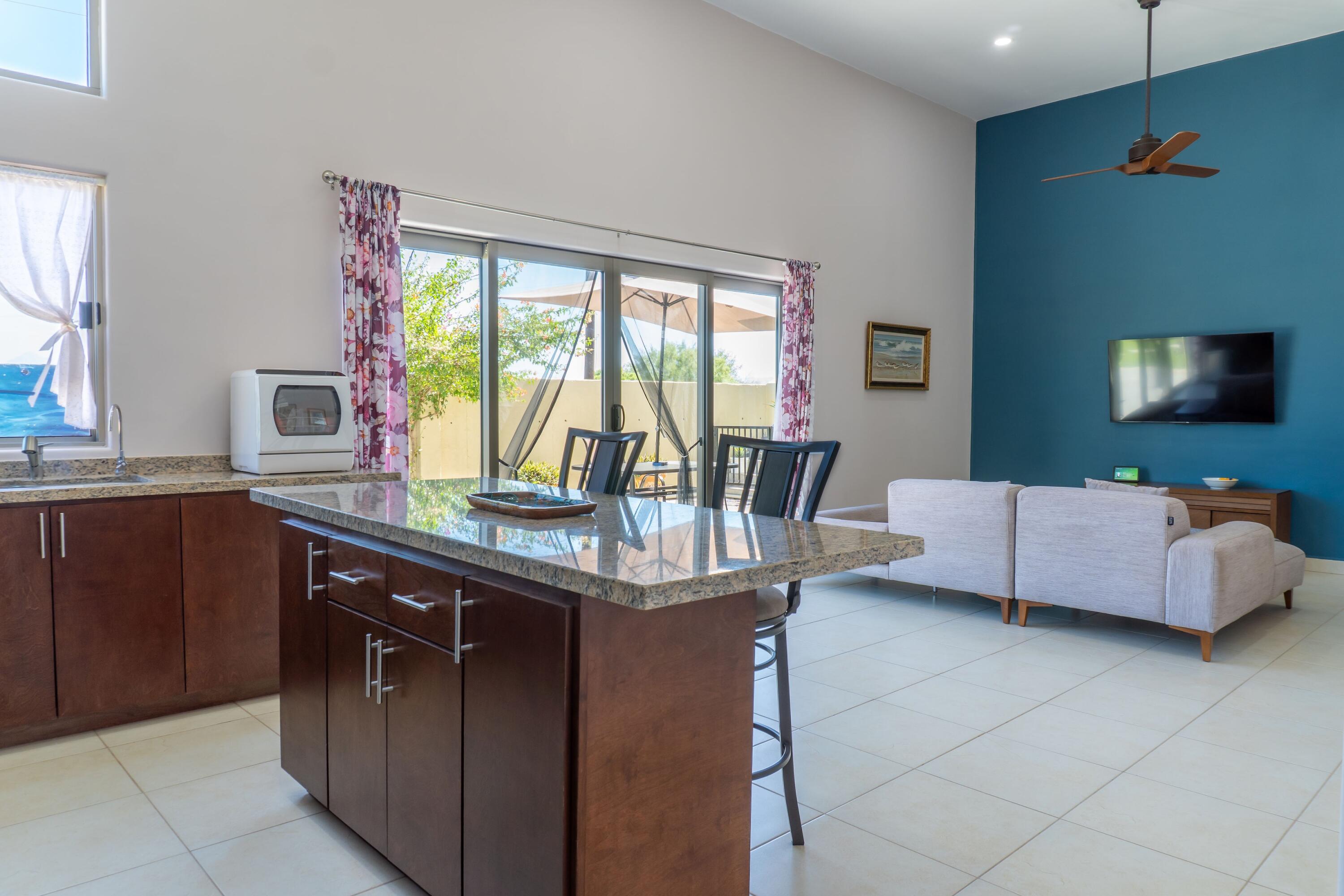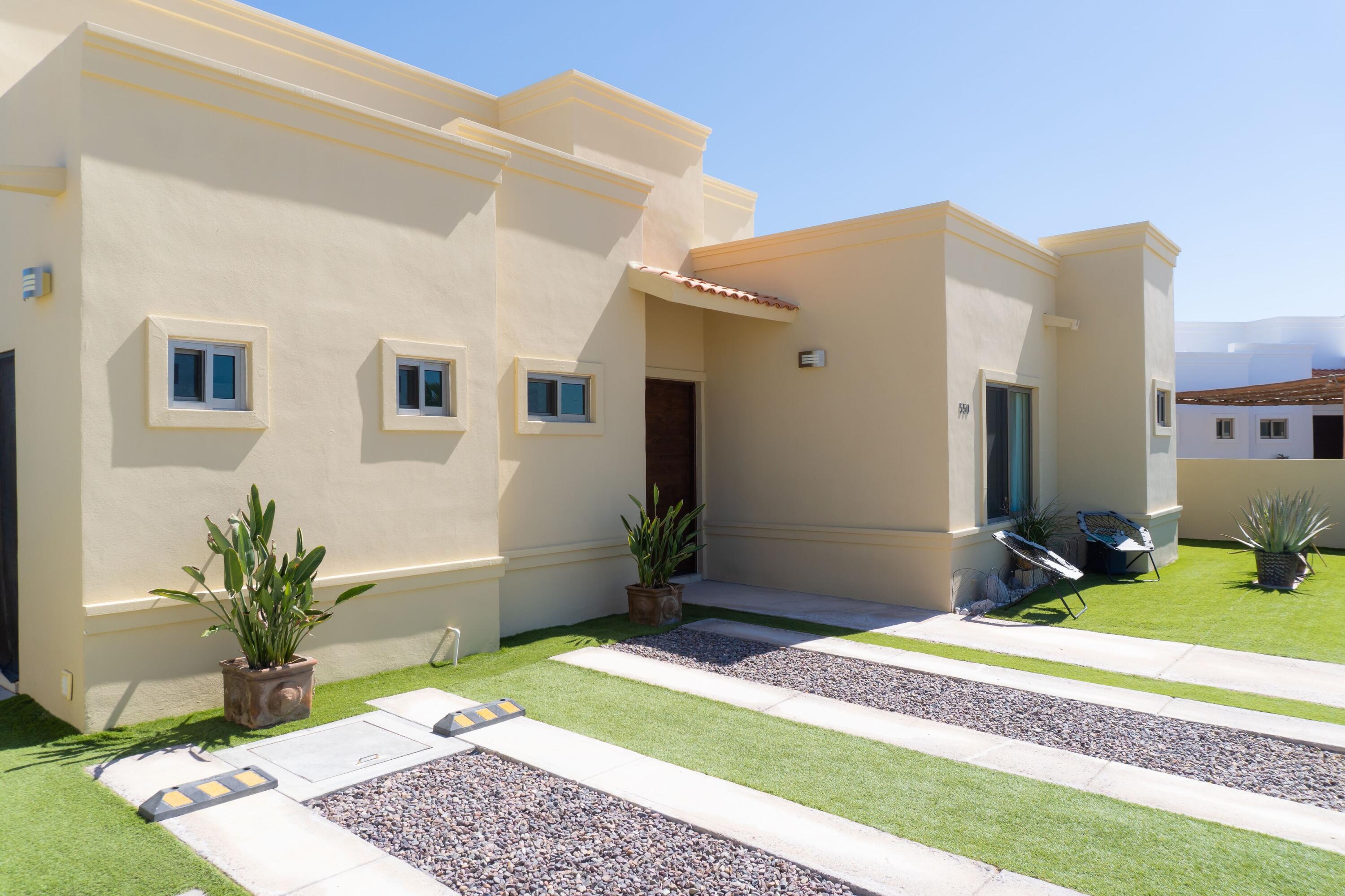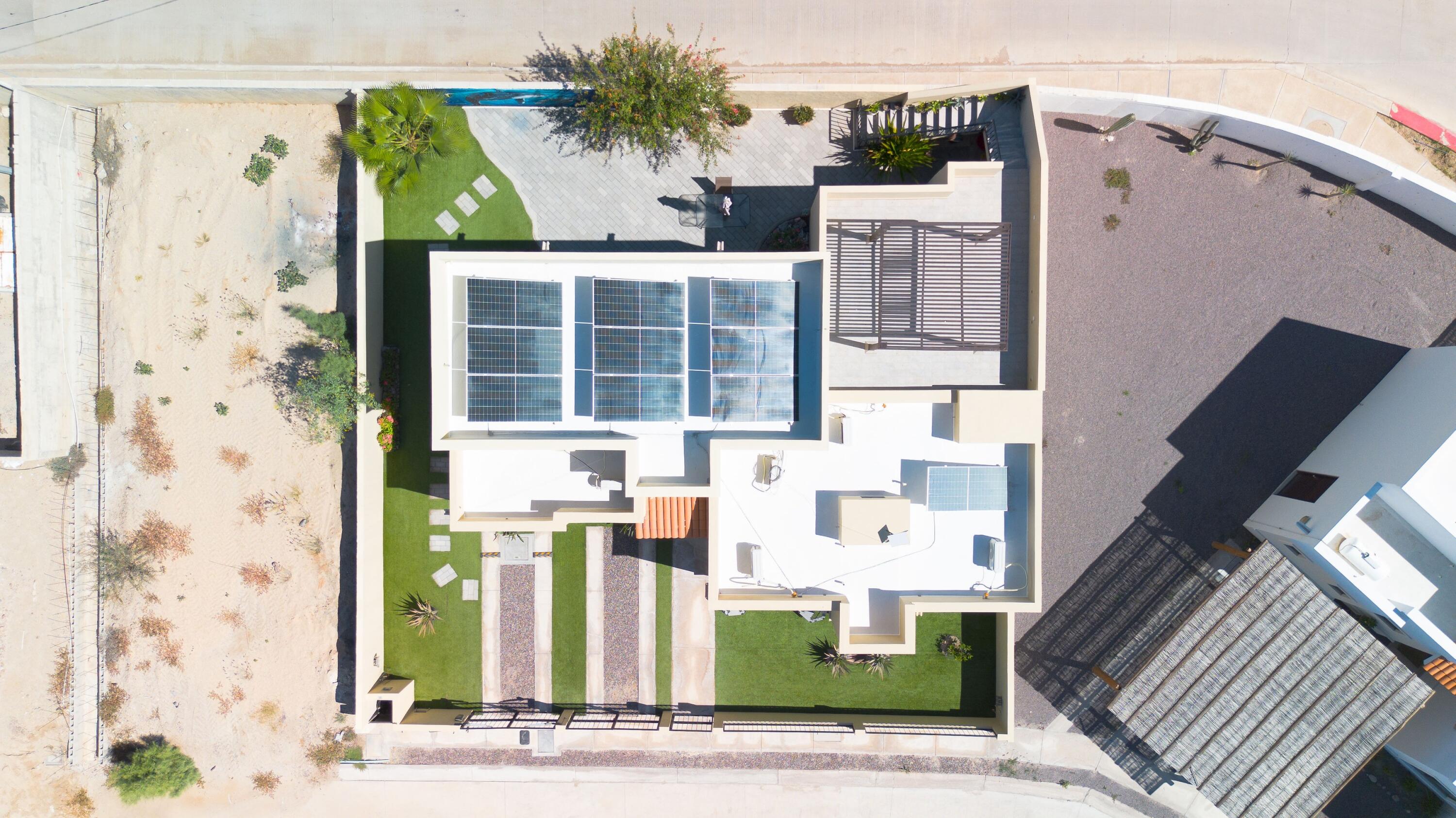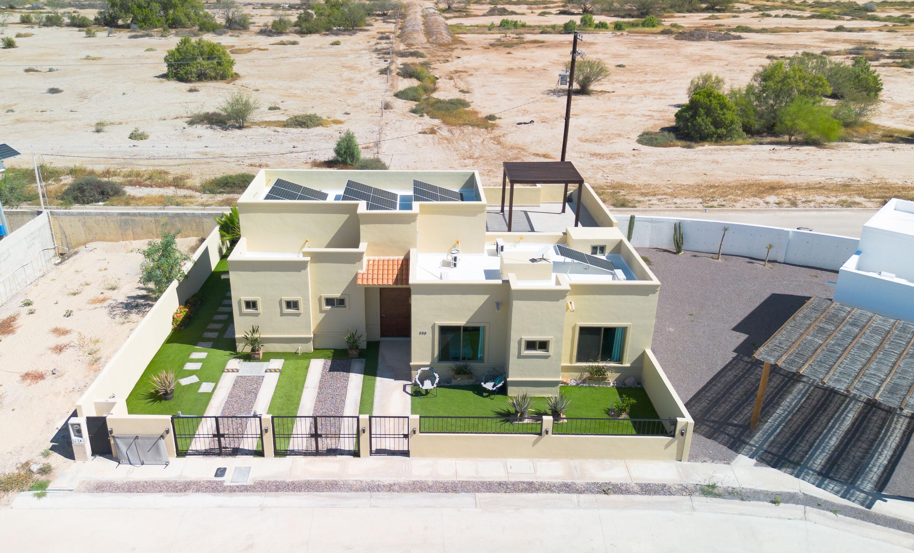 Casa Gracy – Stylish Single-Level Living in a Gated CommunityWelcome to this beautifully designed 3-bedroom, 3.5-bath home, located in the desirable gated community of Portobello. This single-level residence combines modern comfort, thoughtful upgrades, and the best of Baja outdoor living. Step inside to a bright open-concept living area featuring granite countertops, a large kitchen island, and plenty of storage The home is equipped with a whole-house water filtration system, water softener, and reverse osmosis at the kitchen sink for pure, convenient living.Enjoy efficient comfort year-round with five mini-splits, three of which also provide heat, and a seamless solar and electrical system that keeps energy costs low.