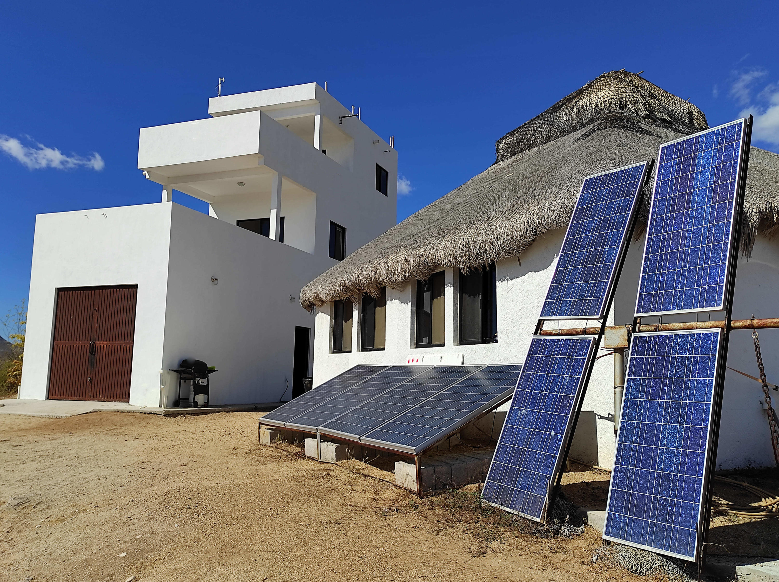 The best priced property in Zacatitos! In the first level we can find one bedroom, a bathroom, and a storage that can be used as garage if needed. The home features 3 levels of bedrooms, the second and third level enjoy beautiful ocean views from the terraces, the upper bedrooms have fully functional bathrooms but they need a little work for privacy. In the palapa we can find all the kitchen installation, the space can fit a livingroom and dining, there is a full bathroom that needs to be completed, all the stuff is already there, just need to be installed. You have a 10,000 liter water tank and enough solar panels to light up the house. and propane tank. The property potential is perfect for rentals, just need a little love, is a white canvas to create something phenomenal.