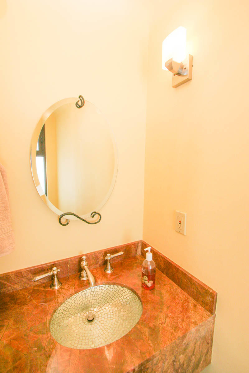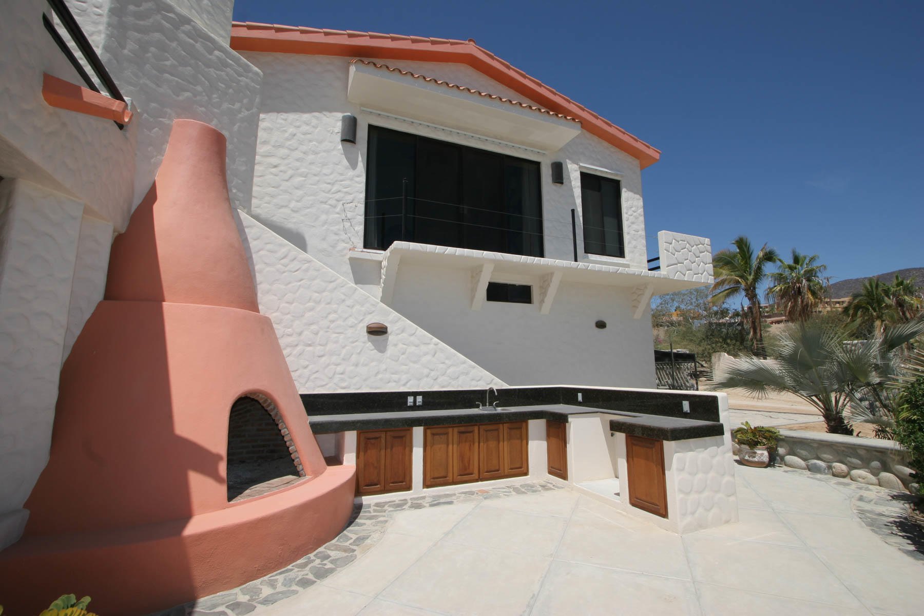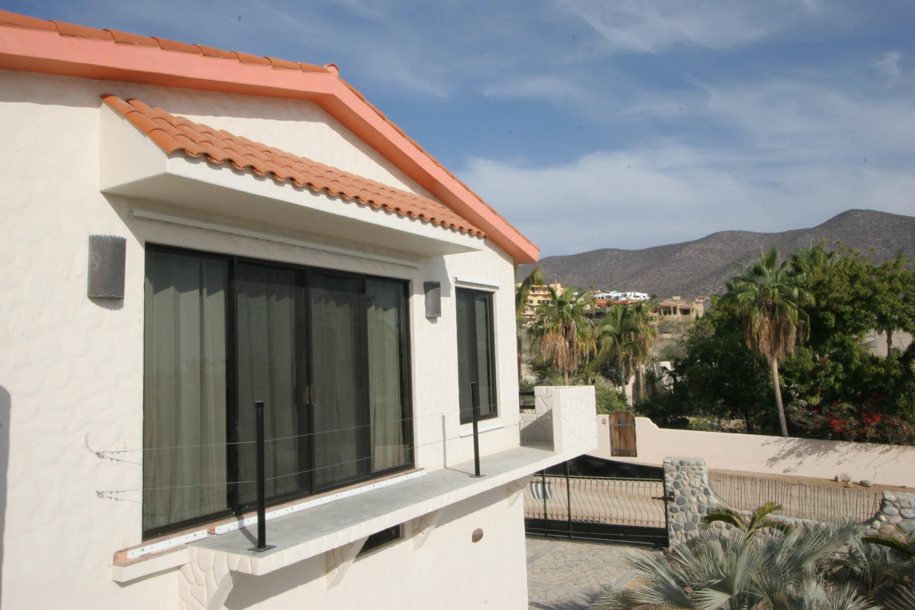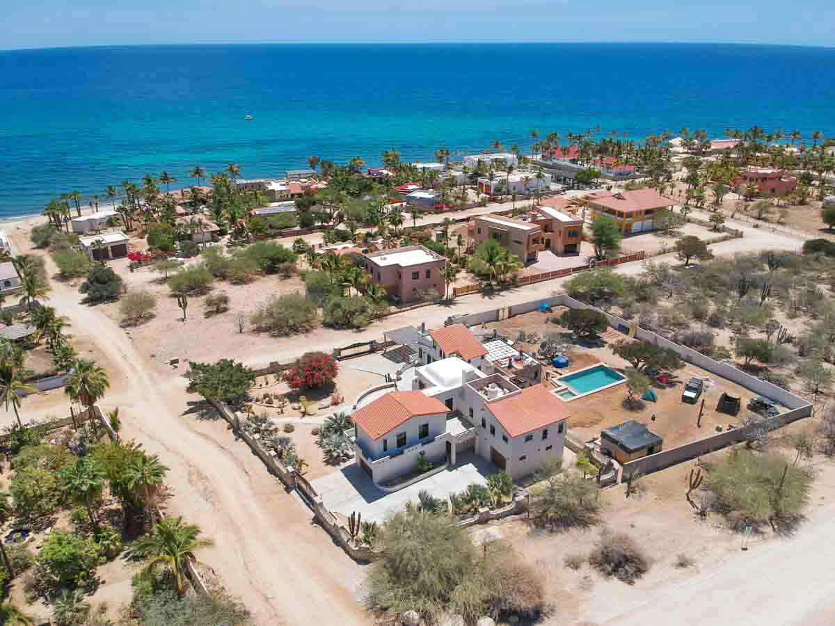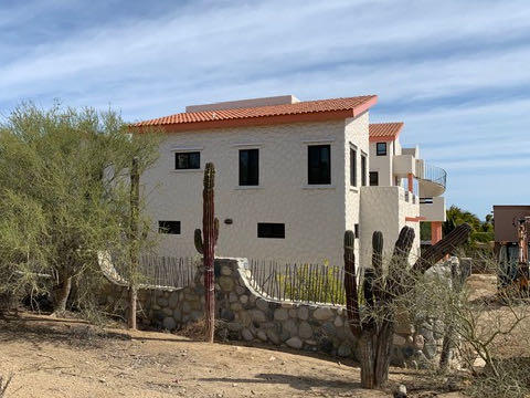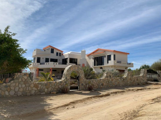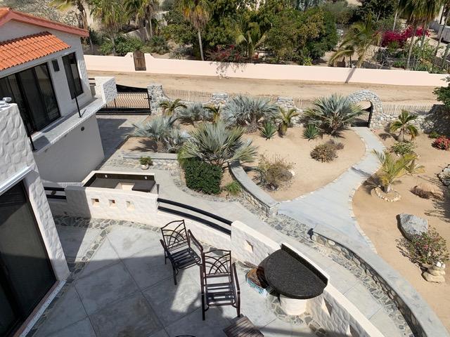 This beautifully designed home brims with Mexican charm and elegance. The hand-laid brick boveda and large fireplace are a couple of the architectural elements that make this property so special. Located just two blocks from the beach in the desirable Agua de La Costa neighborhood, the location offers the rare combination of proximity to the beach and a view of the ocean. The amount of covered and secure garage space will thrill anyone who has lots of toys or who wants to enjoy time working in their own shop. The first level features a charming studio with its own garage and laundry facilities that can generate rental income without disrupting your privacy. Upstairs, there are two guest bedrooms with private entrances and a shared bath, a large kitchen, living room and master bedroom with