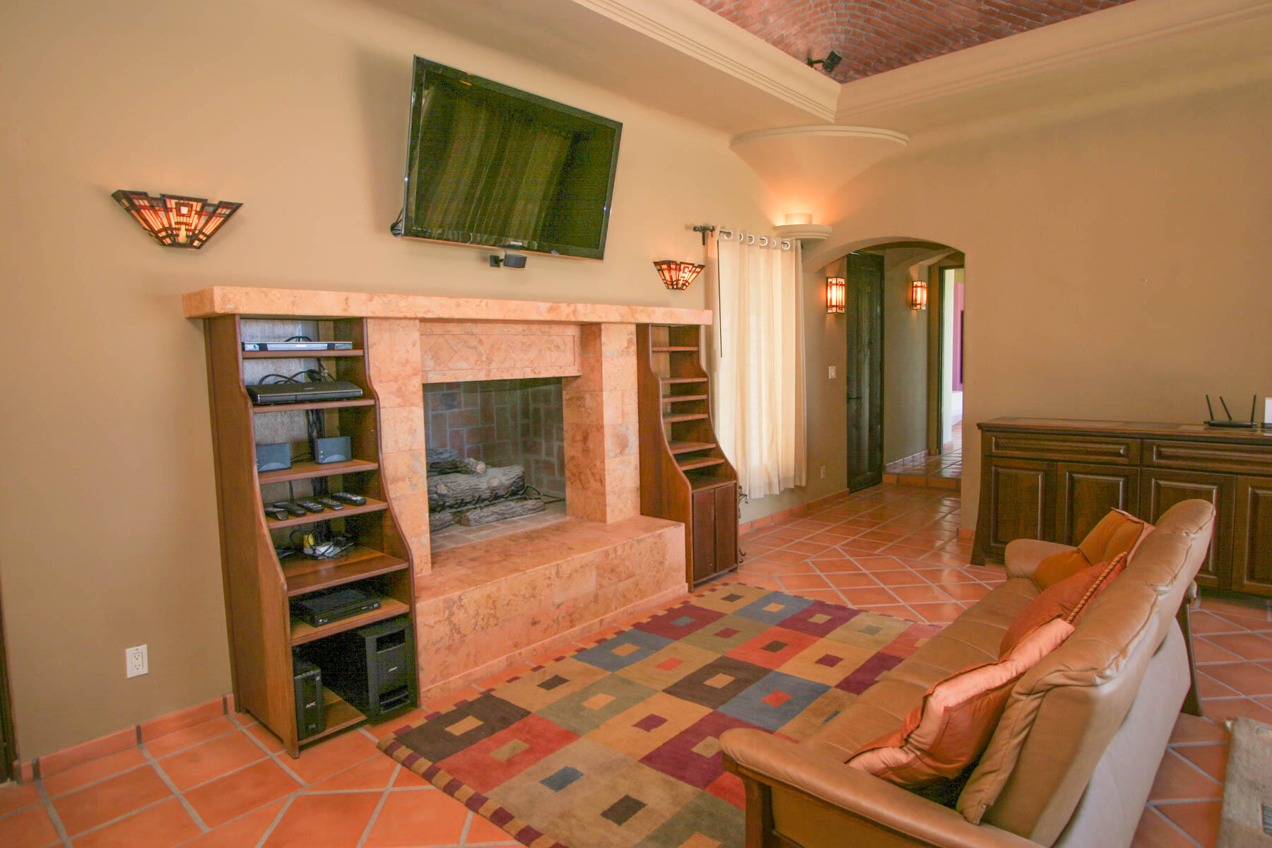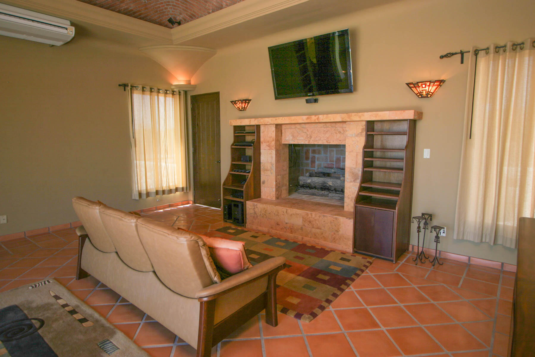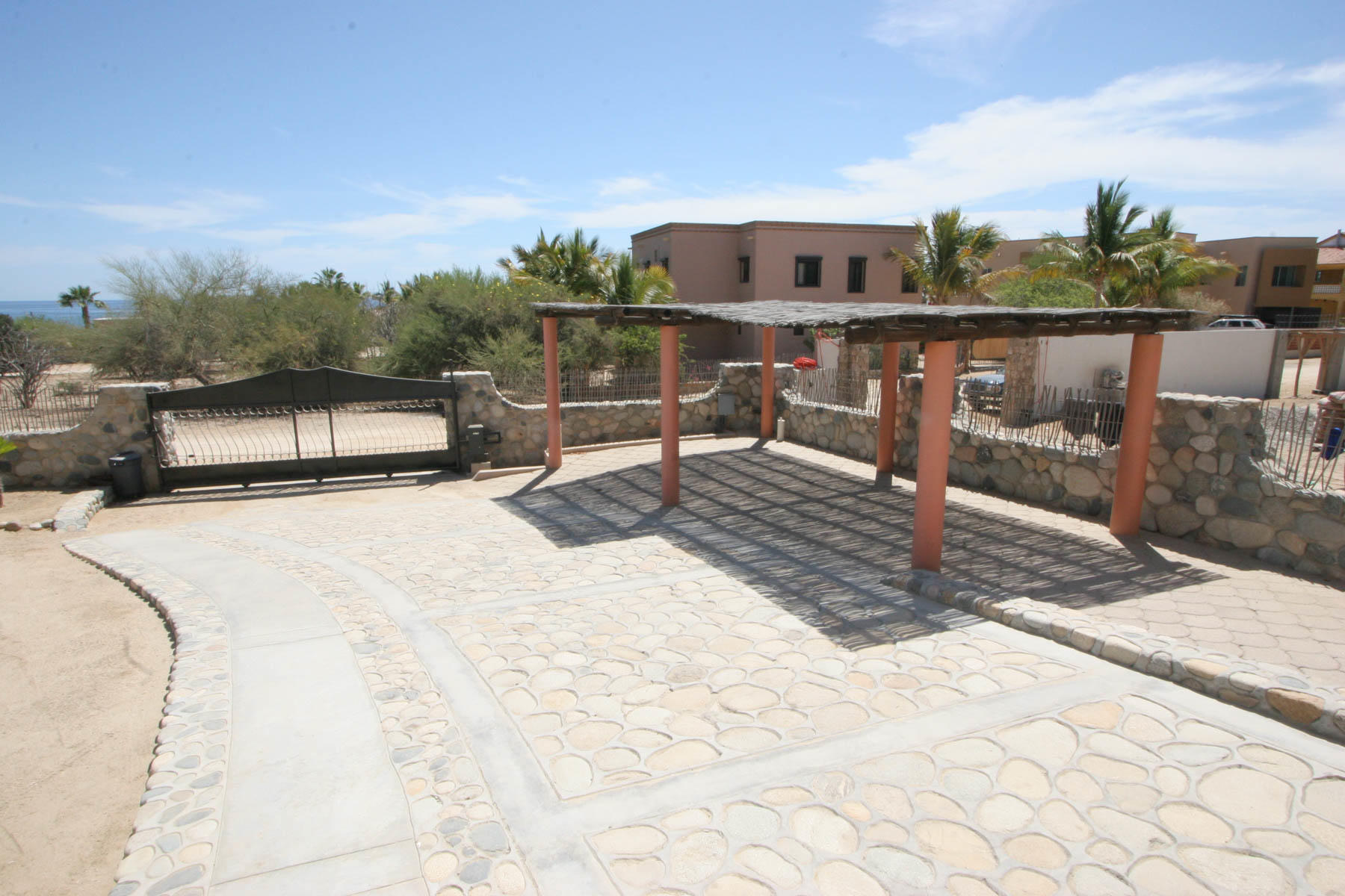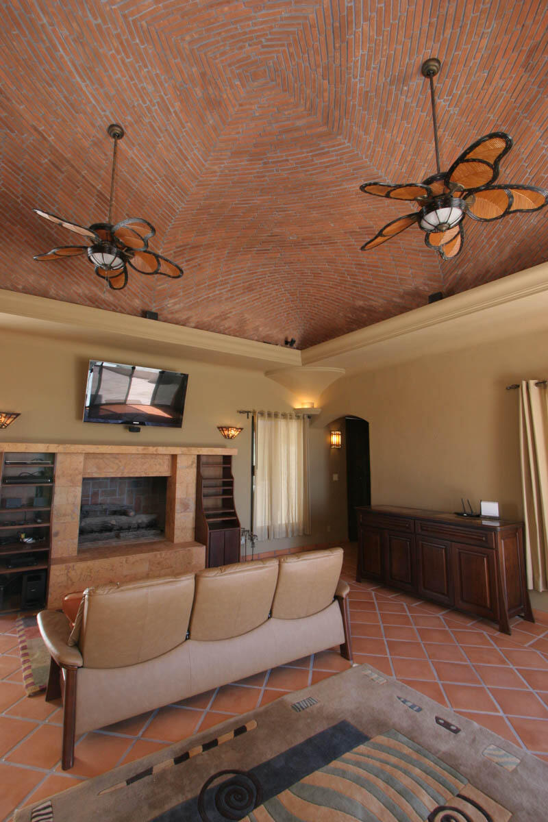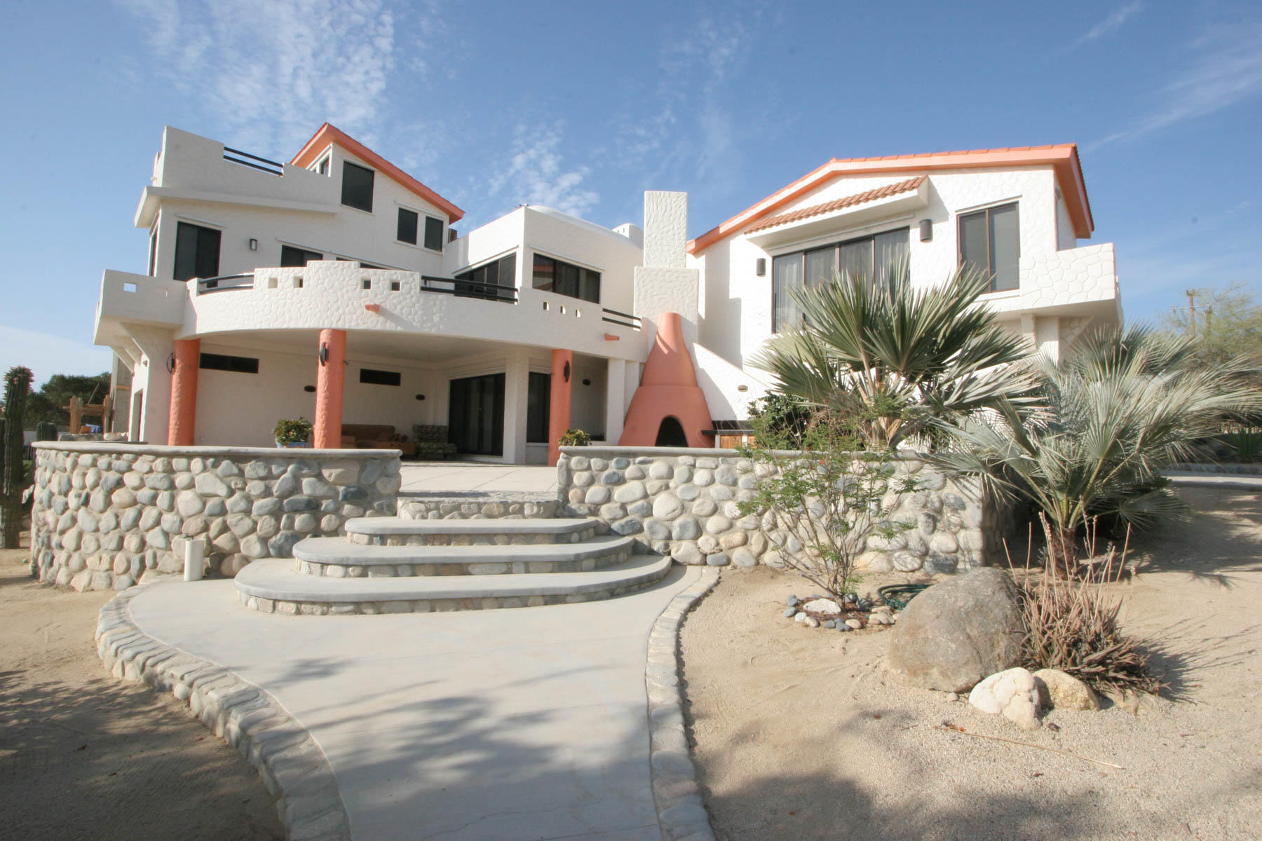 This beautifully designed home brims with Mexican charm and elegance. The hand-laid brick boveda and large fireplace are a couple of the architectural elements that make this property so special. Located just two blocks from the beach in the desirable Agua de La Costa neighborhood, the location offers the rare combination of proximity to the beach and a view of the ocean. The amount of covered and secure garage space will thrill anyone who has lots of toys or who wants to enjoy time working in their own shop. The first level features a charming studio with its own garage and laundry facilities that can generate rental income without disrupting your privacy. Upstairs, there are two guest bedrooms with private entrances and a shared bath, a large kitchen, living room and master bedroom with