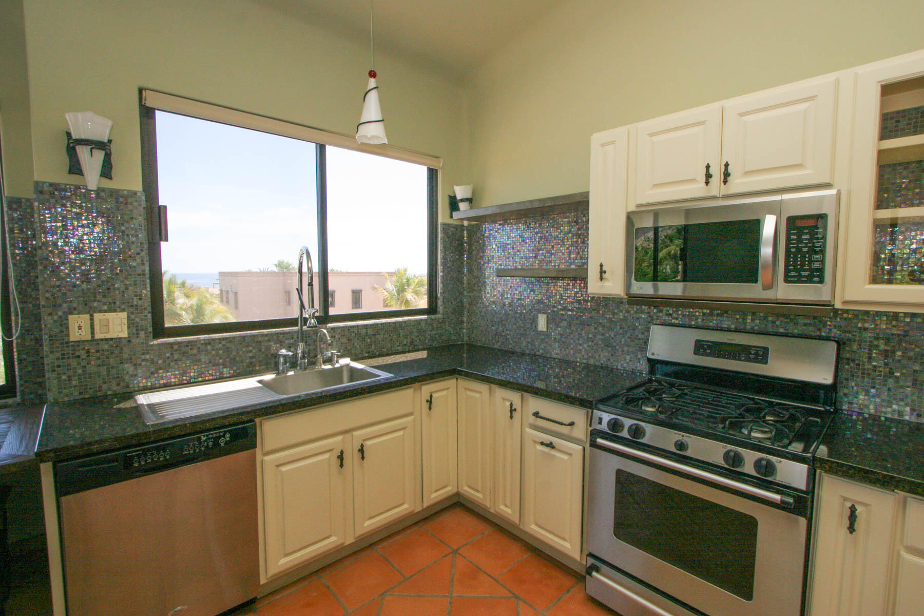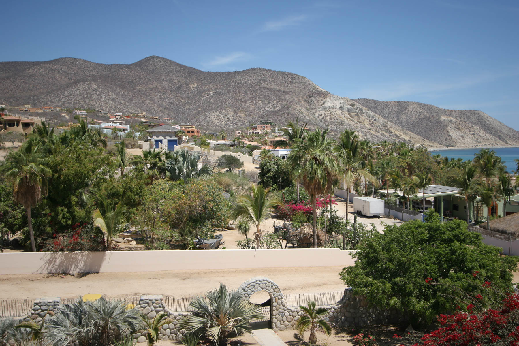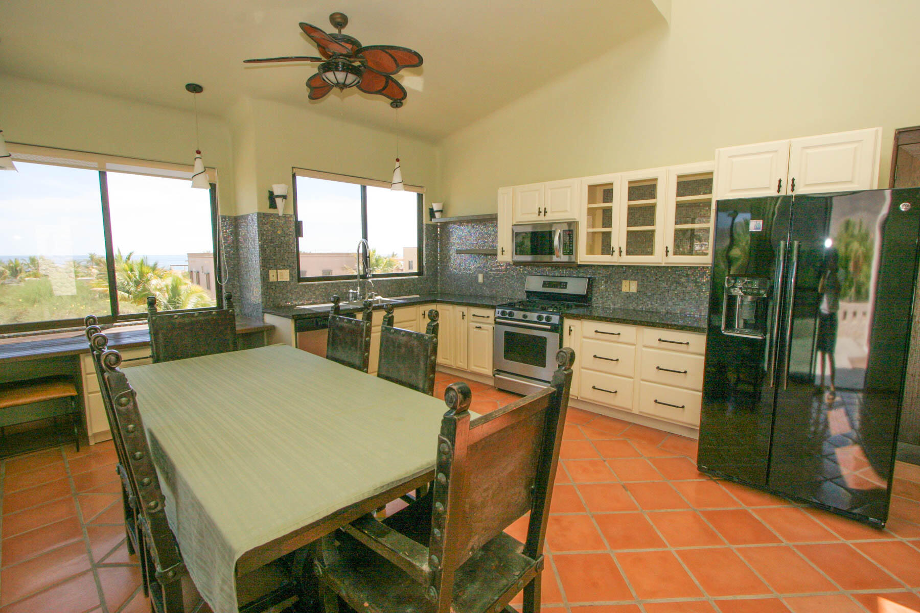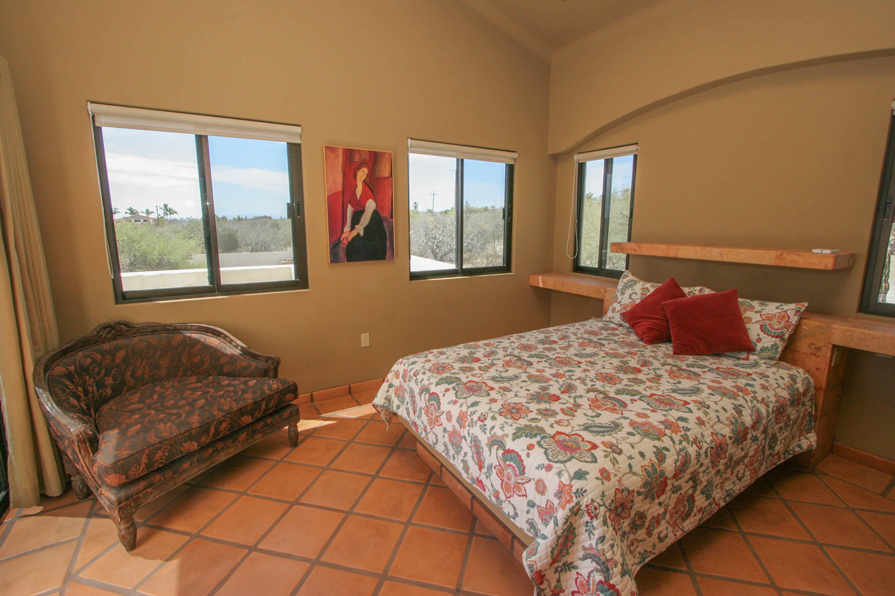 This beautifully designed home brims with Mexican charm and elegance. The hand-laid brick boveda and large fireplace are a couple of the architectural elements that make this property so special. Located just two blocks from the beach in the desirable Agua de La Costa neighborhood, the location offers the rare combination of proximity to the beach and a view of the ocean. The amount of covered and secure garage space will thrill anyone who has lots of toys or who wants to enjoy time working in their own shop. The first level features a charming studio with its own garage and laundry facilities that can generate rental income without disrupting your privacy. Upstairs, there are two guest bedrooms with private entrances and a shared bath, a large kitchen, living room and master bedroom with