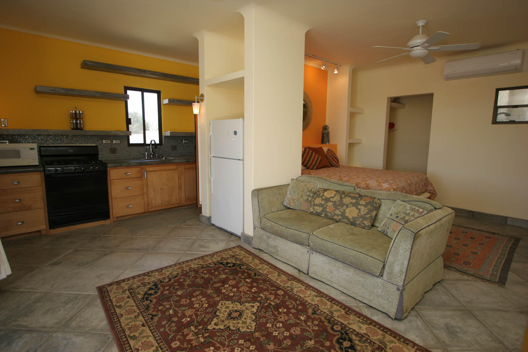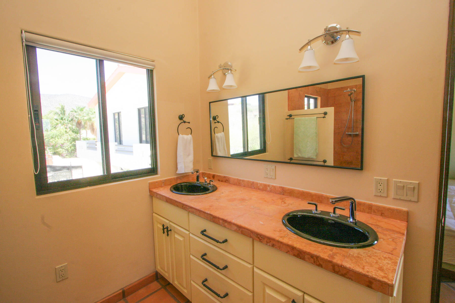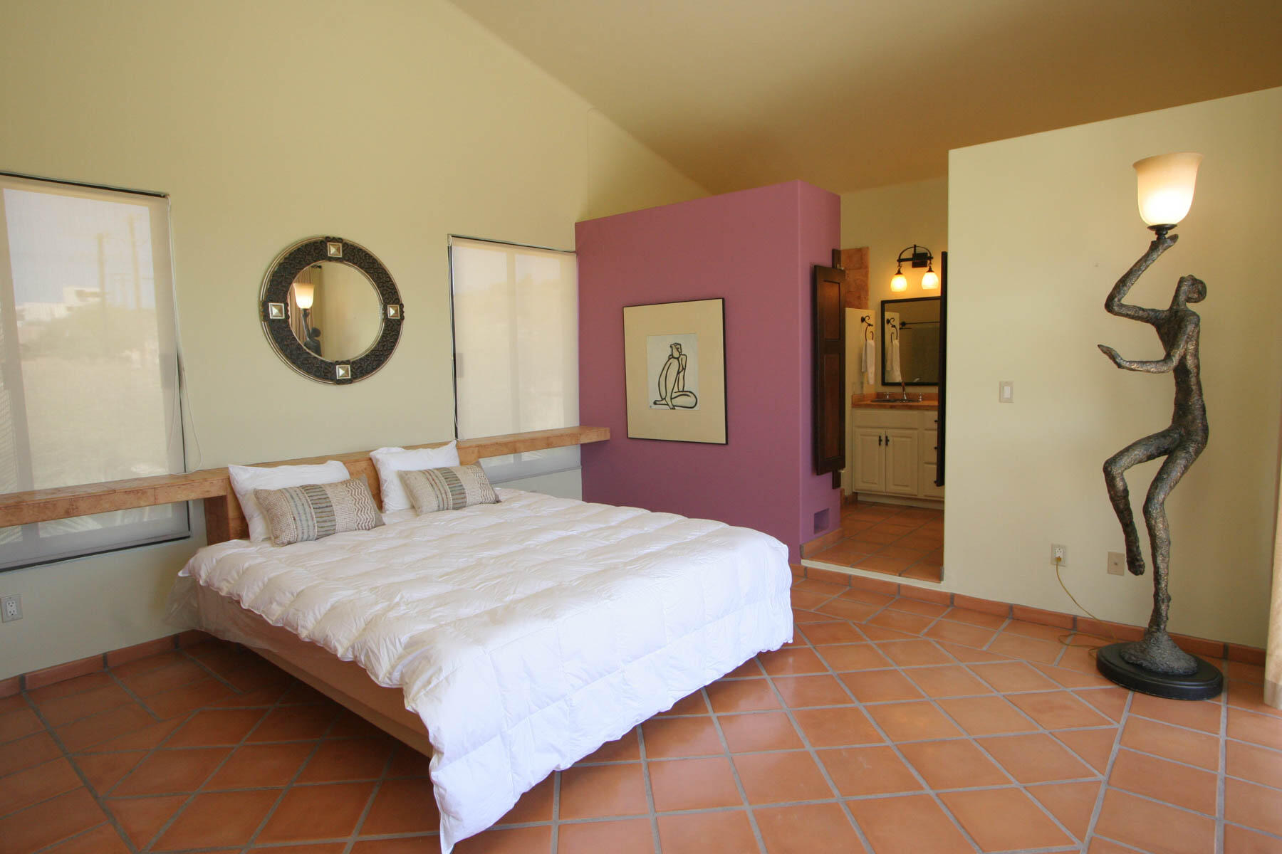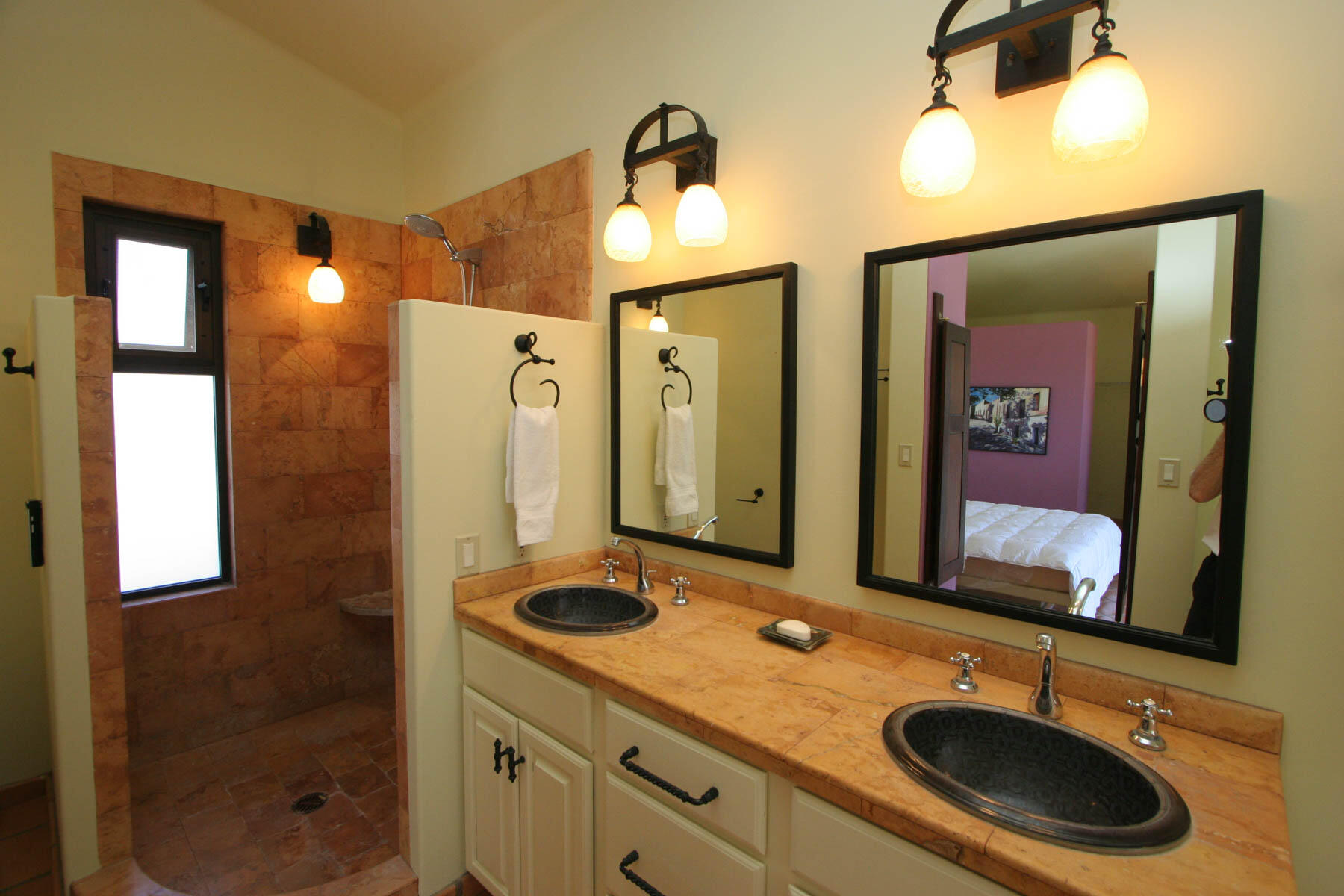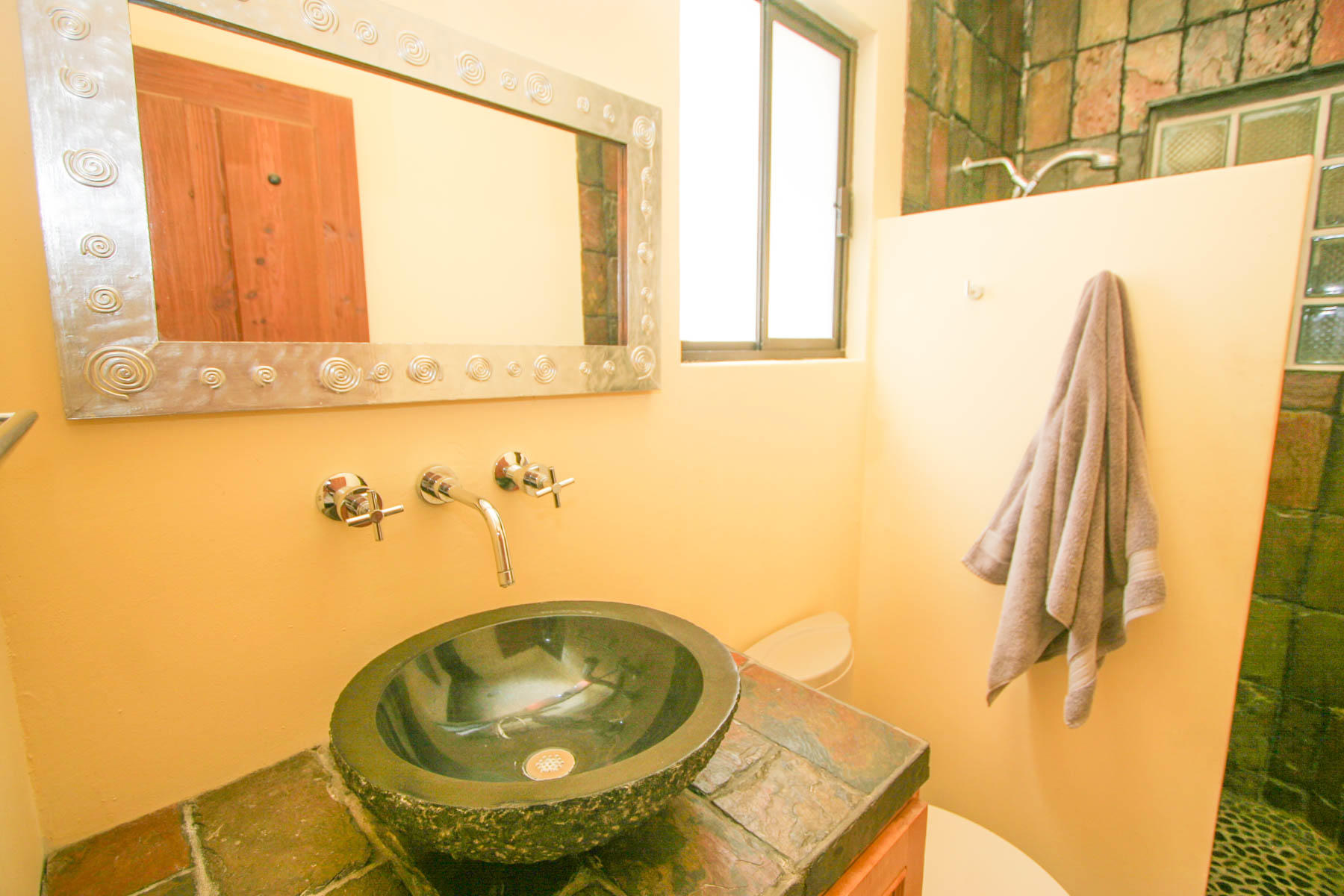 This beautifully designed home brims with Mexican charm and elegance. The hand-laid brick boveda and large fireplace are a couple of the architectural elements that make this property so special. Located just two blocks from the beach in the desirable Agua de La Costa neighborhood, the location offers the rare combination of proximity to the beach and a view of the ocean. The amount of covered and secure garage space will thrill anyone who has lots of toys or who wants to enjoy time working in their own shop. The first level features a charming studio with its own garage and laundry facilities that can generate rental income without disrupting your privacy. Upstairs, there are two guest bedrooms with private entrances and a shared bath, a large kitchen, living room and master bedroom with