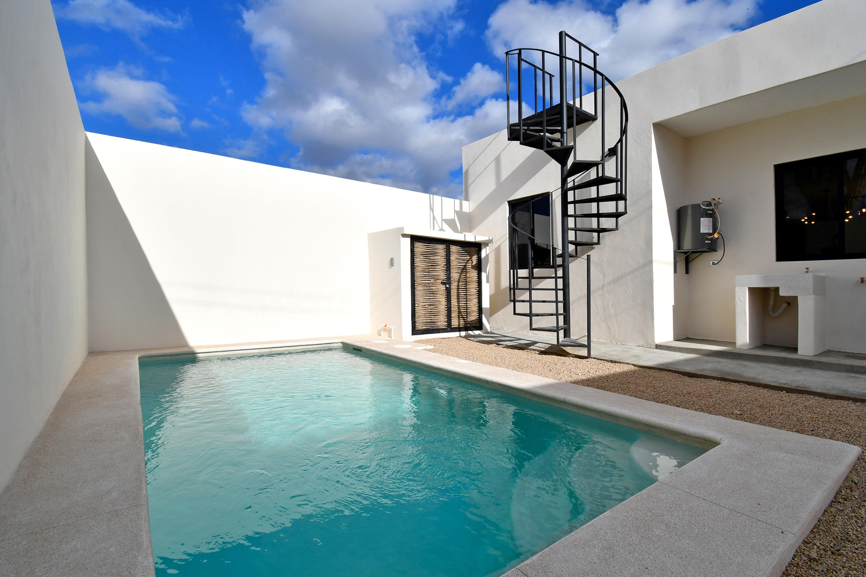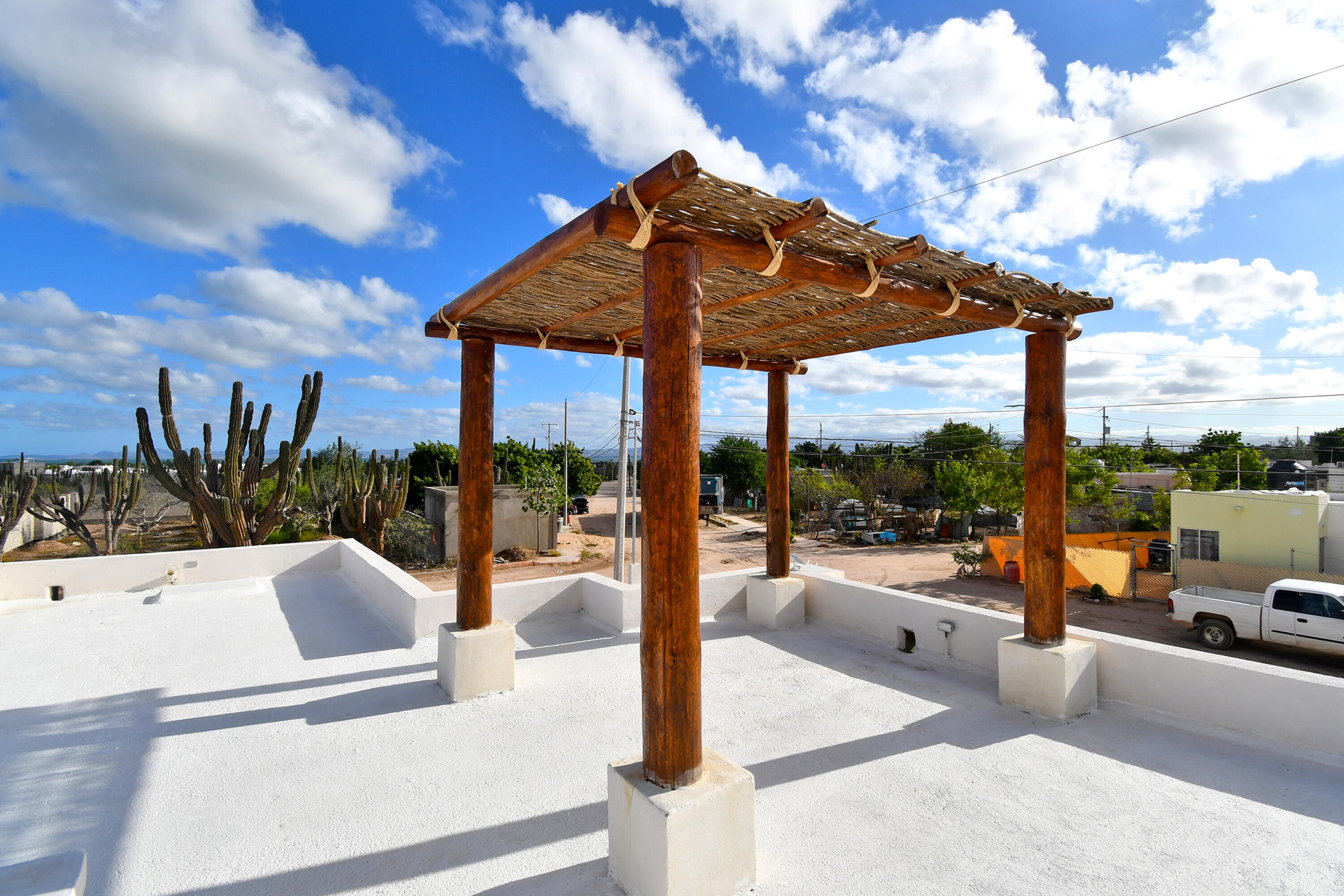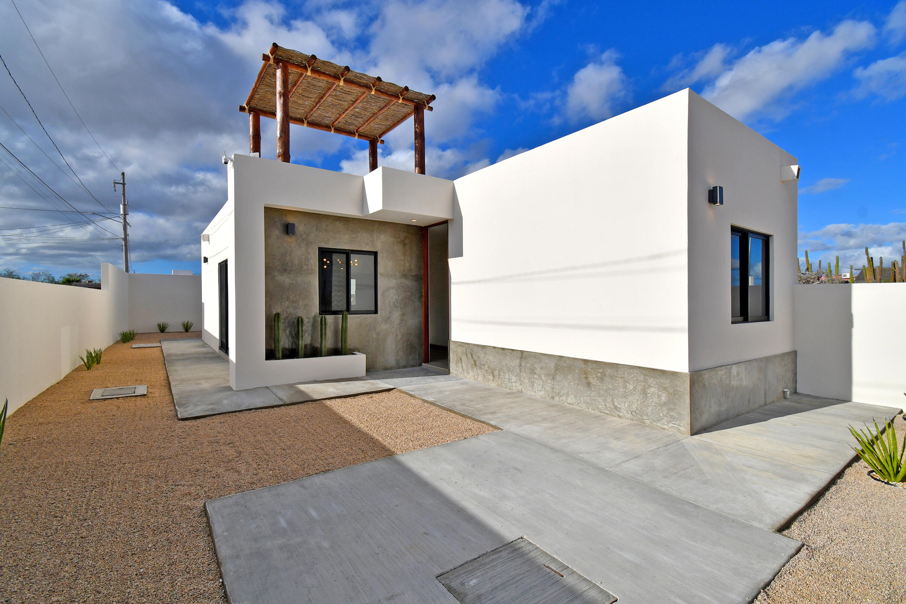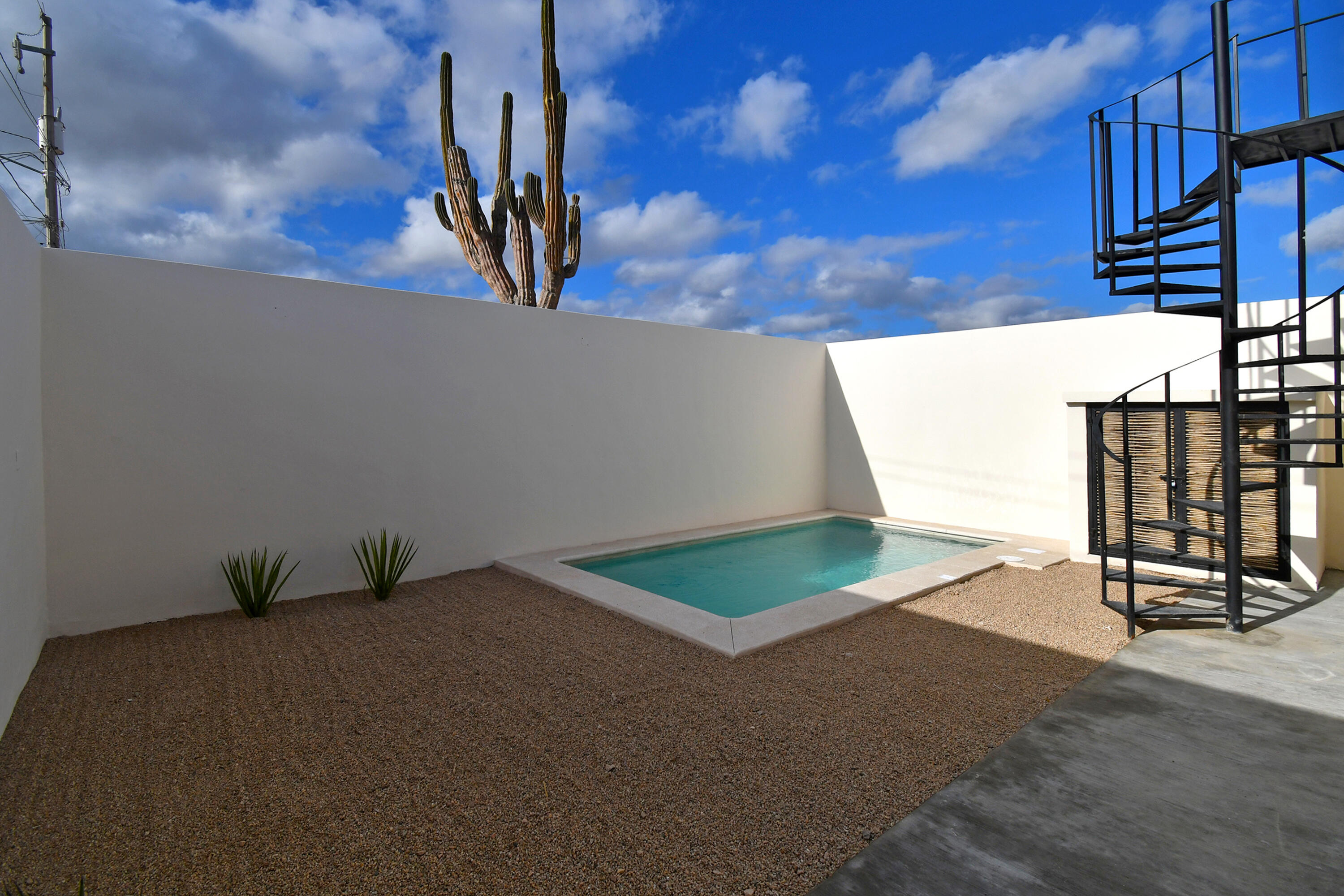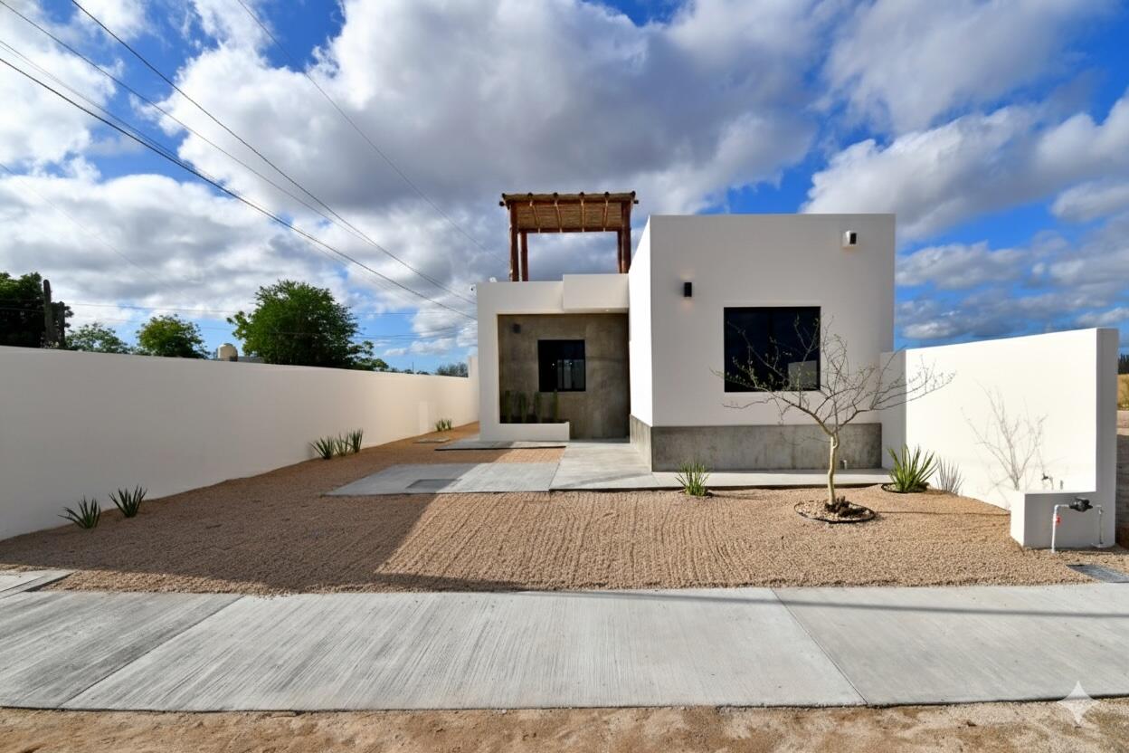 –New build, ready to move in!–Located in the growing community of Centenario in La Paz, this charming two-bedroom, two-bathroom is an easy and conventional home to live in full time, to use part time and to rent out for a lucrative return. This home offers horizontal living with both bedrooms on the first floor and an open-concept design in the living spaces. The master bedroom features a walk-in closet and an ensuite bathroom. The living, dining, and kitchen areas flow seamlessly, with a convenient breakfast bar in the kitchen. There is a private pool and BBQ area and a spacious rooftop perfect for entertaining in the evening. The desert garden offers great color with minimal maintenance needed! Gated parking is available. Community of new homes, no HOA. Priced in pesos $4,300,000