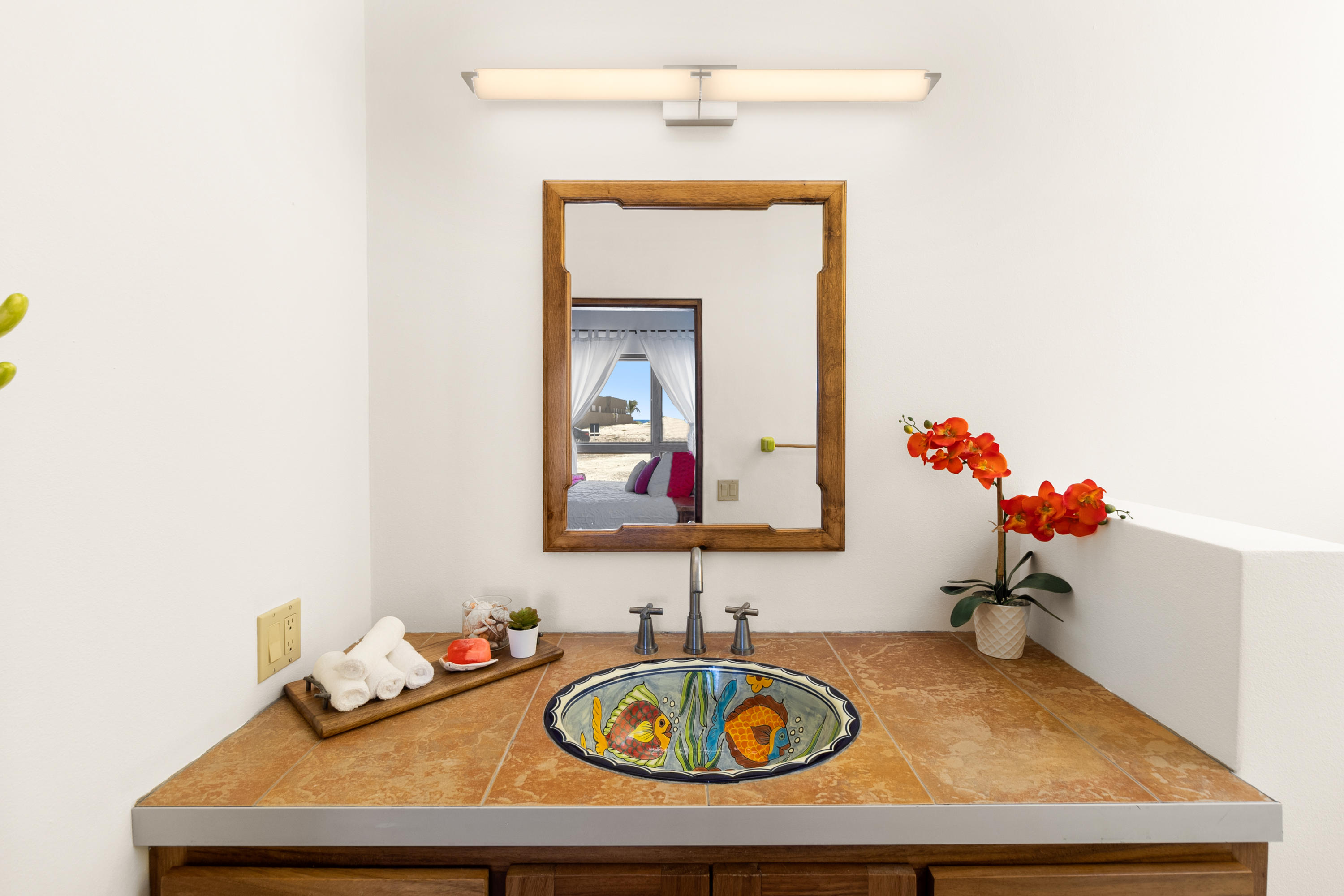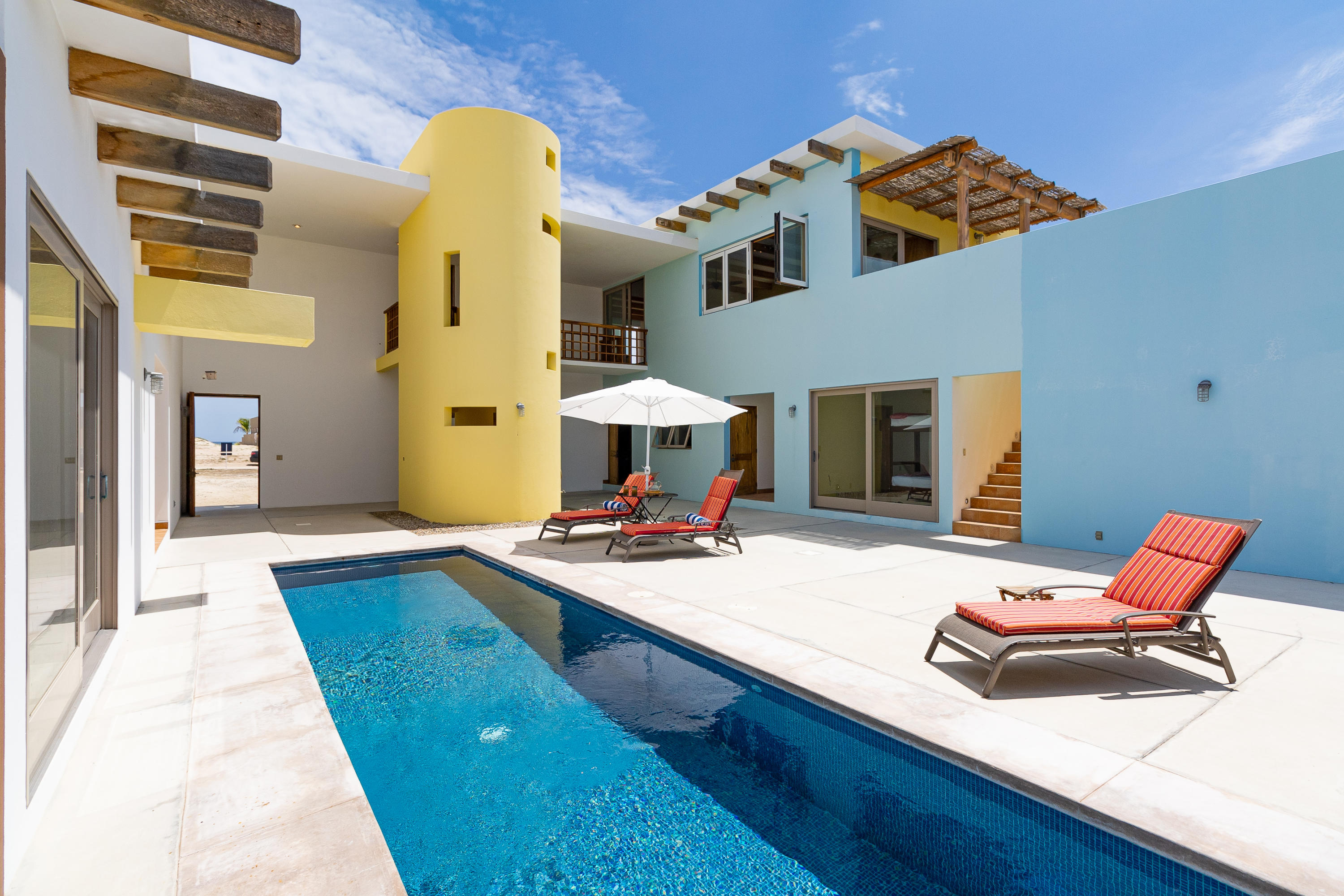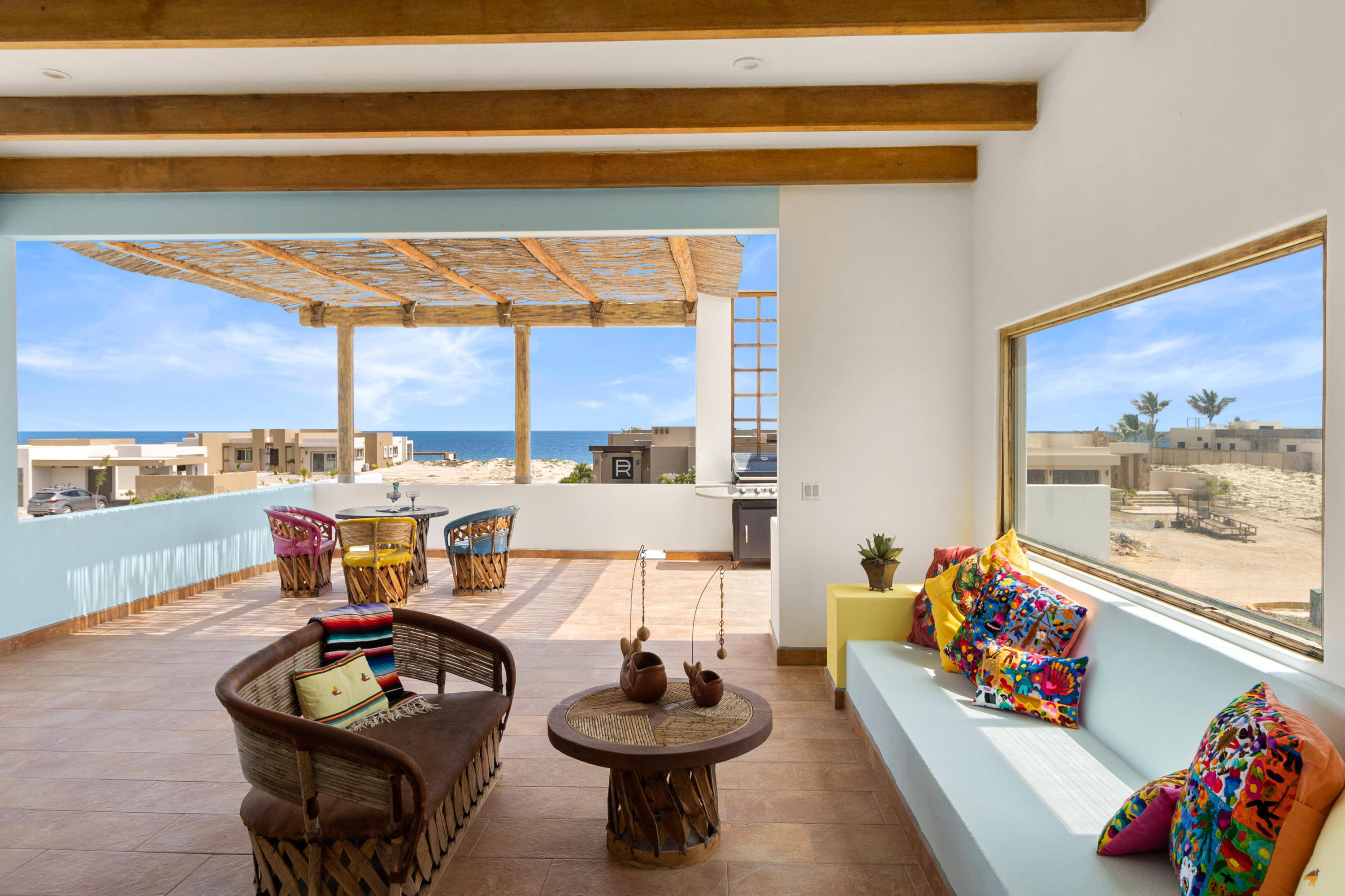 AMAZING RENTAL POTENTIAL from this stunning architectural masterpiece, inspired by the world renowned Ricardo Legoria, with clean contemporary lines & open spaces. The front gate opens to a spacious courtyard with pool and 4 bedrooms with separate entrances. Allowing rental guests to come & go at their convenience. The upper floor consists of a large kitchen & an expansive living/terrace area. The floor to ceiling glass Nano doors create a seamless transition to the Baja outdoor/indoor experience. Every wall showcases large windows & sliding doors to deliver endless views of water and mountains. Enjoy the many extras including cistern, Generac, whole house water purification, high impact security glass & 630 sq ft garage on a 1/2 acre with plenty of room to add casitas. 24 hr notice pls.