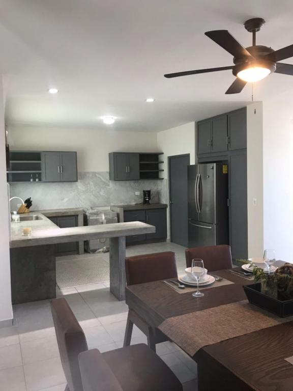 Very comfortable new house, located within the gated community of Cumbre del Tezal, 24/7security. 3 large bedrooms, 3.5 bathroom and closets, in each bedroom, kitchen fully equipped. Balcony with covered pergola. PRICE IN PESOS $3,700,000 Exchange rate of $18.50 pesos per dollar Common areas, children’s playground, pool, gym.