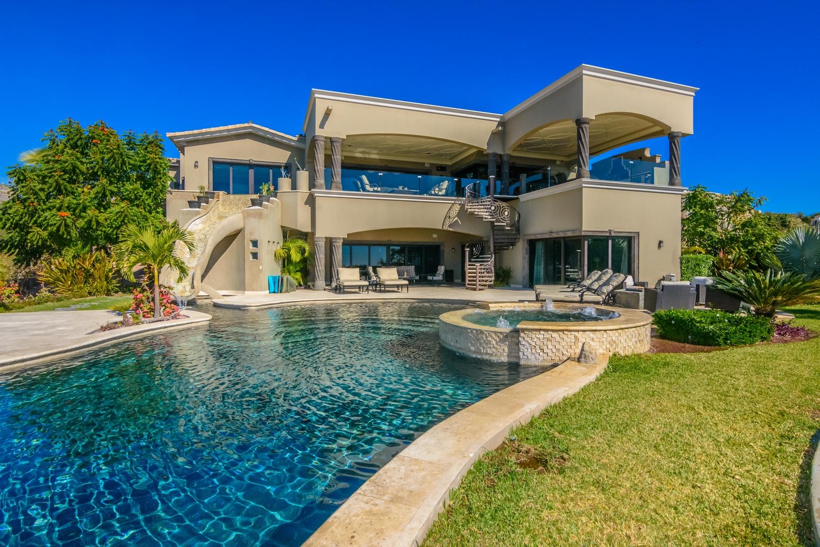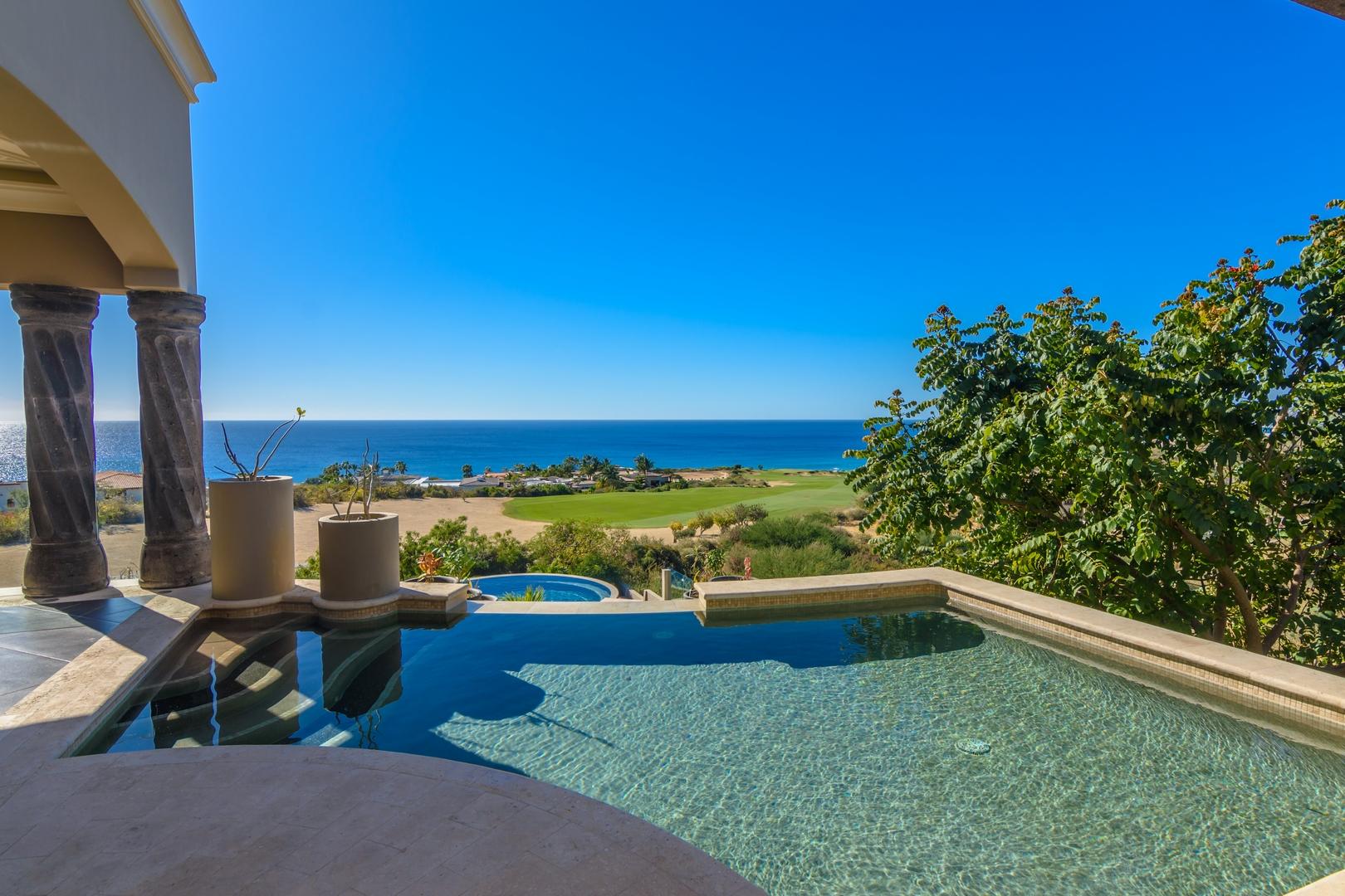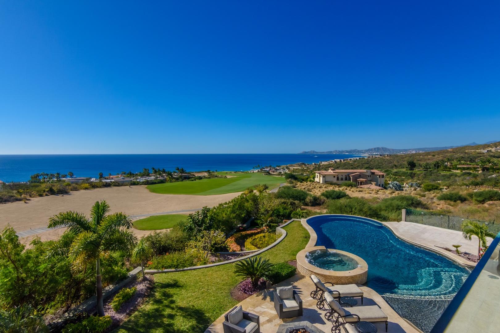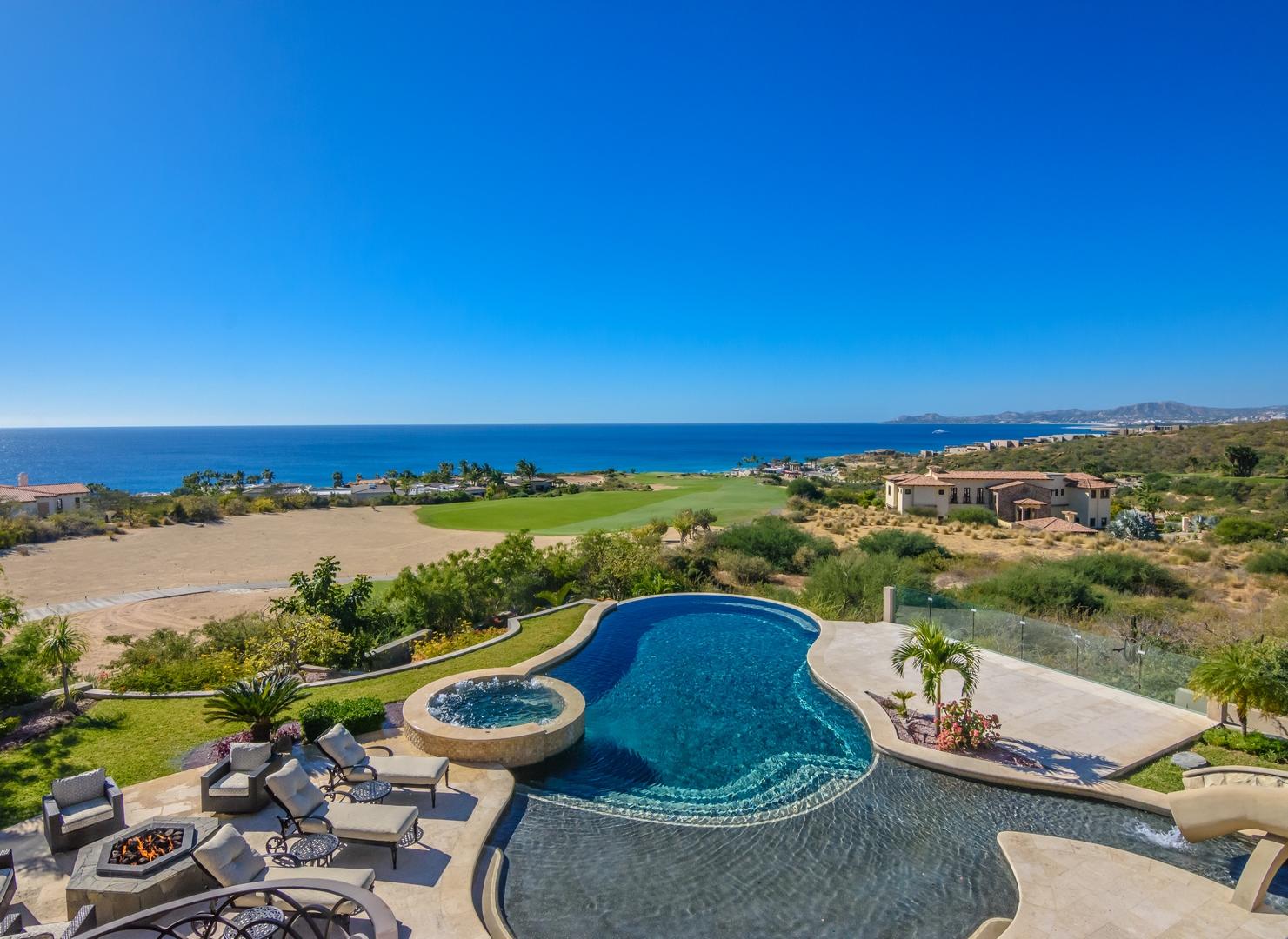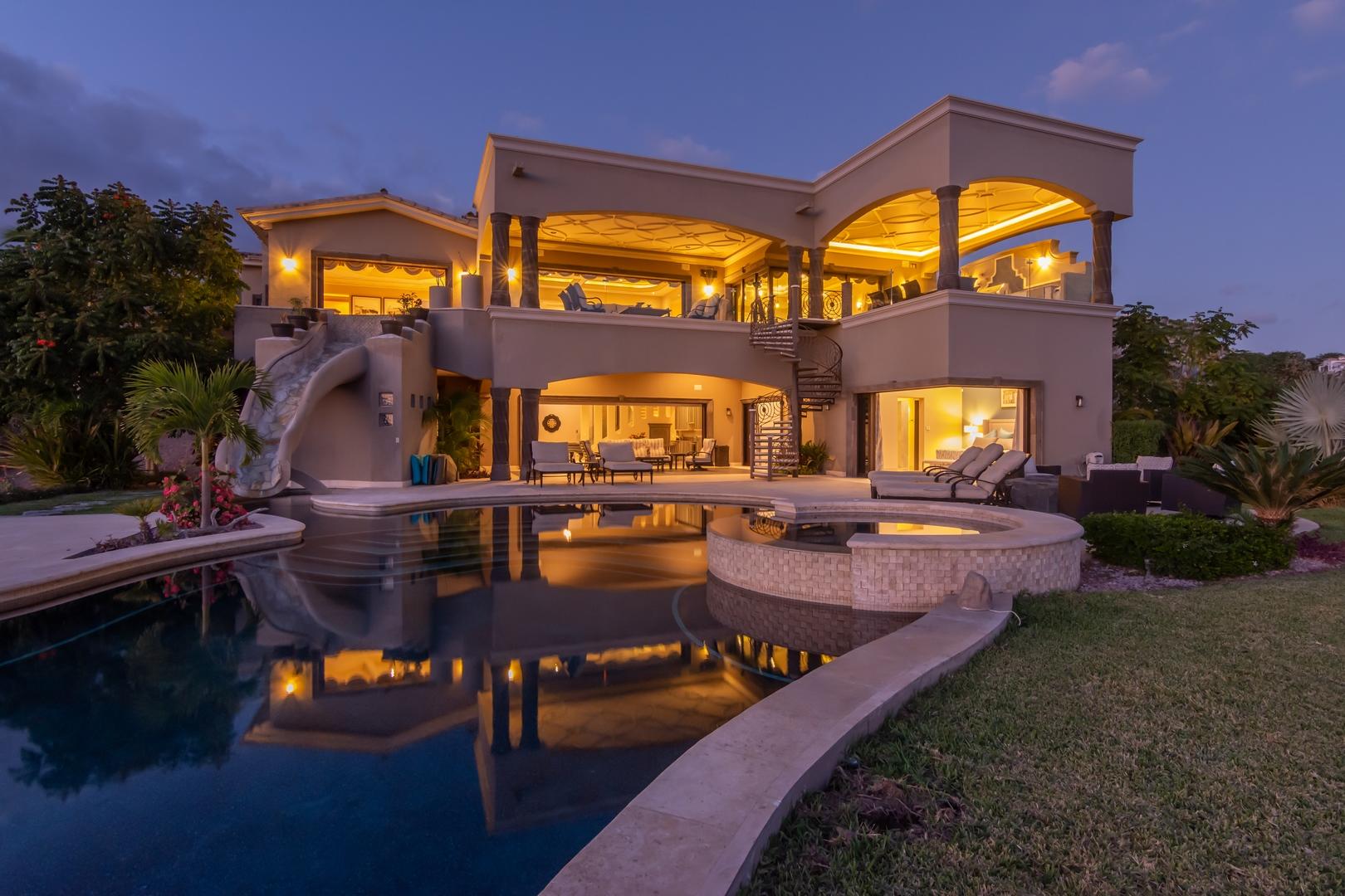 Forever views across the Sea of Cortez to Palmilla Point fill this stunning, elegant, modern and immaculately maintained fairway front home. True to the property’s name, Casa Mi Isla provides a private, personal sanctuary from the cares of the world. Every imaginable luxury has been considered and expertly executed in this expansive home with fine custom finishes throughout. A tastefully decorated Great Room with gourmet kitchen and formal dining area are the centerpieces of the main living area that also includes a luxe Master Bedroom suite complete with private outdoor pool. An office, laundry room and half bath plus plenty of outdoor living and dining complete the upper level. The lower level, accessed by either elevator, interior or exterior stairs includes a theatre style media room,