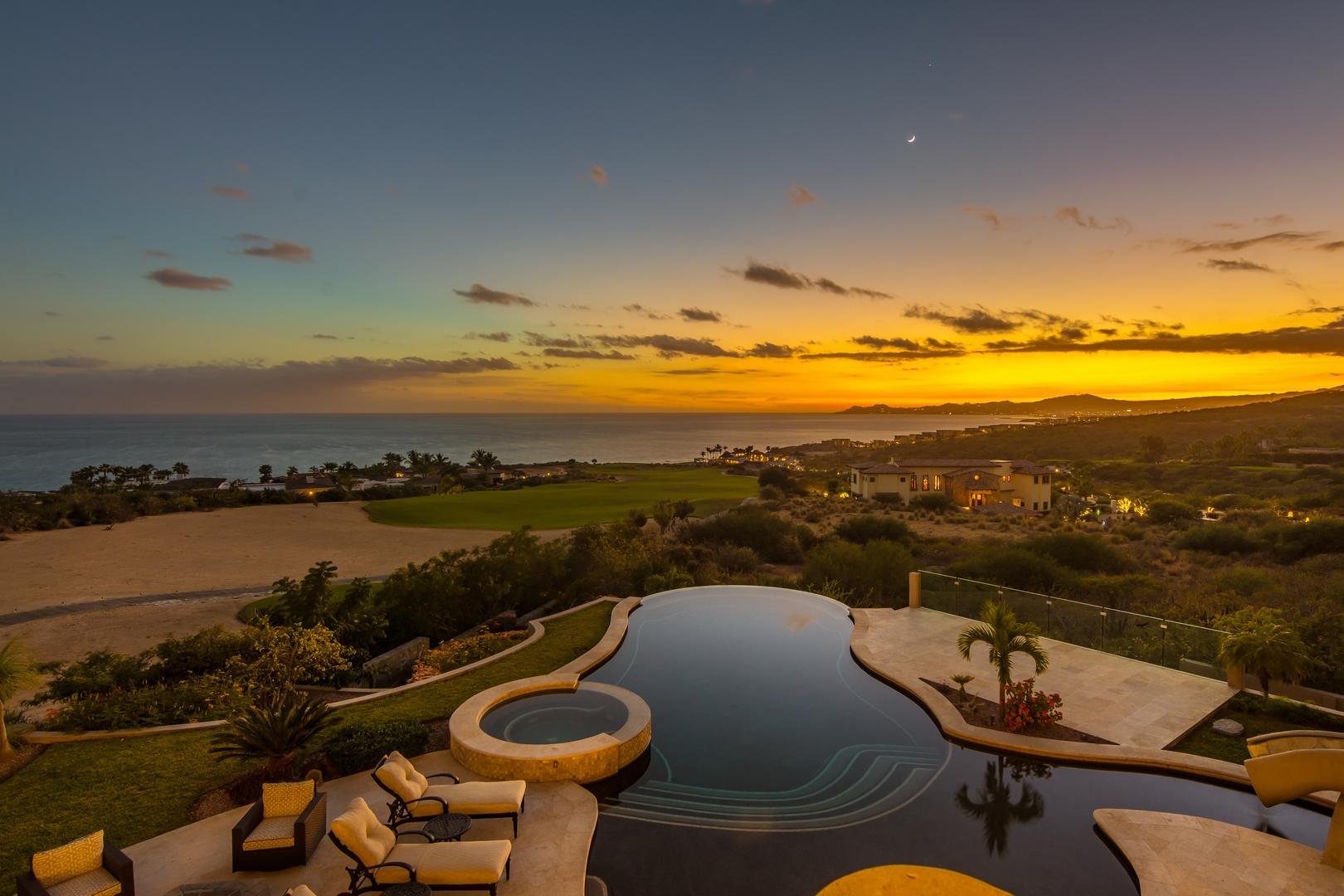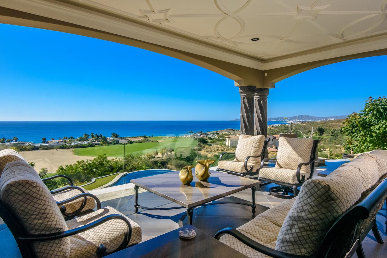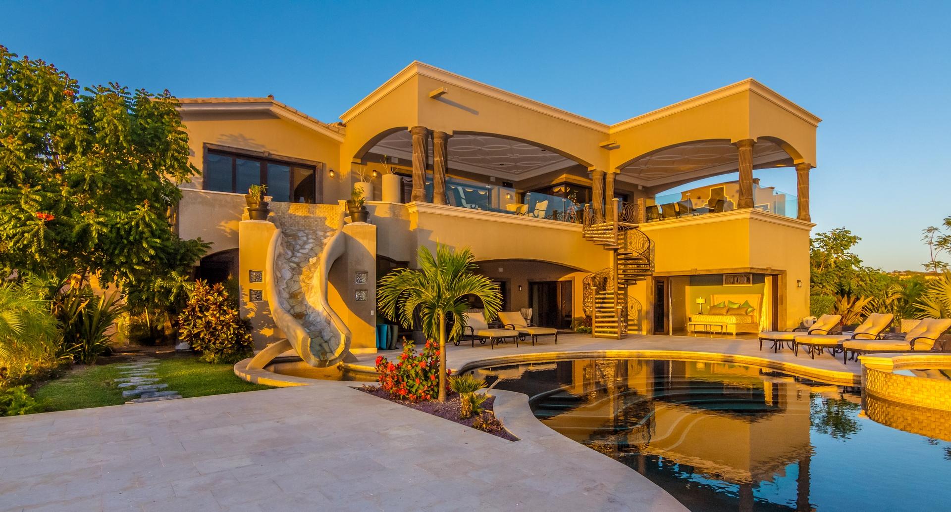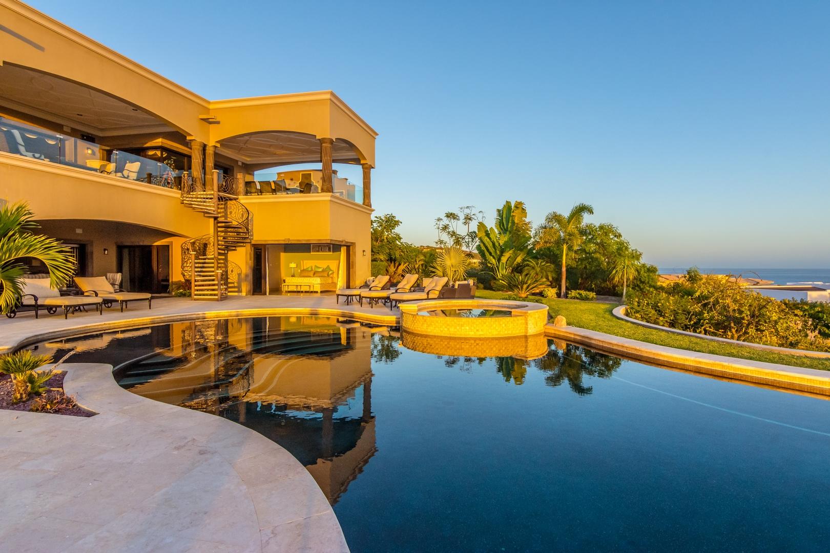Forever views across the Sea of Cortez to Palmilla Point fill this stunning, elegant, modern and immaculately maintained fairway front home. True to the property’s name, Casa Mi Isla provides a private, personal sanctuary from the cares of the world. Every imaginable luxury has been considered and expertly executed in this expansive home with fine custom finishes throughout. A tastefully decorated Great Room with gourmet kitchen and formal dining area are the centerpieces of the main living area that also includes a luxe Master Bedroom suite complete with private outdoor pool. An office, laundry room and half bath plus plenty of outdoor living and dining complete the upper level. The lower level, accessed by either elevator, interior or exterior stairs includes a theatre style media room,